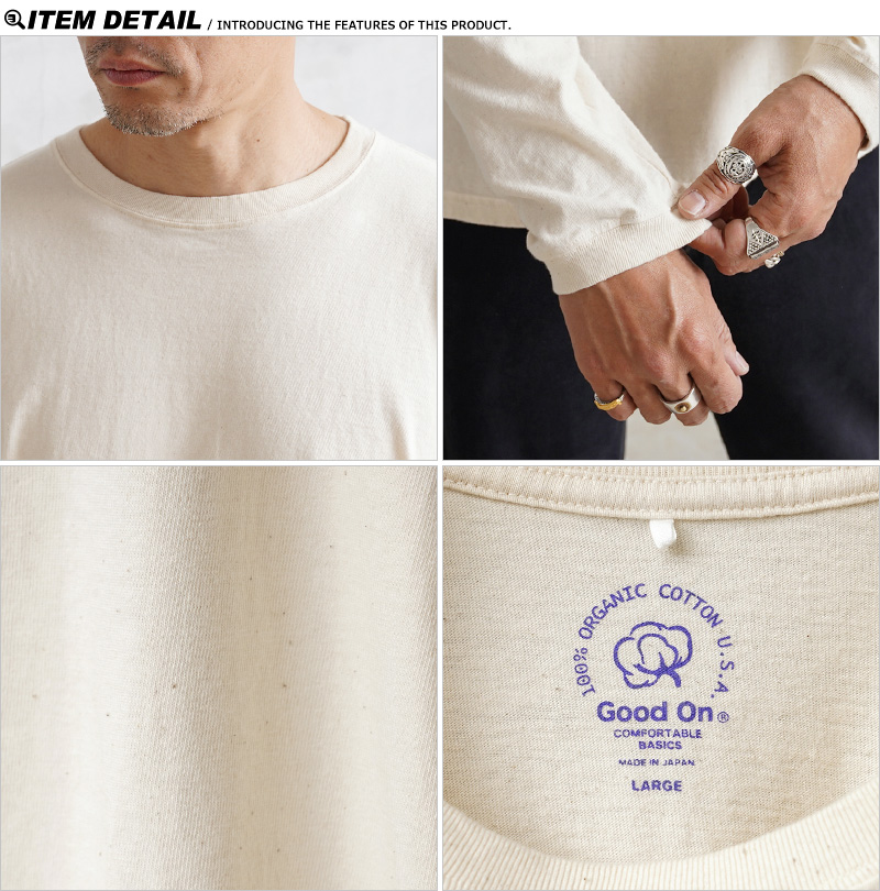 화학비료나 살충제, 유전자 조작 기술을 사용하지 않고 풍부한 햇빛에 노출되어 자연의 힘을 활용하여 유기농으로 재배된 면화 소재로 부드러운 질감입니다. 염색이나 다른 착색료를 사용하지 않으며 재료의 색상과 질감은 자연 상태로 유지됩니다. 사이드 솔기가 없는 라운드 바디 사양입니다.