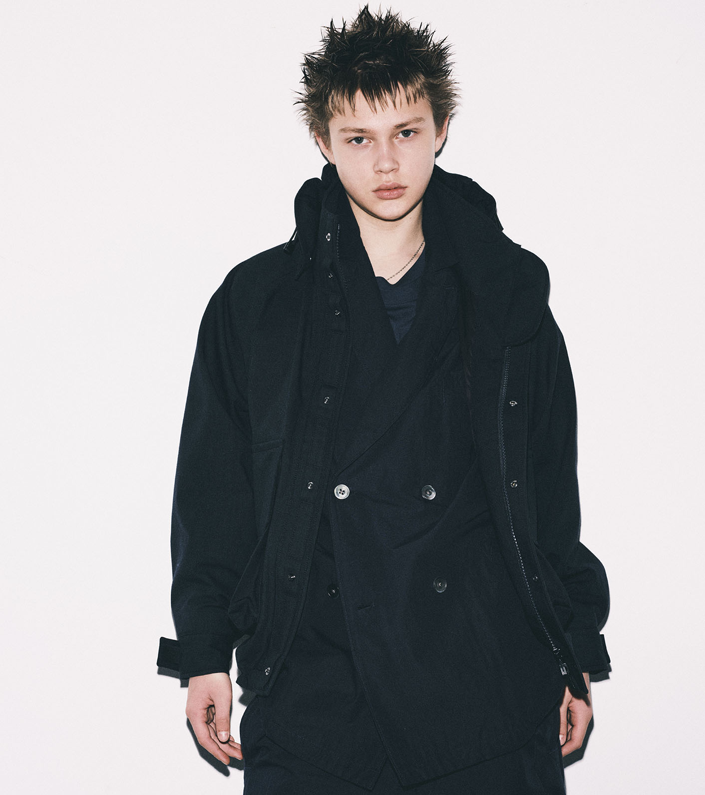 Brewed Protein 소재를 사용한 크루저 재킷. 겉감은 방수, 투습성의 소재를 사요하며 후드는 탈부착 가능합니다. 앞면에는 스냅 버튼, 밑단은 어저스터로 핏 조절이 가능합니다. 핸드워머 기능이 있는 더블 레이어 패치, 플랩 포켓이 있으며 왼쪽 가슴에 지퍼 보안 포켓이 있습니다.