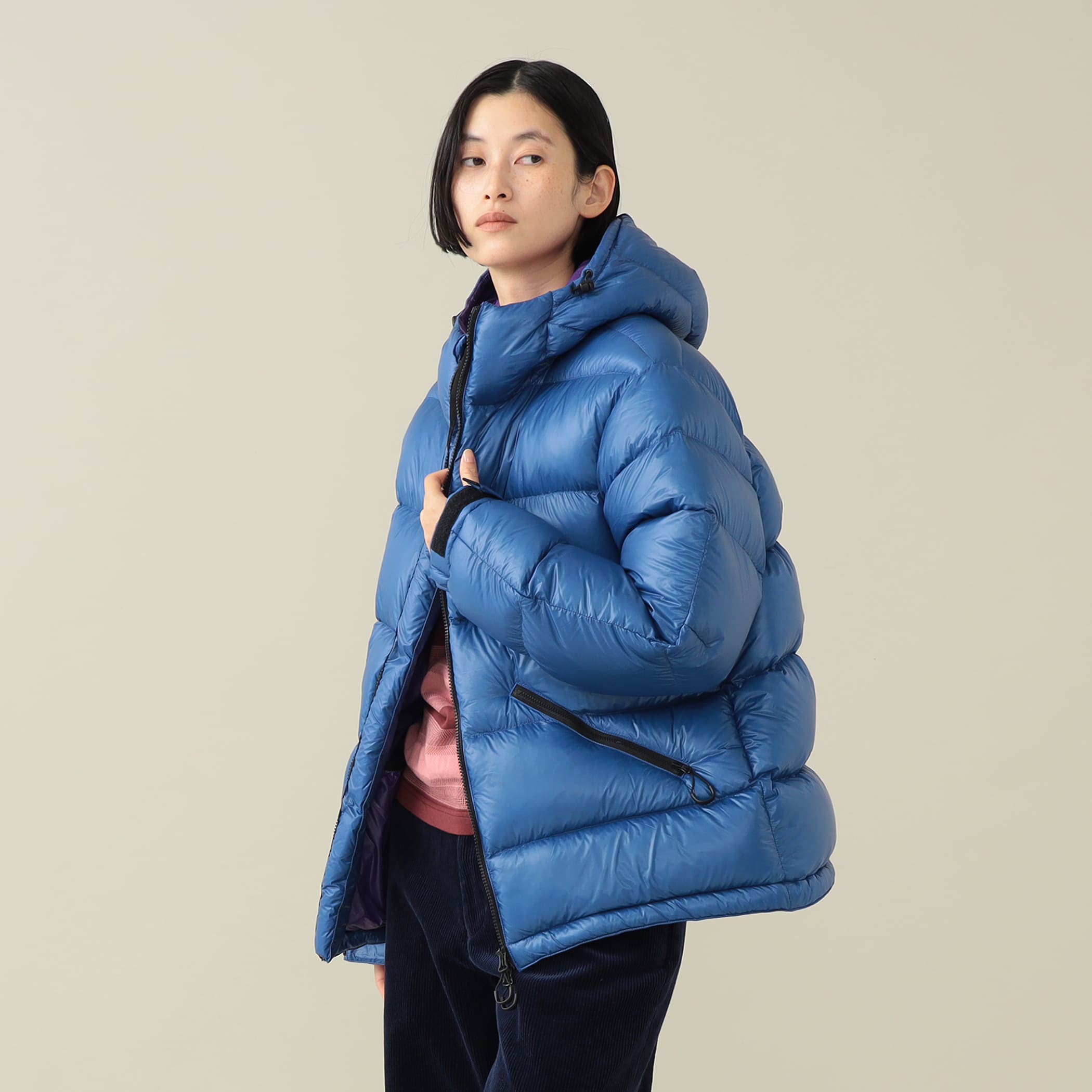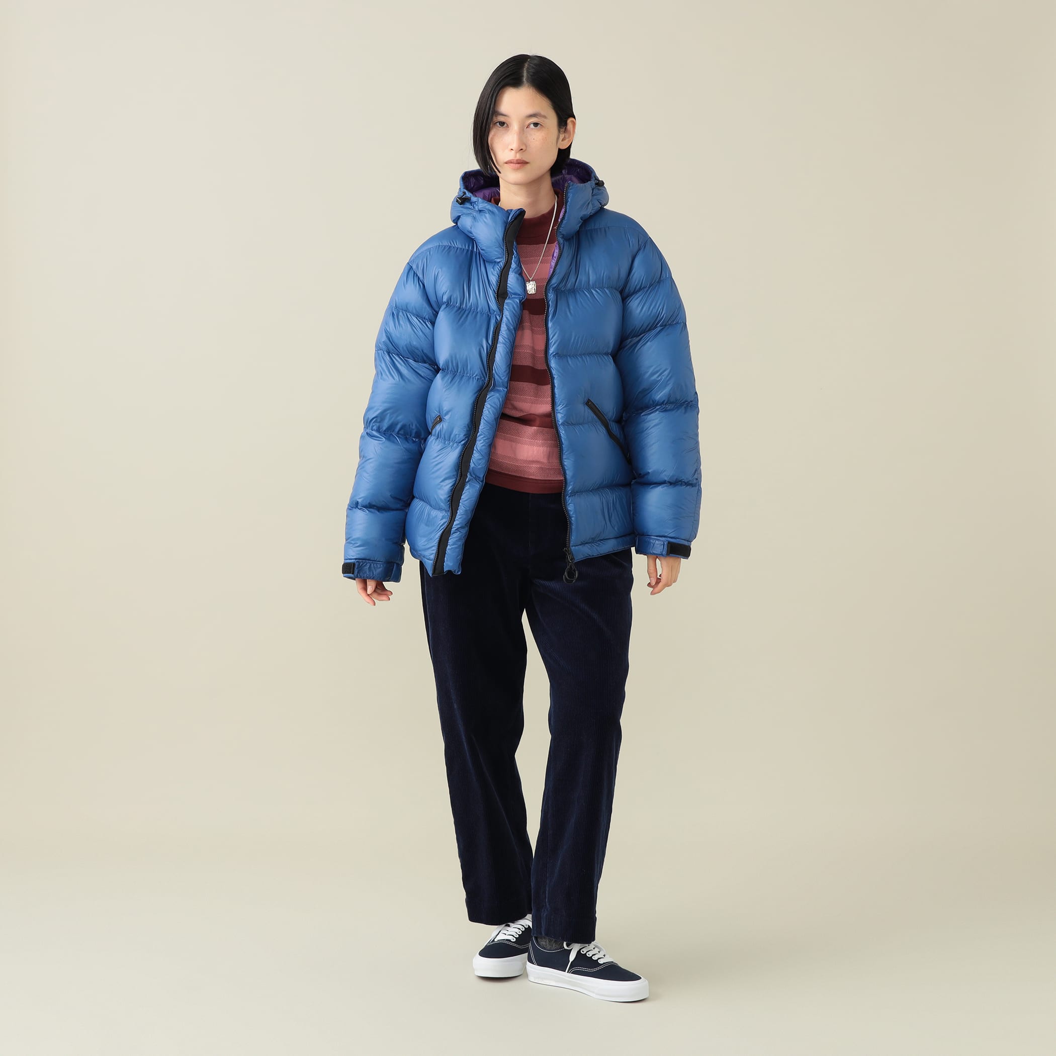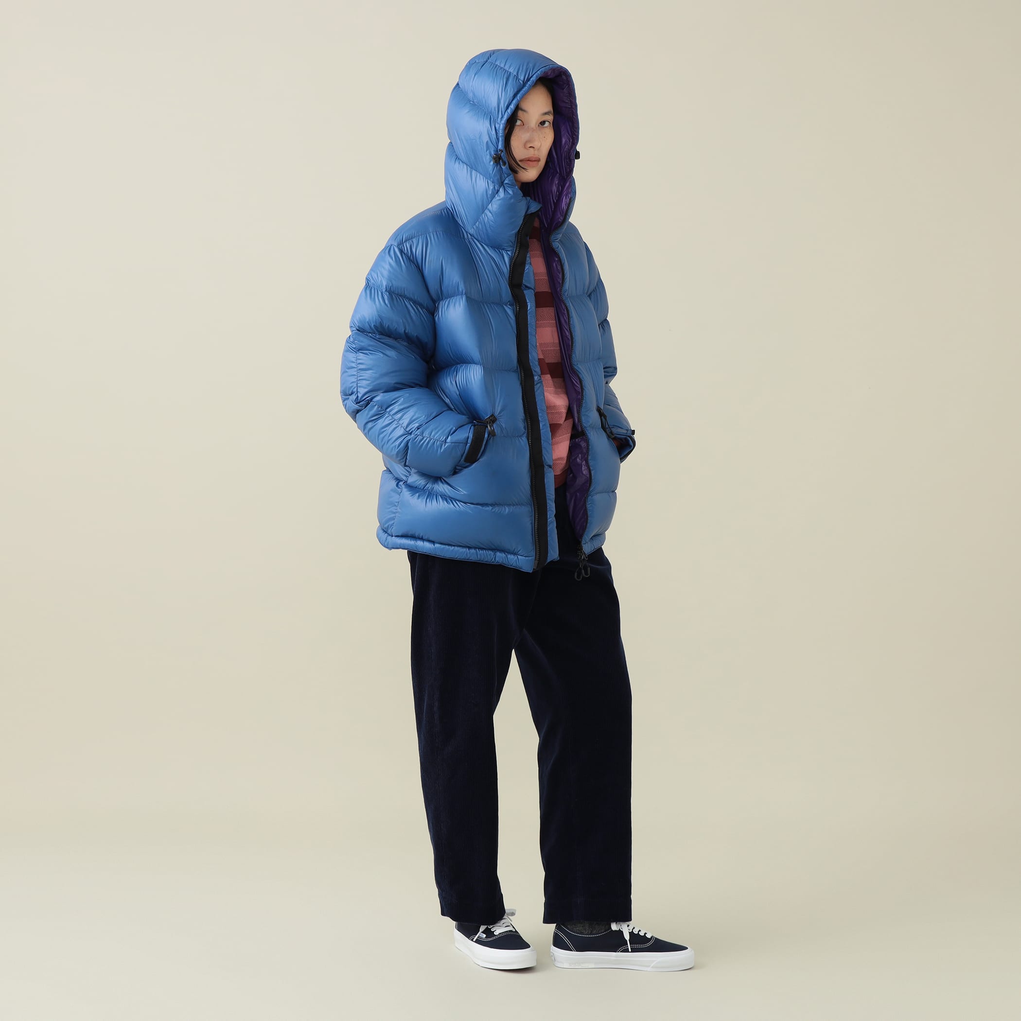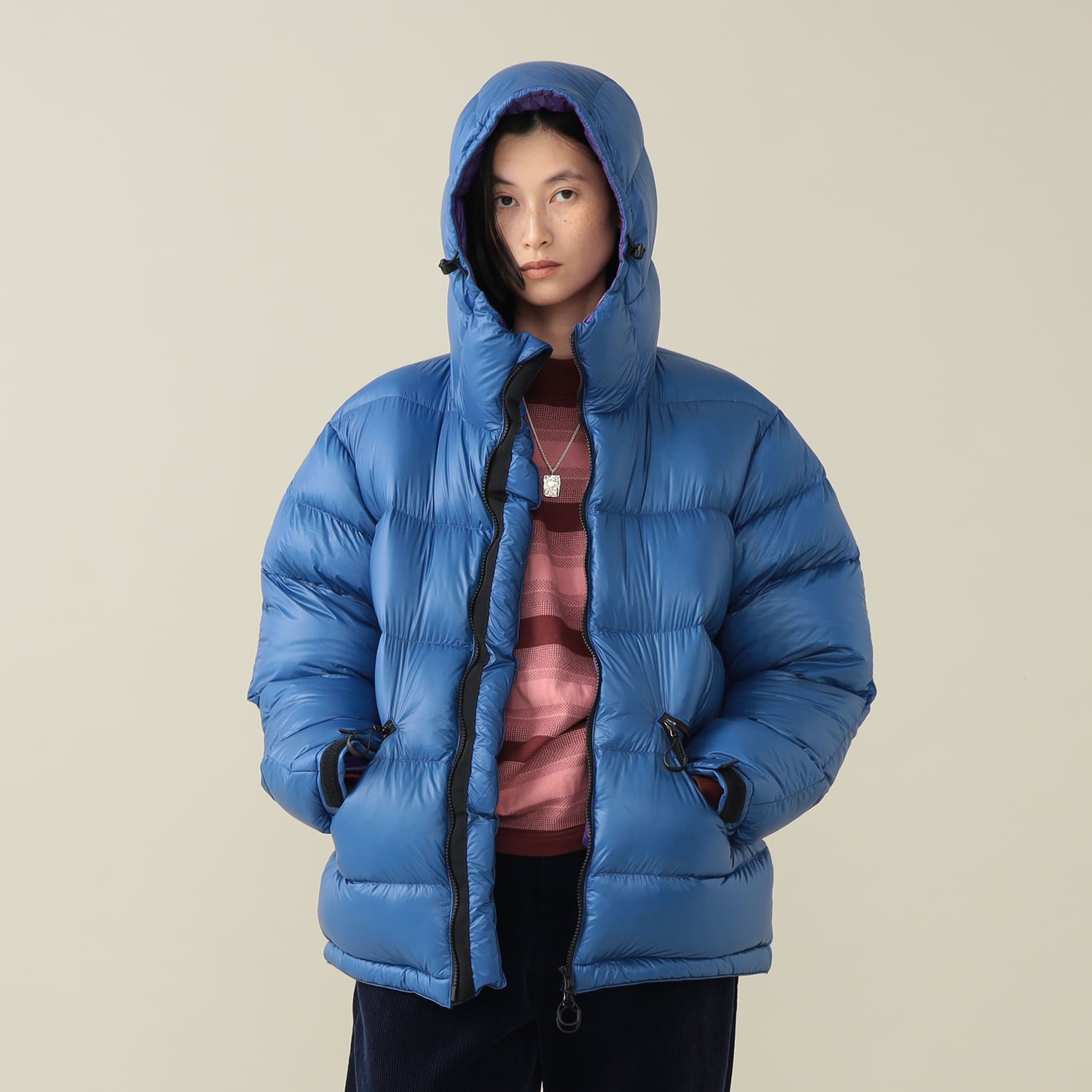 미니멀한 초경량 사양의 다우누 재킷. 지퍼 안쪽 그로그랭 태이프가 있으며 가벼운 비슬론 지퍼를 사용합니다.