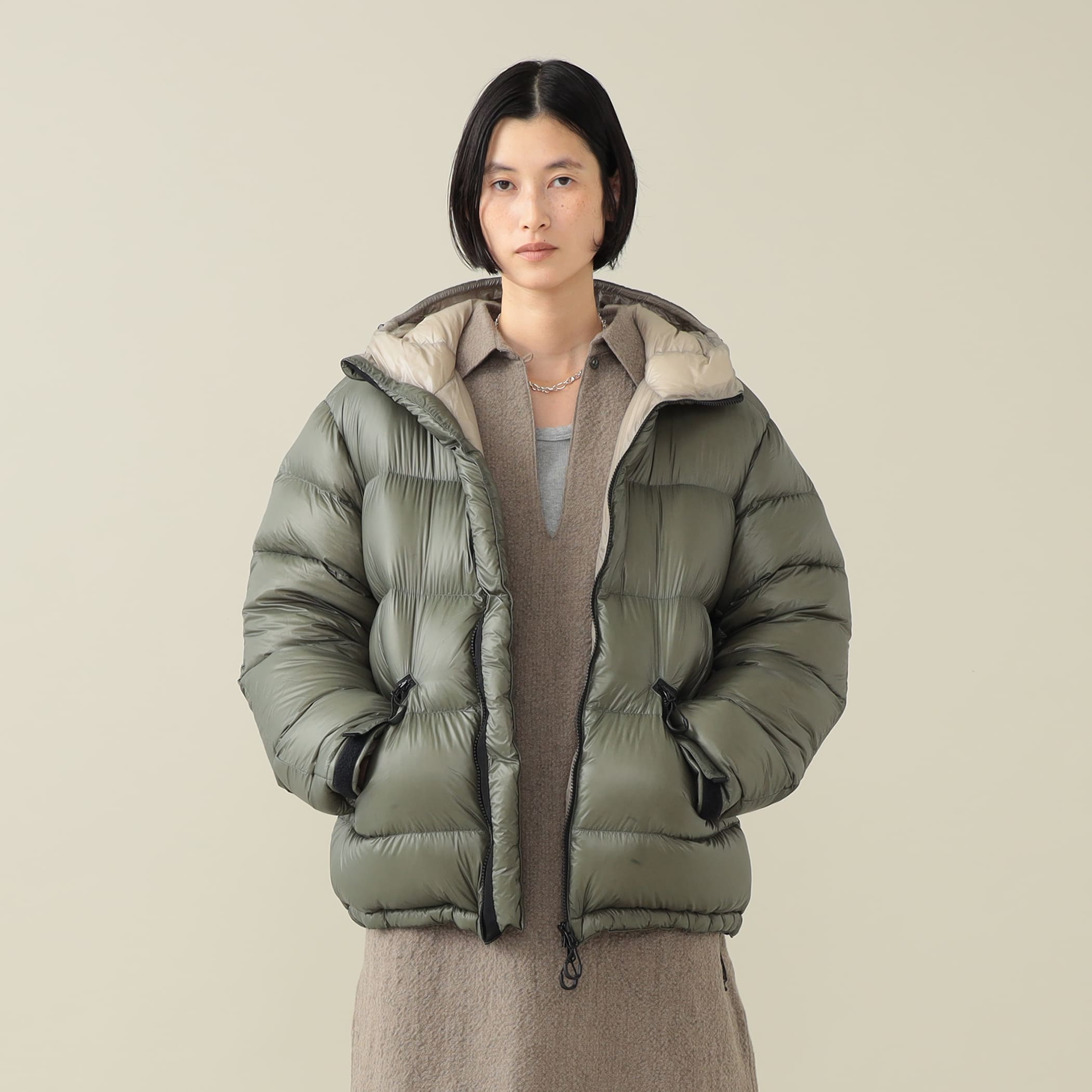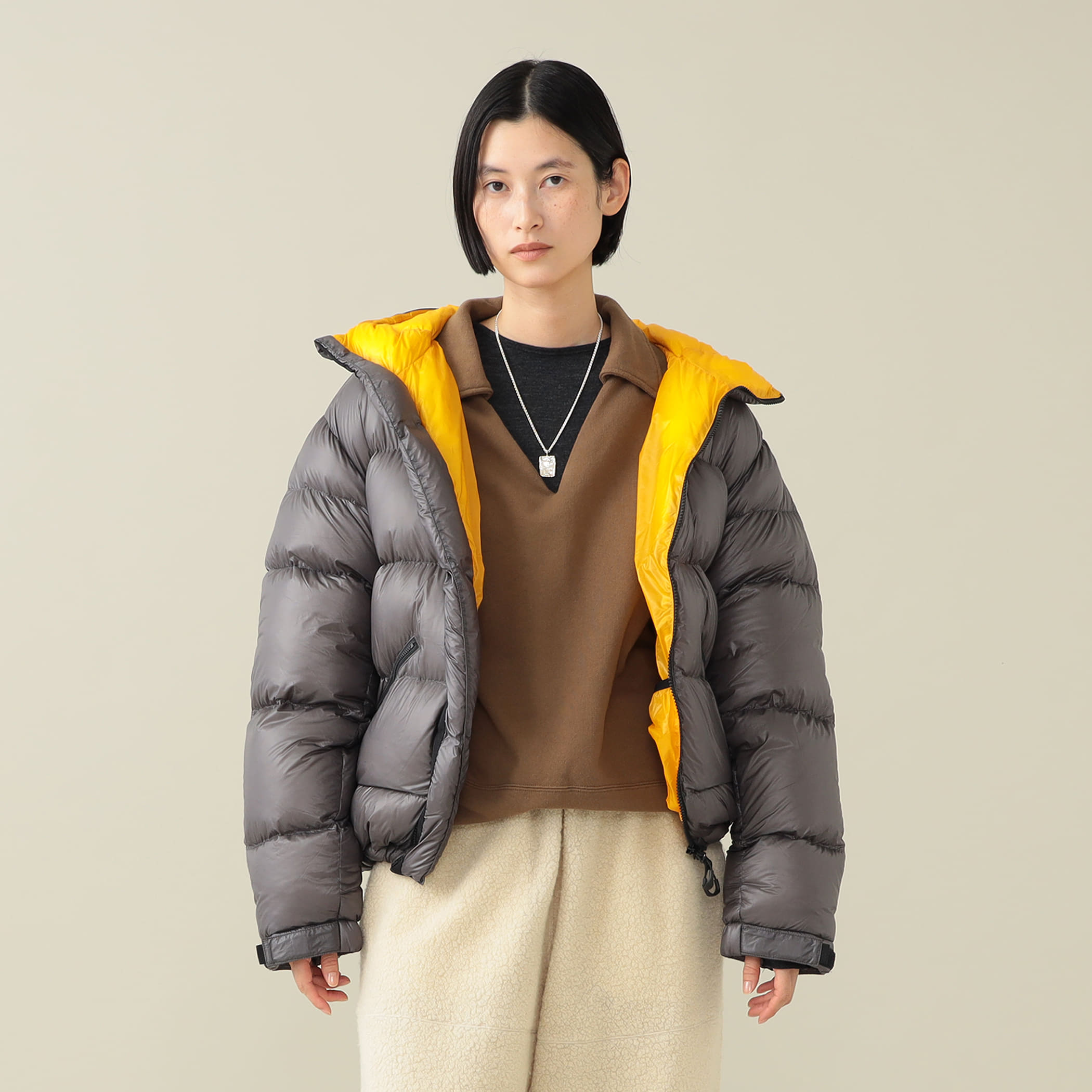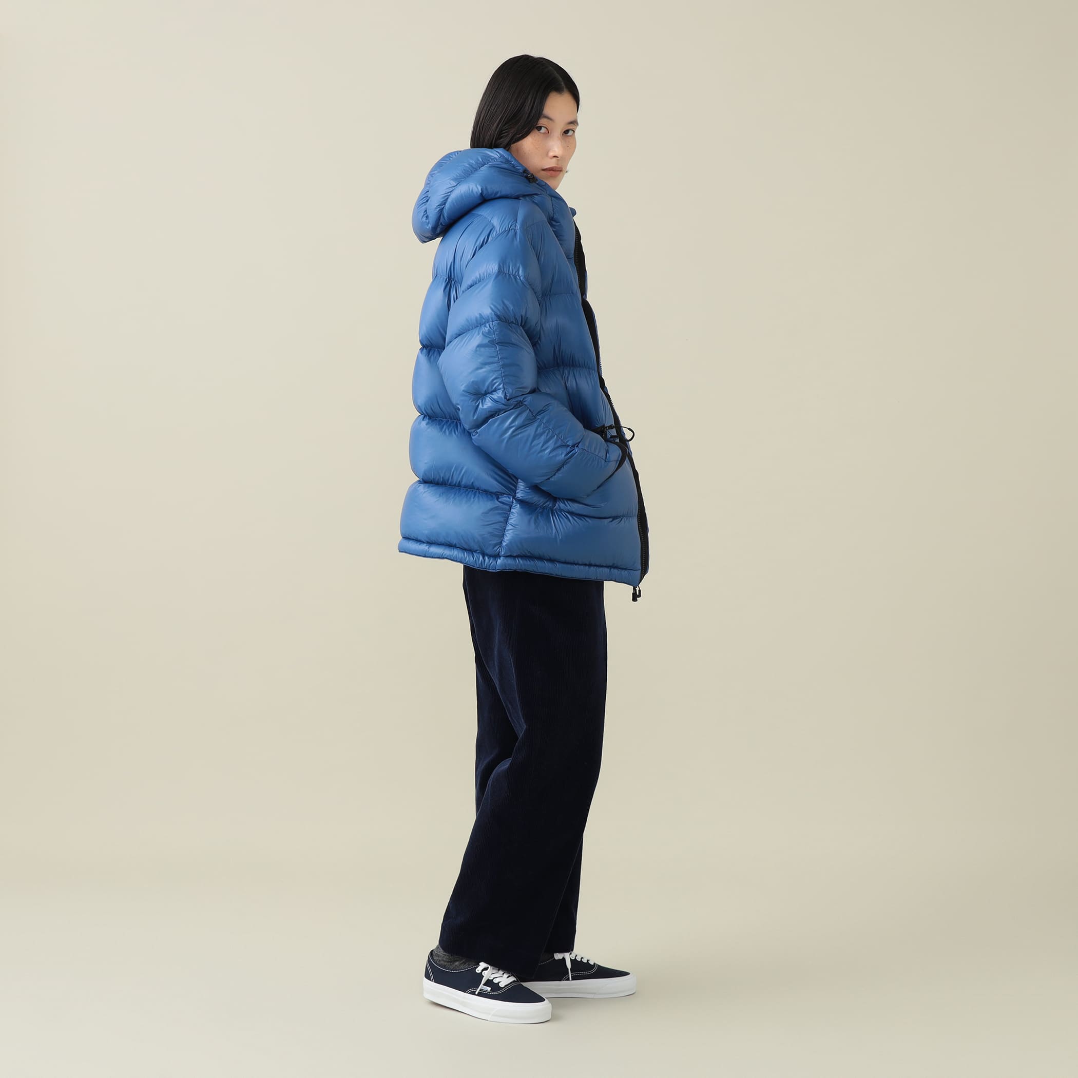 미니멀한 초경량 사양의 다우누 재킷. 지퍼 안쪽 그로그랭 태이프가 있으며 가벼운 비슬론 지퍼를 사용합니다.