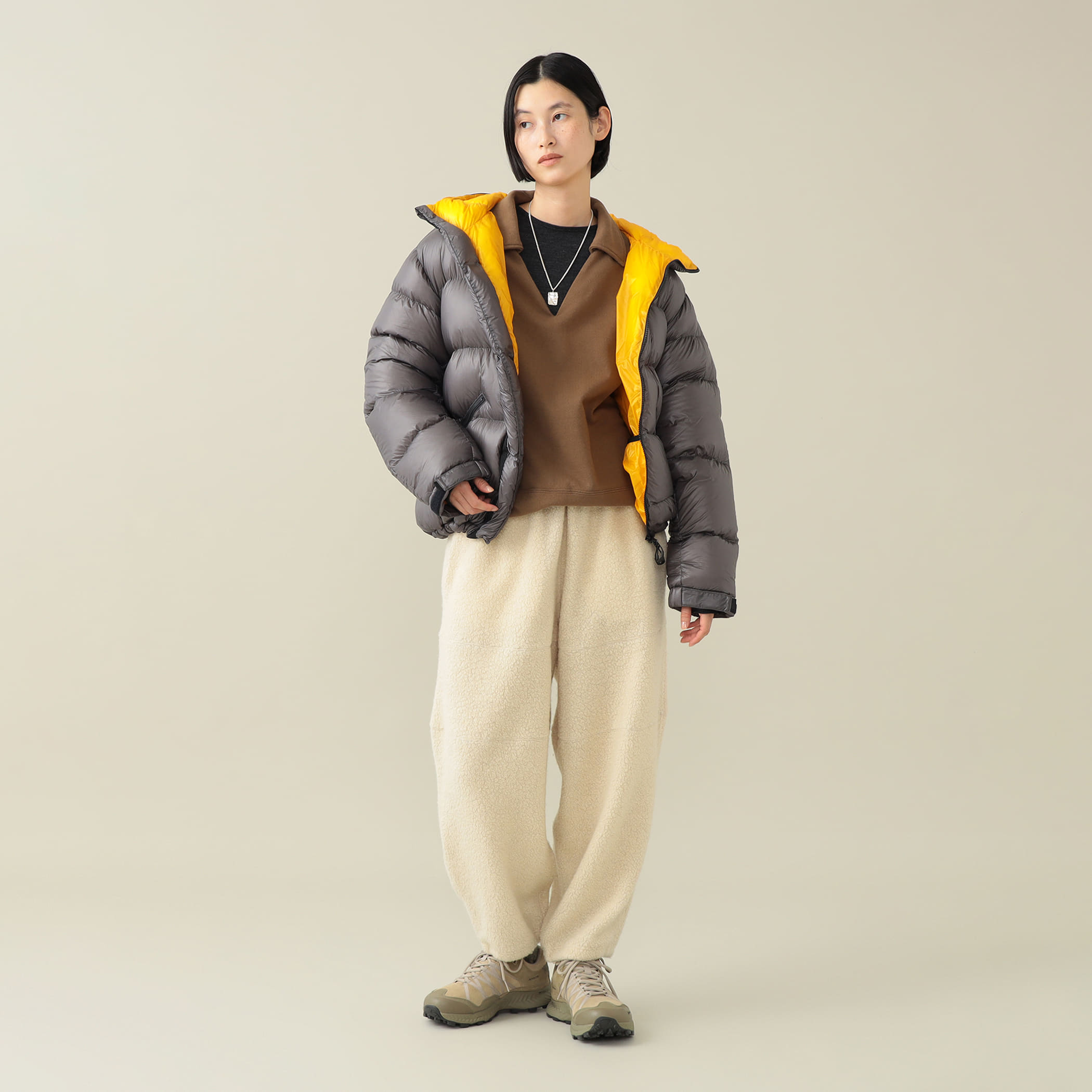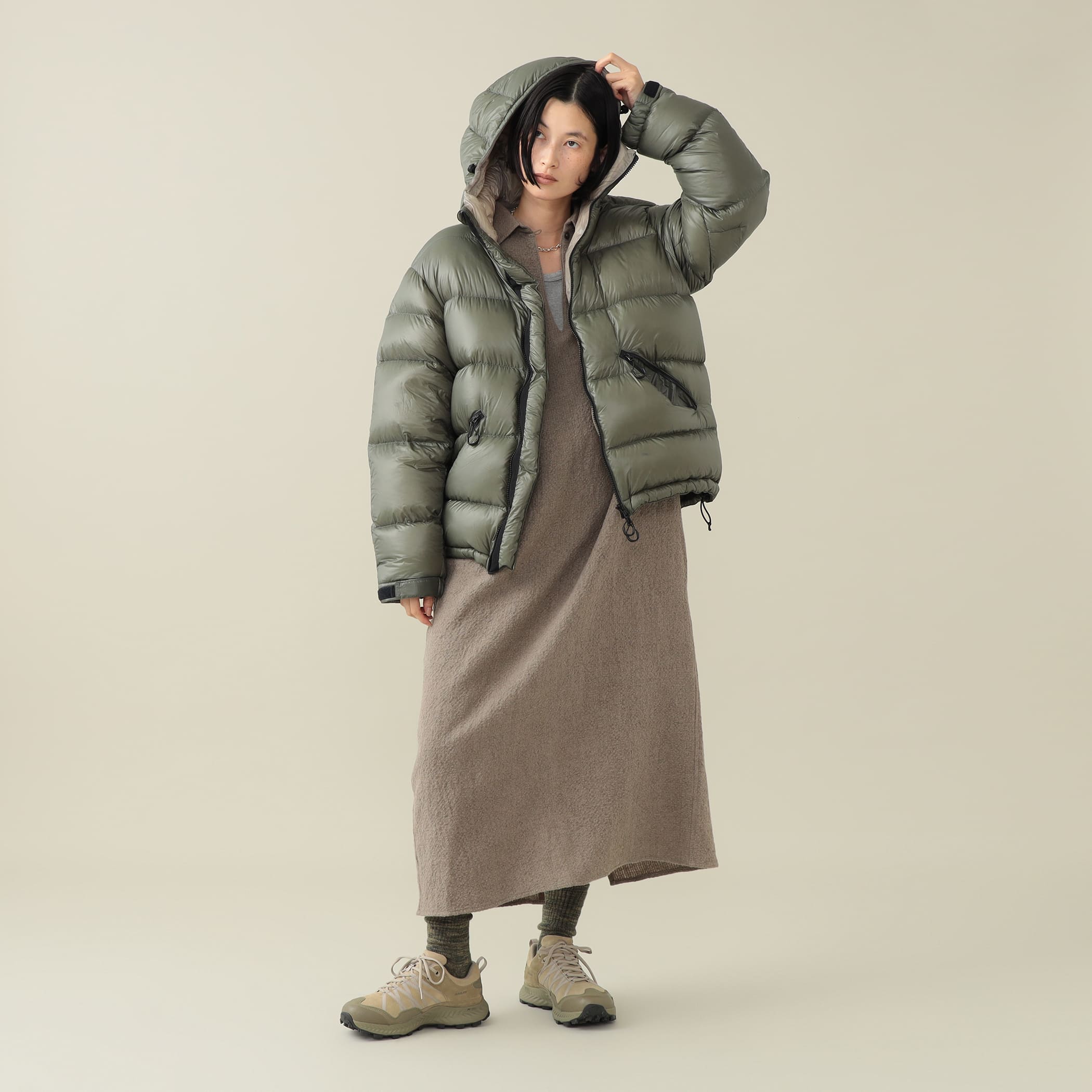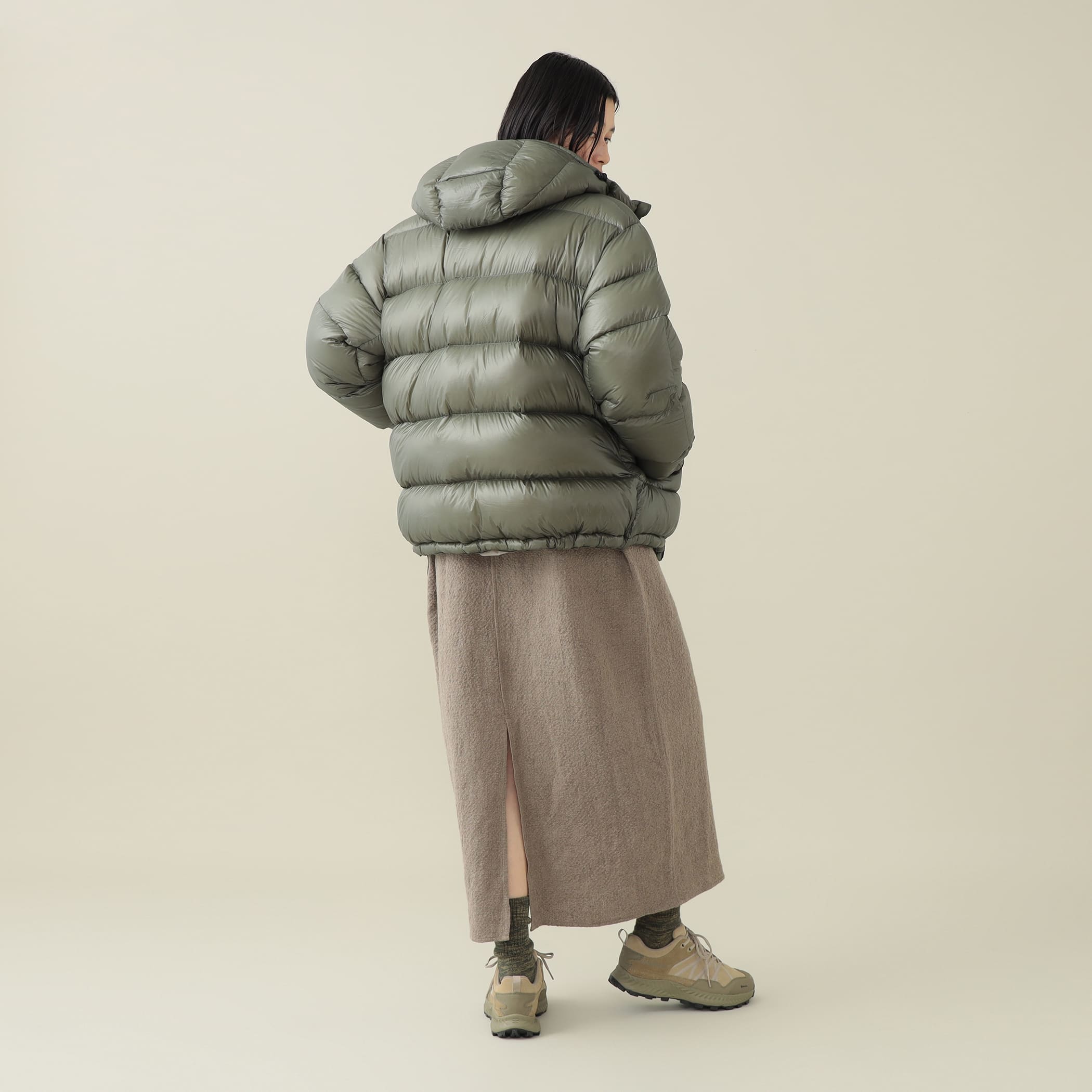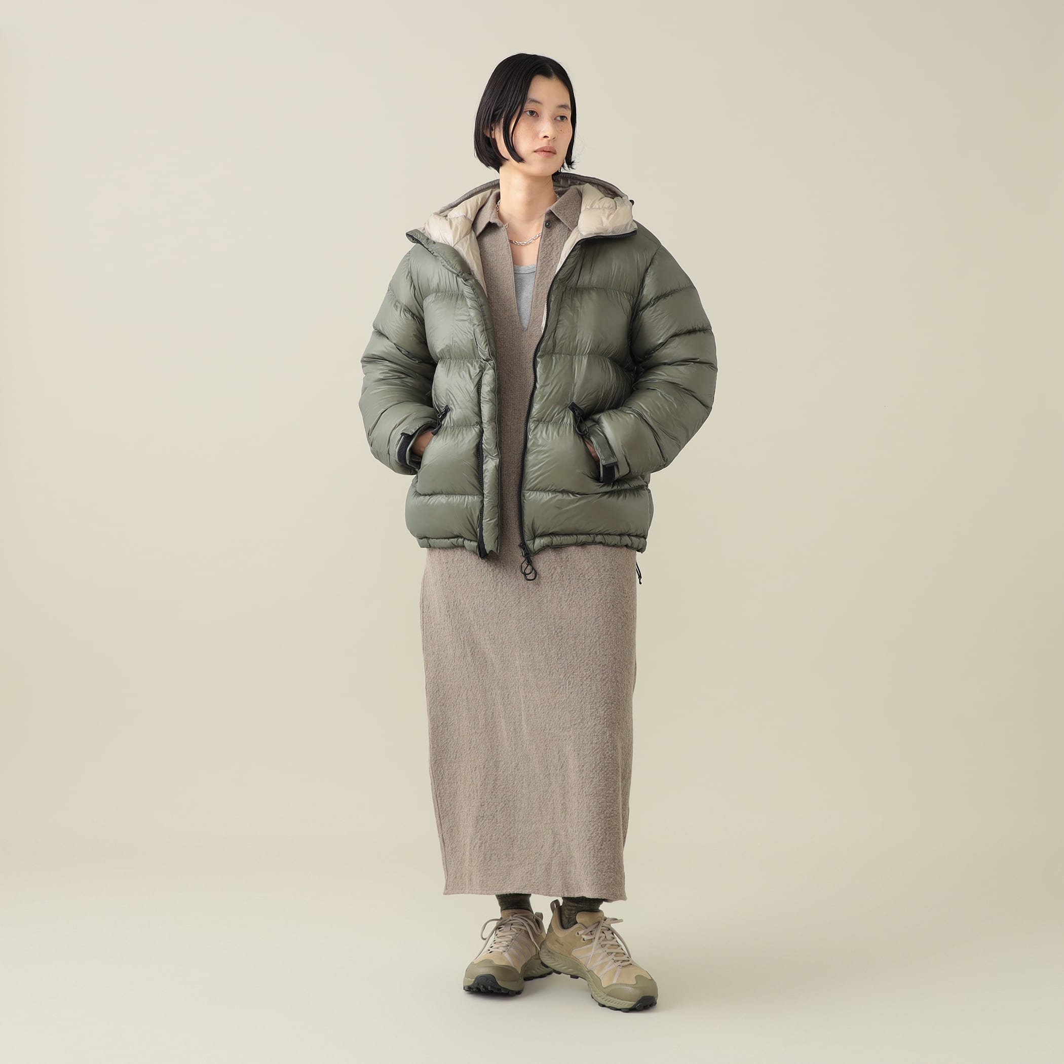 미니멀한 초경량 사양의 다우누 재킷. 지퍼 안쪽 그로그랭 태이프가 있으며 가벼운 비슬론 지퍼를 사용합니다.