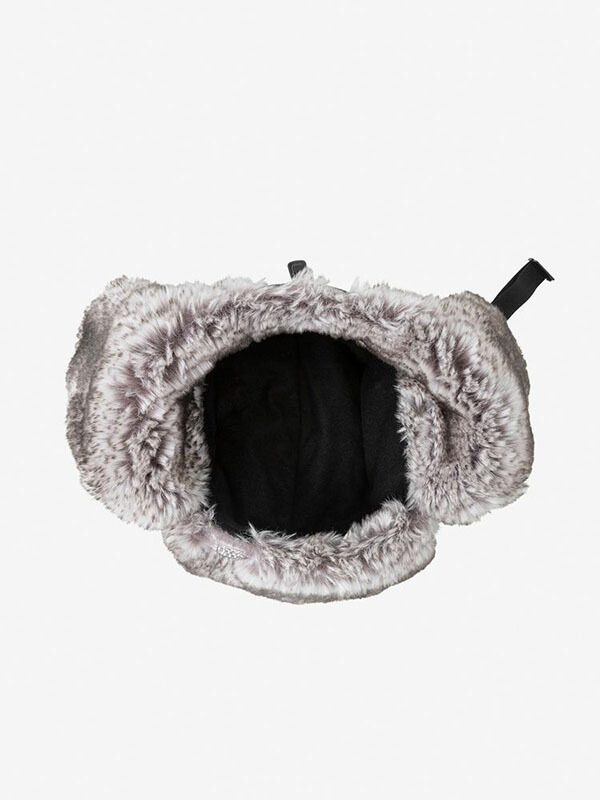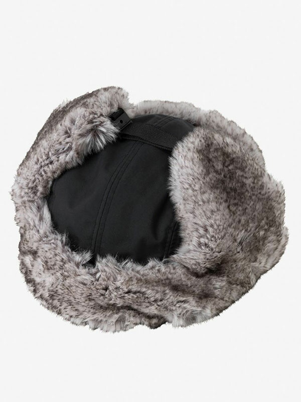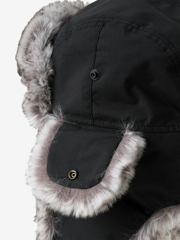 챙 안쪽과 귀덮개에는 폴리에스터 퍼를 적용해 부드러운 촉감과 리얼 퍼에 가까운 밀도감을 제공하며, 길게 설계된 털 길이가 체온 손실을 막고 보온성을 높여줍니다. 귀덮개는 테이프 버클식으로 머리 위로 고정하여 일반 캡 형태로도 활용할 수 있습니다.