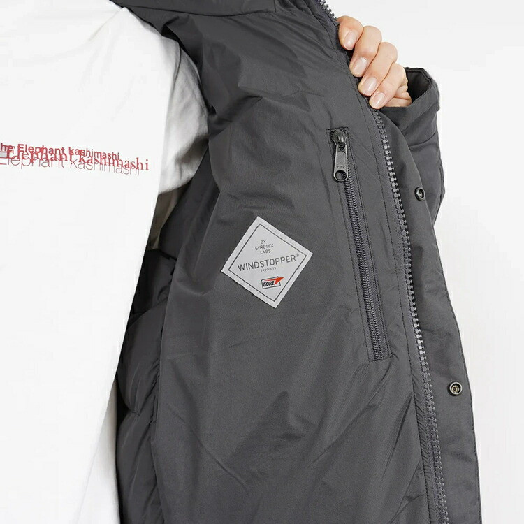 충전재는 일부 리사이클 다운을 사용해 가볍지만 높은 보온성을 제공하며, 안감에는 GORE-TEX WINDSTOPPER 2-Layer 구조를 적용하여 바람을 완벽하게 차단합니다.
