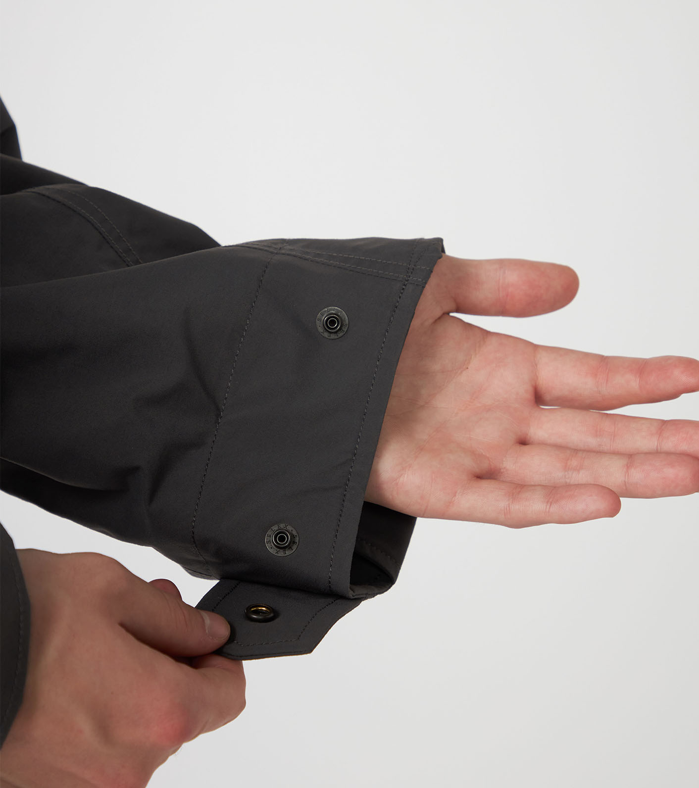 2L 나일론 소재의 필드 코트. 무불소화 방수·투습 멤브레인과 발수 가공을 한 2층 ePE GORE-TEX 원단을 사용합니다. M-65 필드 재킷을 베이스로, 마운틴 재킷의 디자인의 디테일입니다. 드롭숄더 디자인