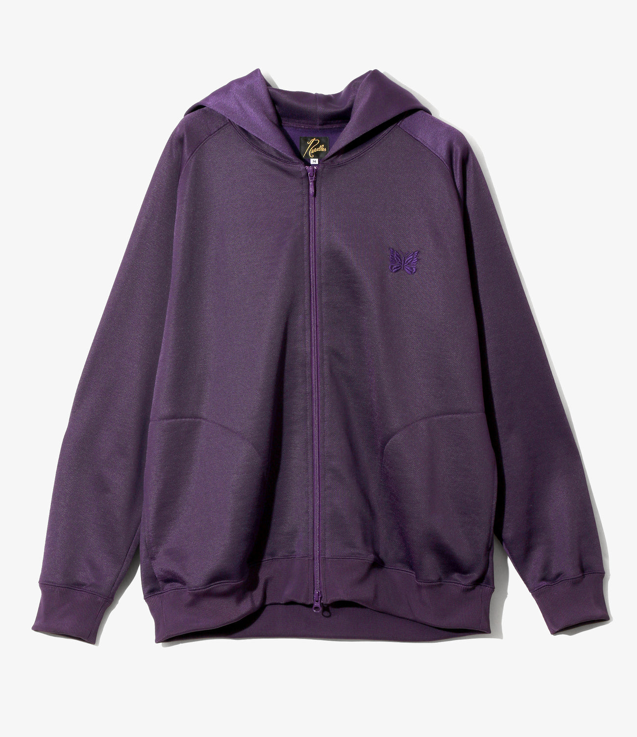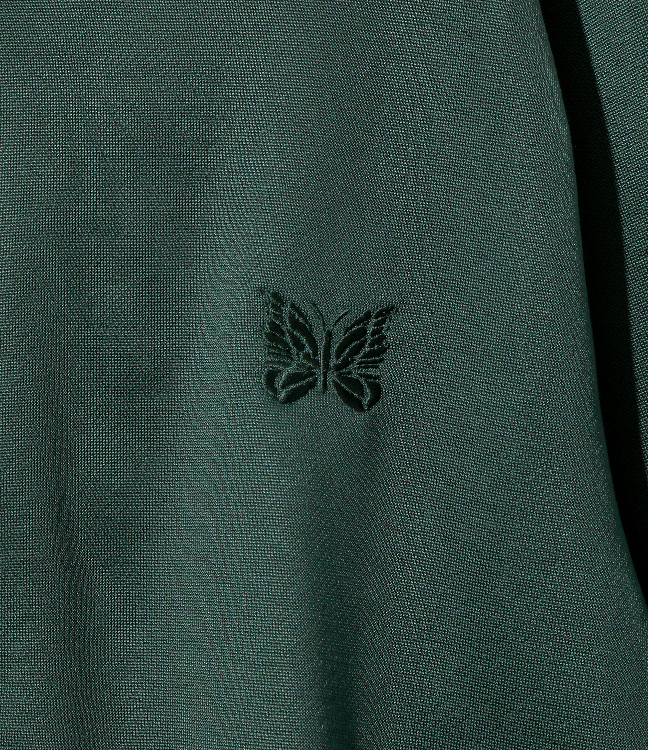 니들스의 인기 브라이트 저지를 사용한 지퍼 파커. 왼쪽 가슴에 빠삐용 자수, 광택 소재, 독특한 컬러링이 포인트입니다.