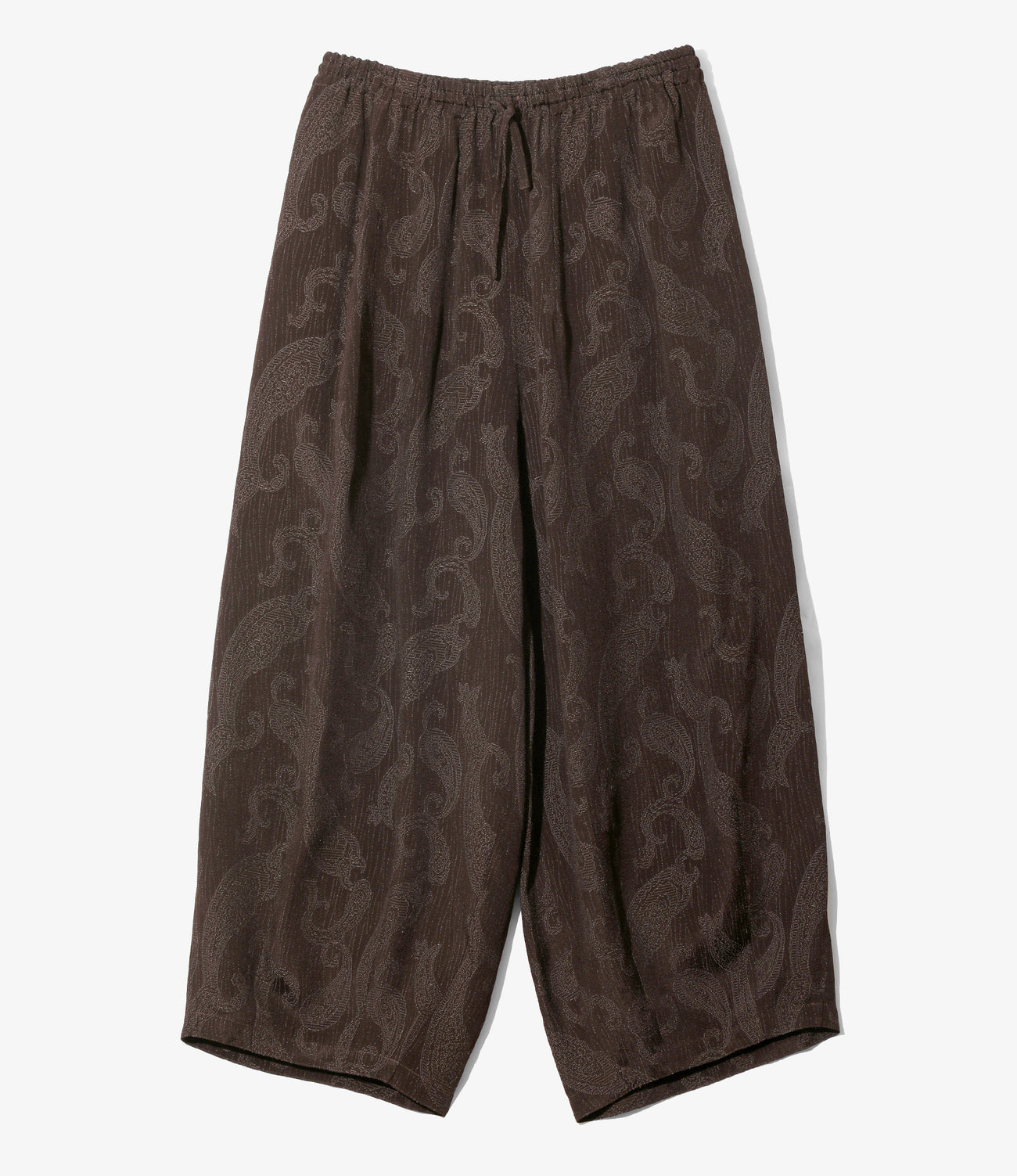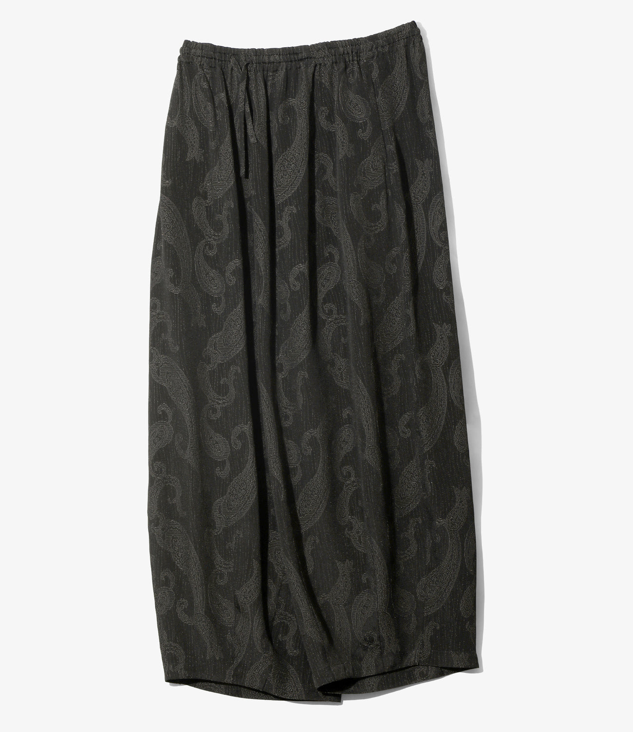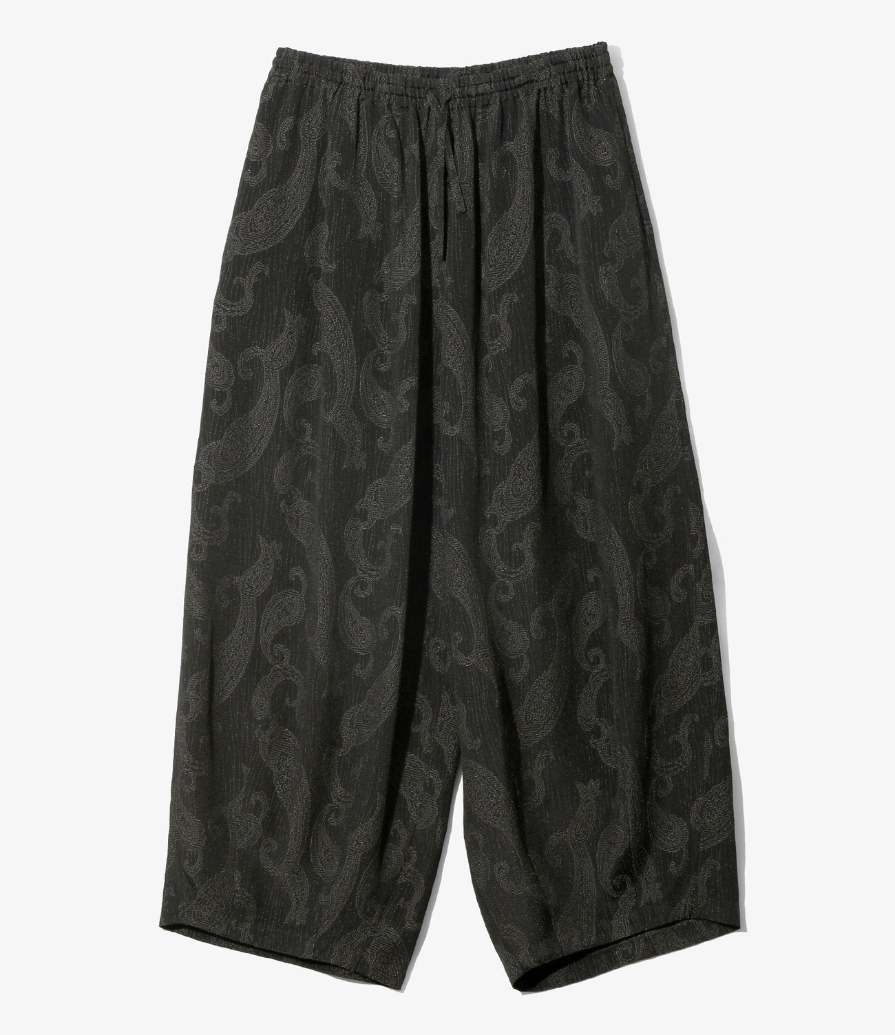 허리와 밑단에 더해진 다트 처리로 팬츠 중앙이 크게 부풀어 오르는 독특한 와이드 실루엣입니다.