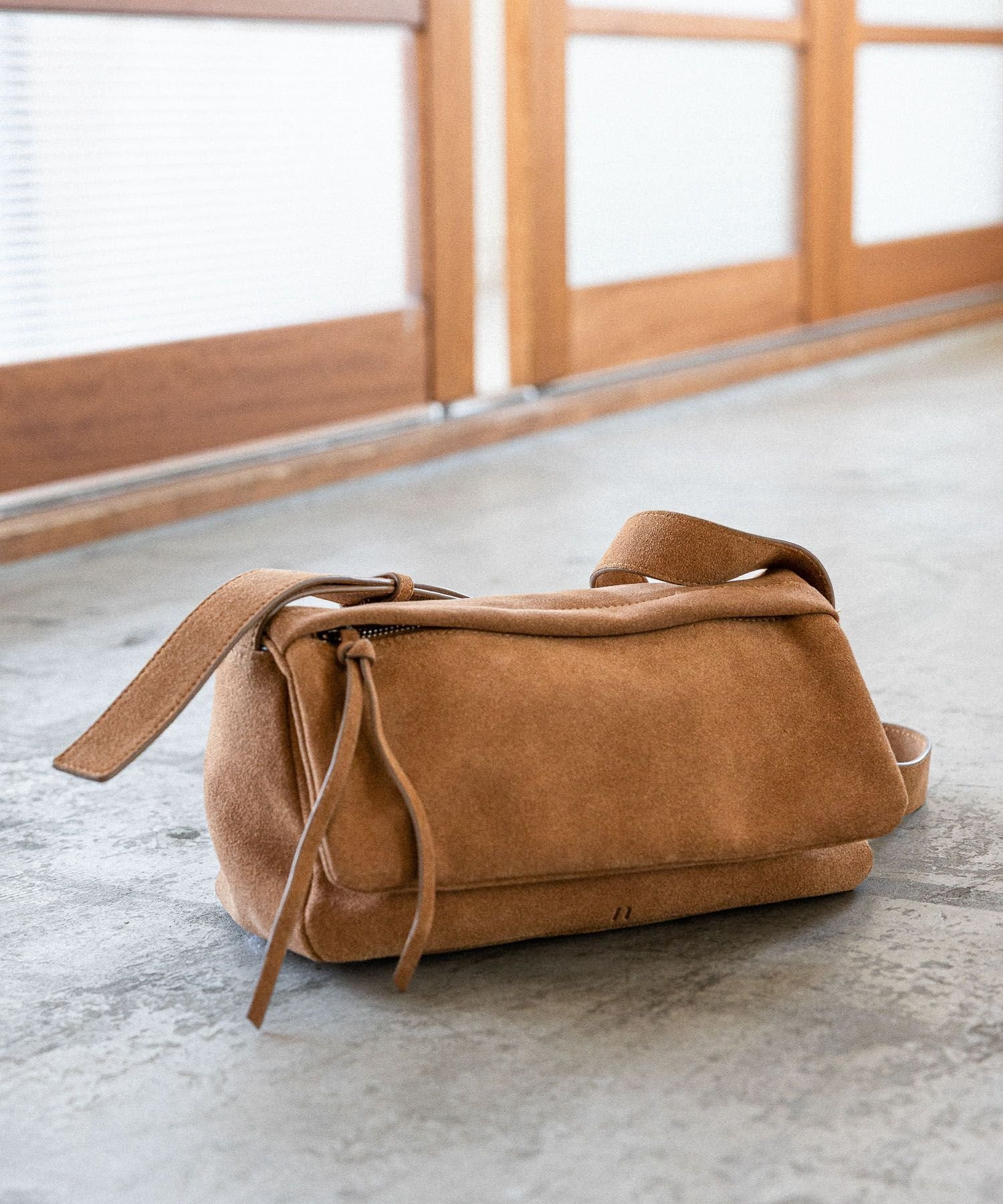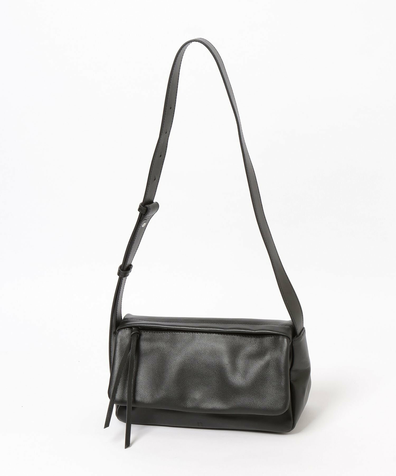 내구성이 뛰어난 소가죽으로 제작된 컴팩트 숄더백.