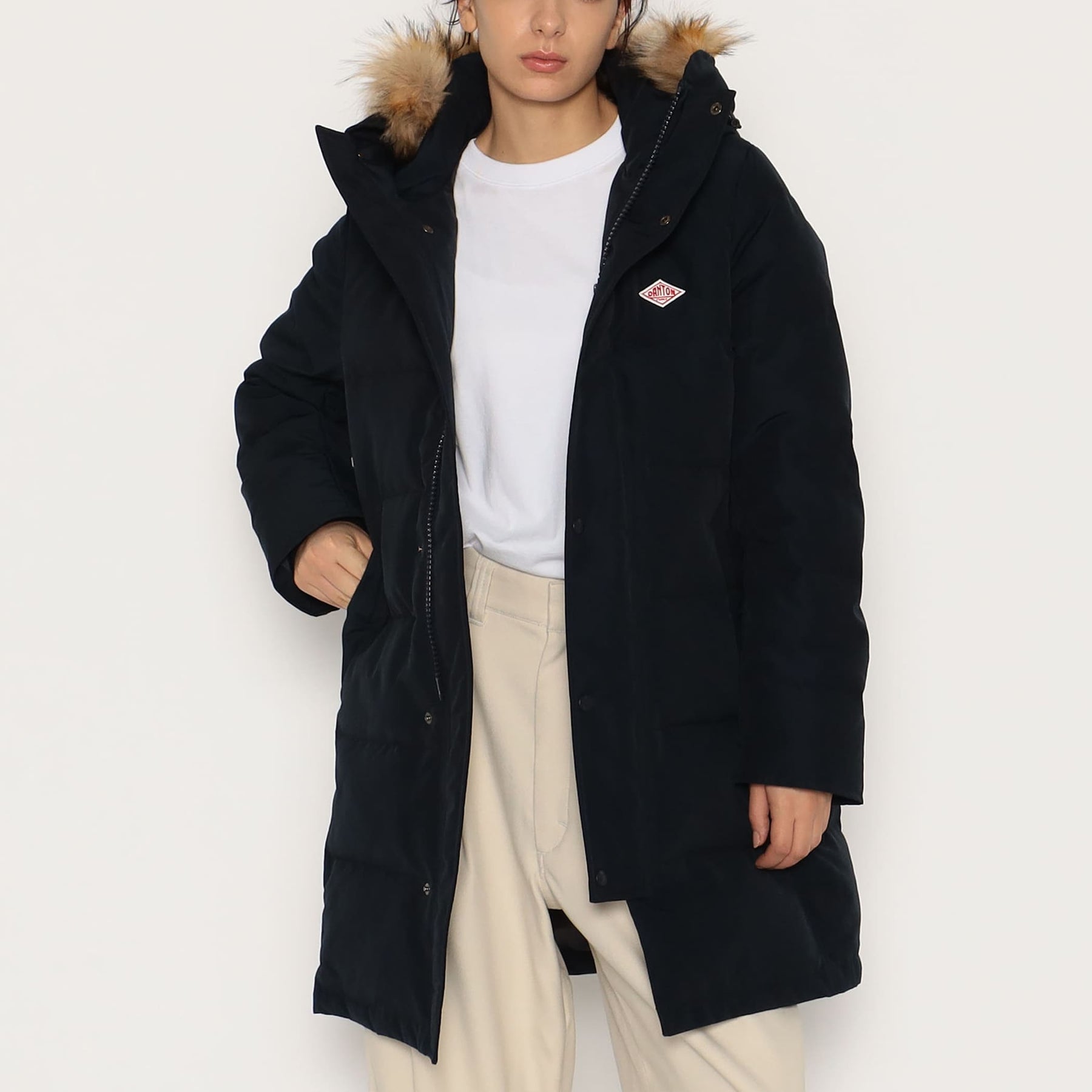 단톤 퍼 후드 다운 패딩 코트