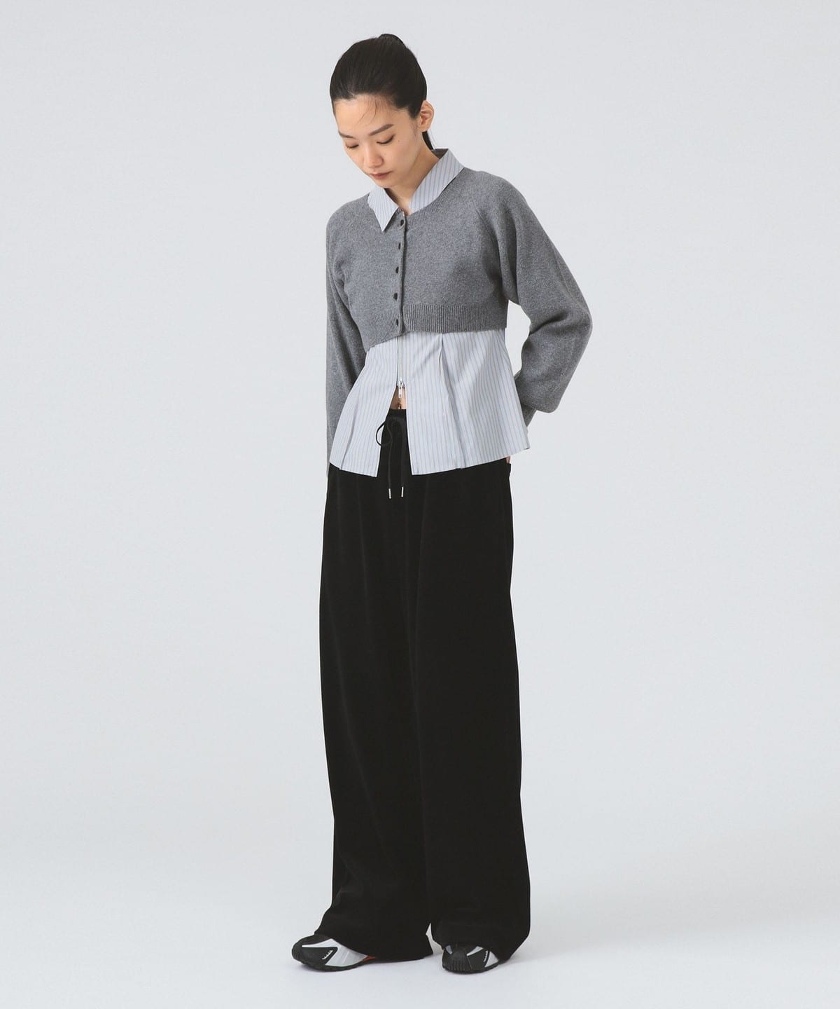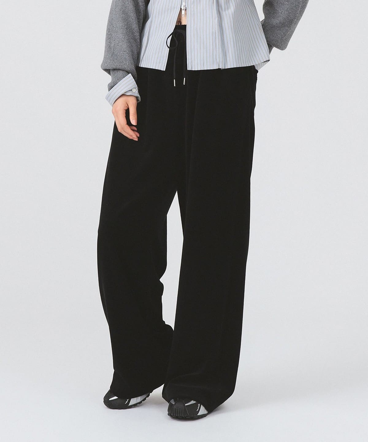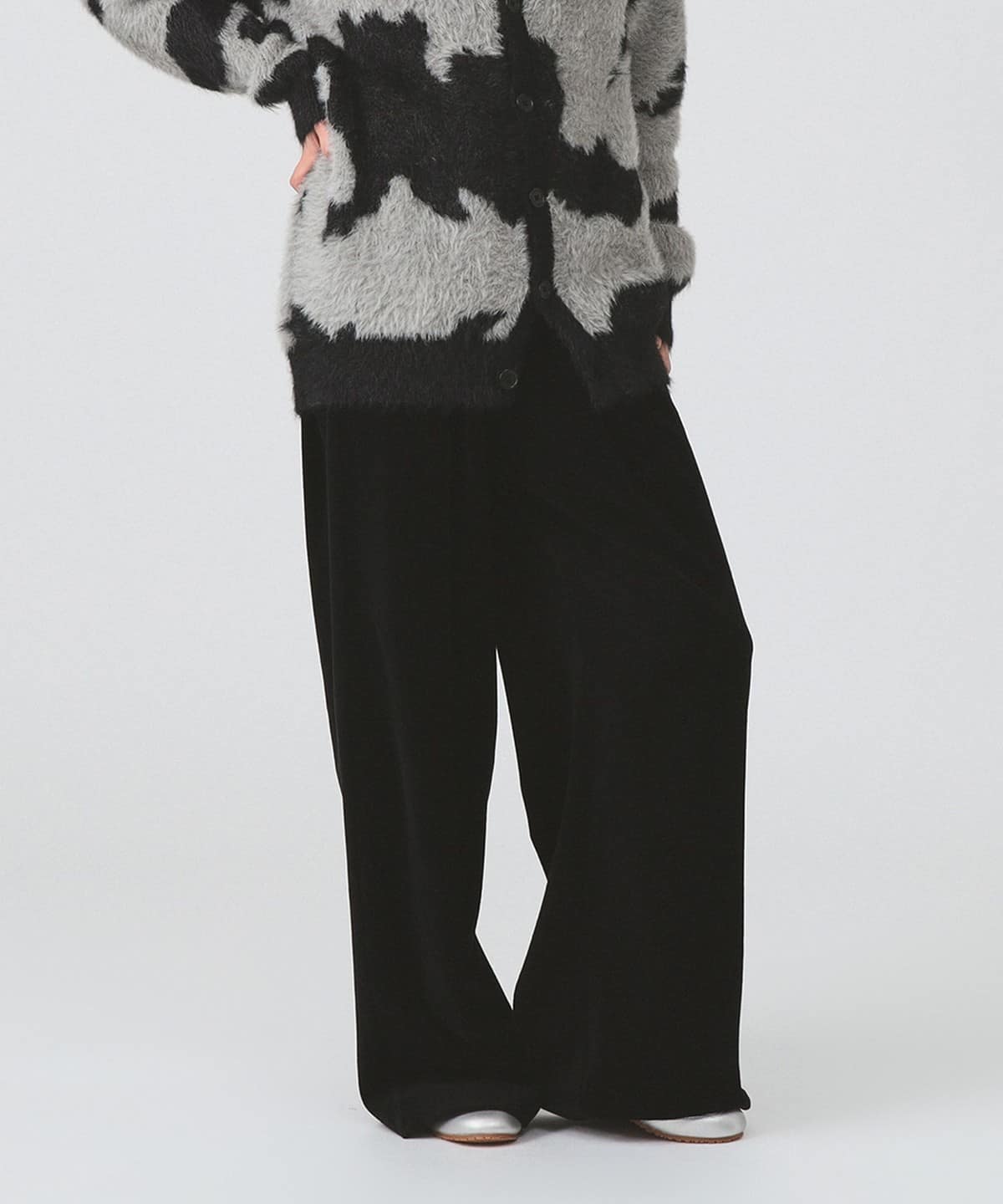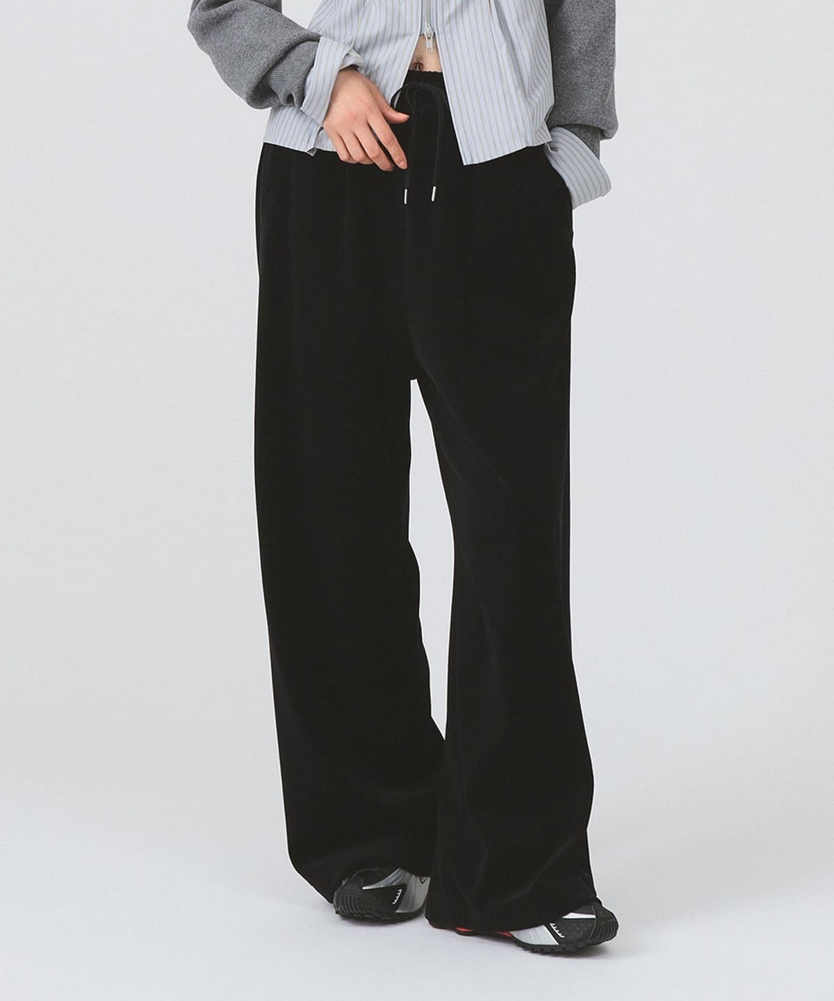 이번 시즌 트렌드 아이템인 스웨트 팬츠를, 고급스러운 벨루어 소재로 제작되었습니다. 허리는 전체 밴드와 스트링으로 이루어진 이지 웨스트 사양이며 여유로운 오버사이즈 실루엣으로 편안한 착용감입니다.