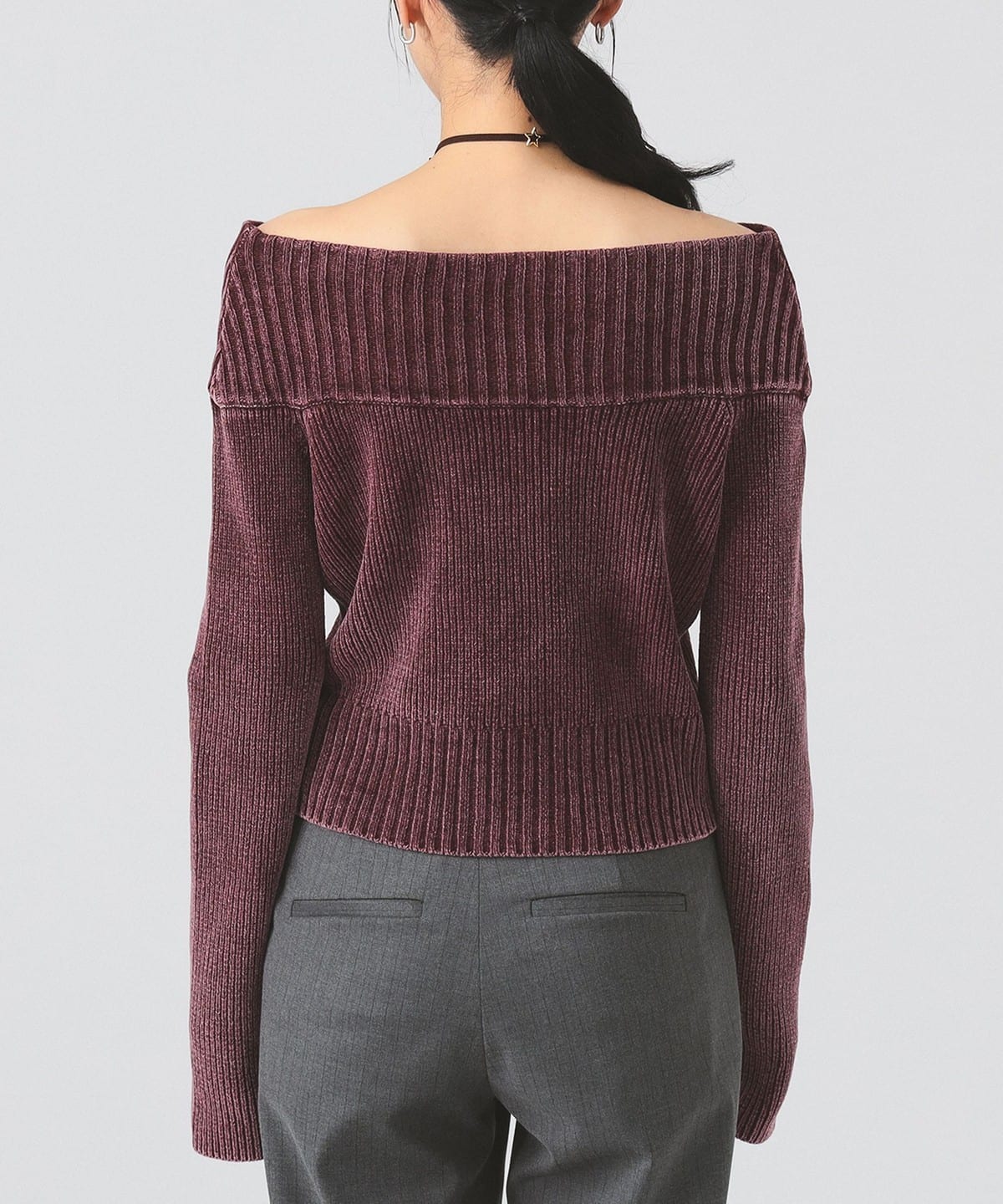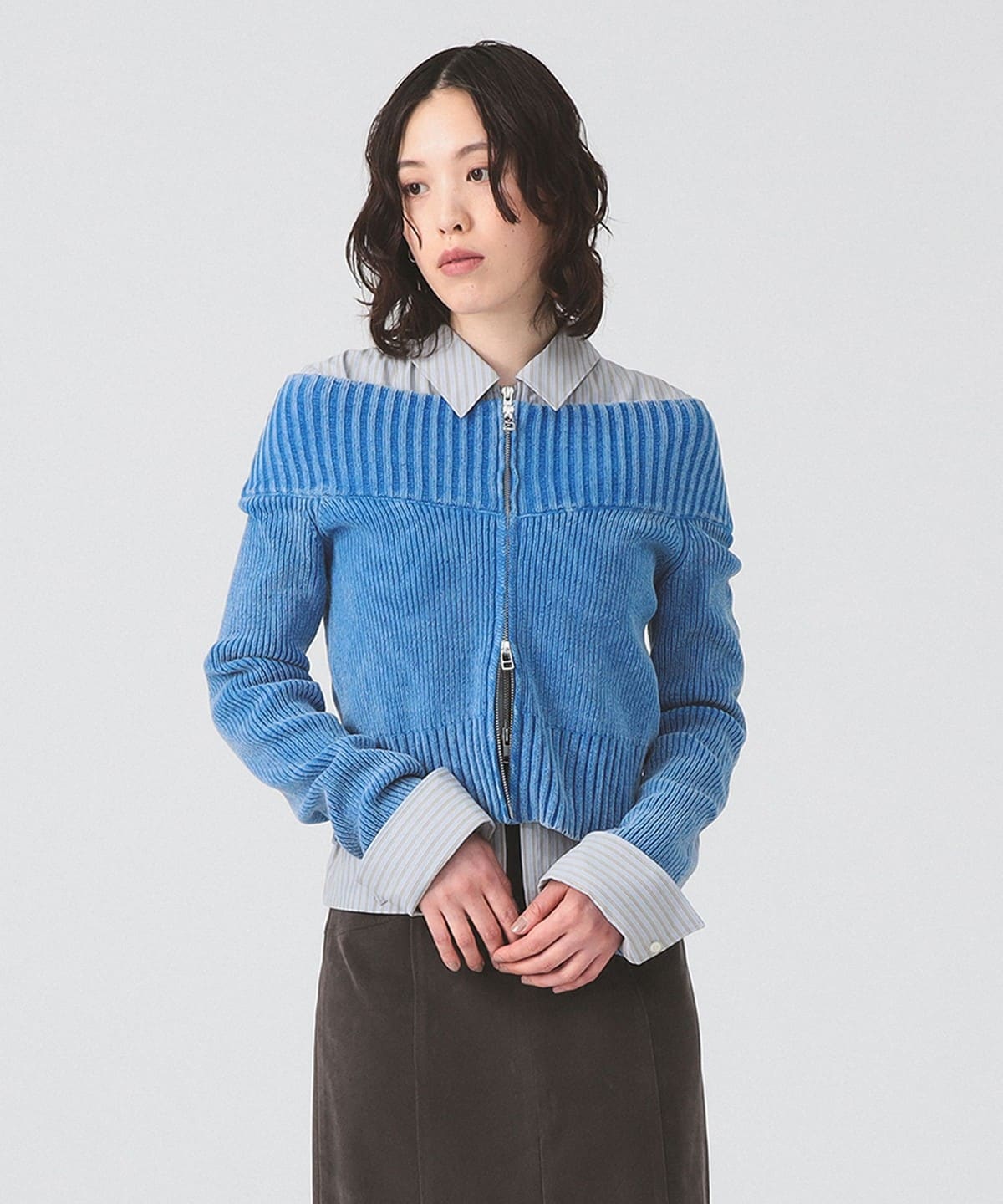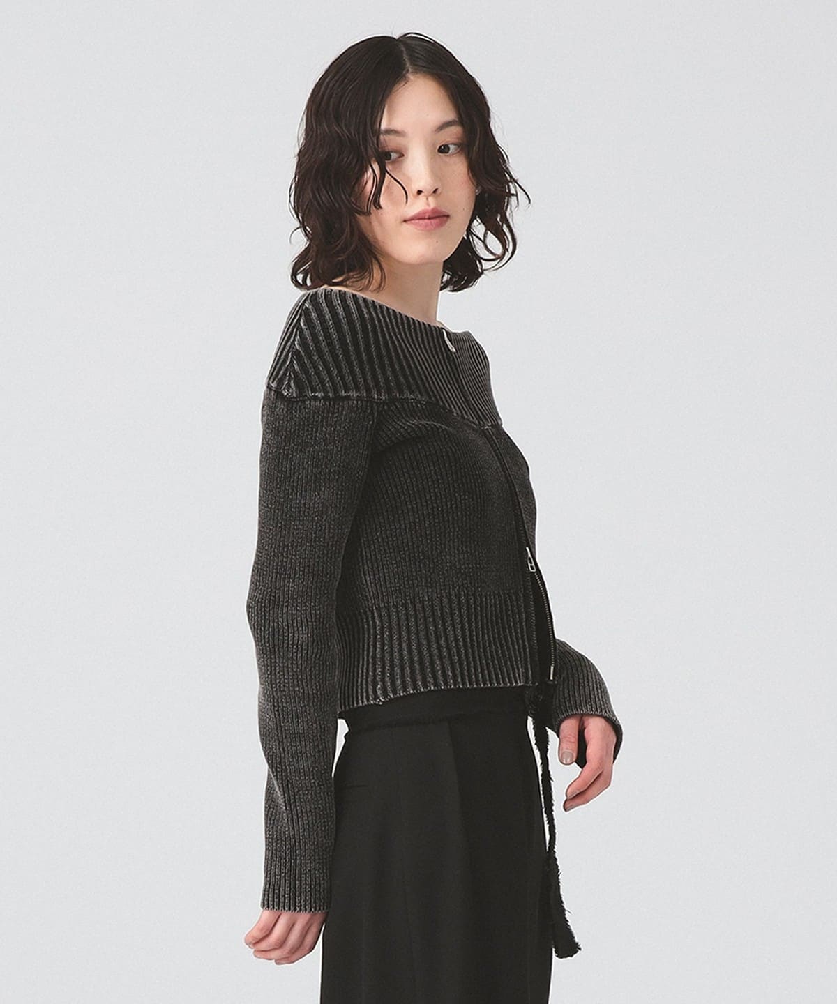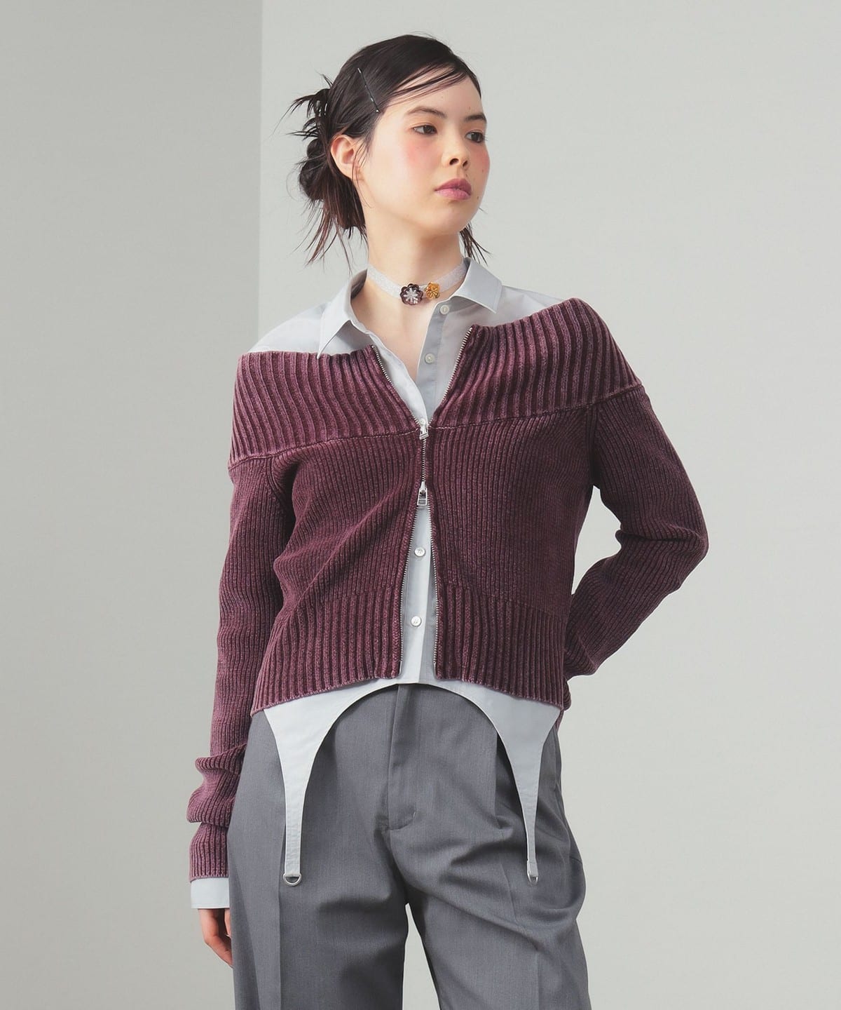 레이 빔즈 오프숄더 지퍼 니트 가디건