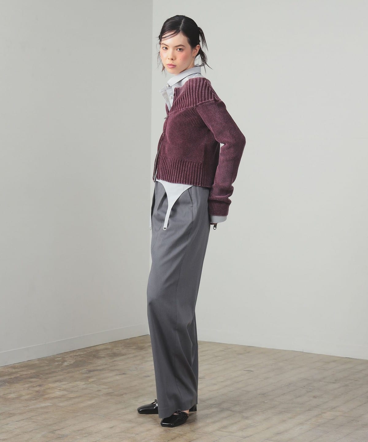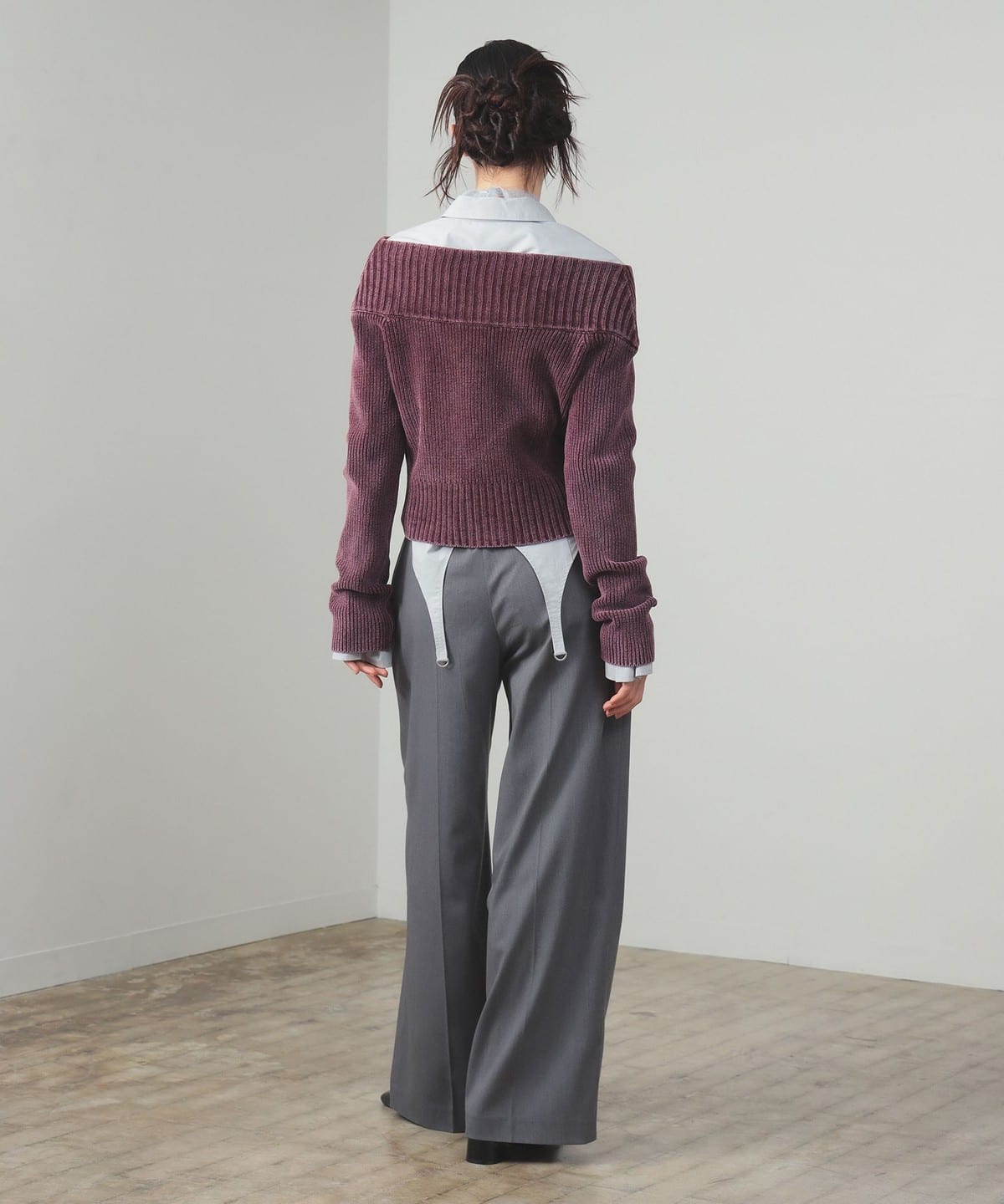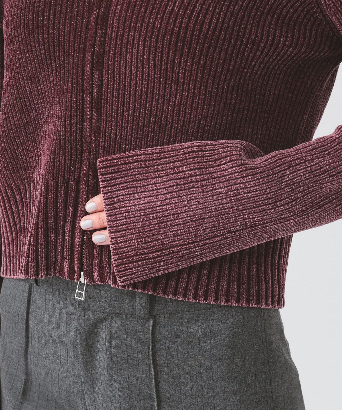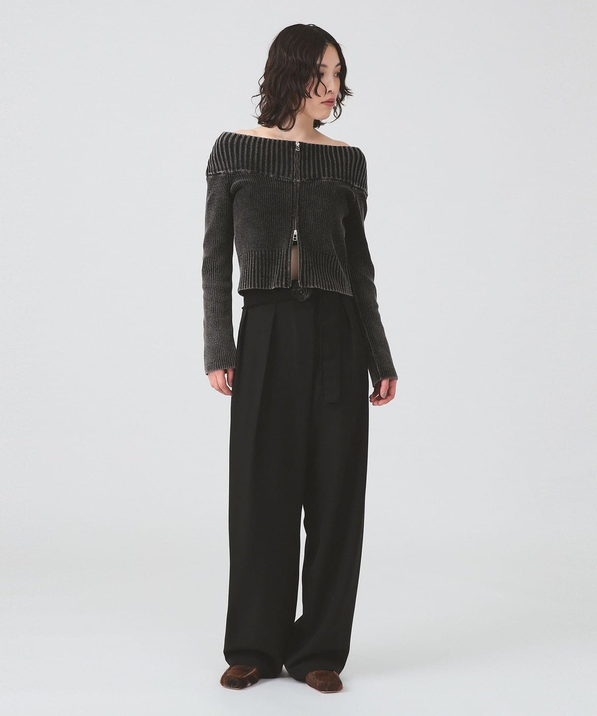 레이 빔즈 오프숄더 지퍼 니트 가디건