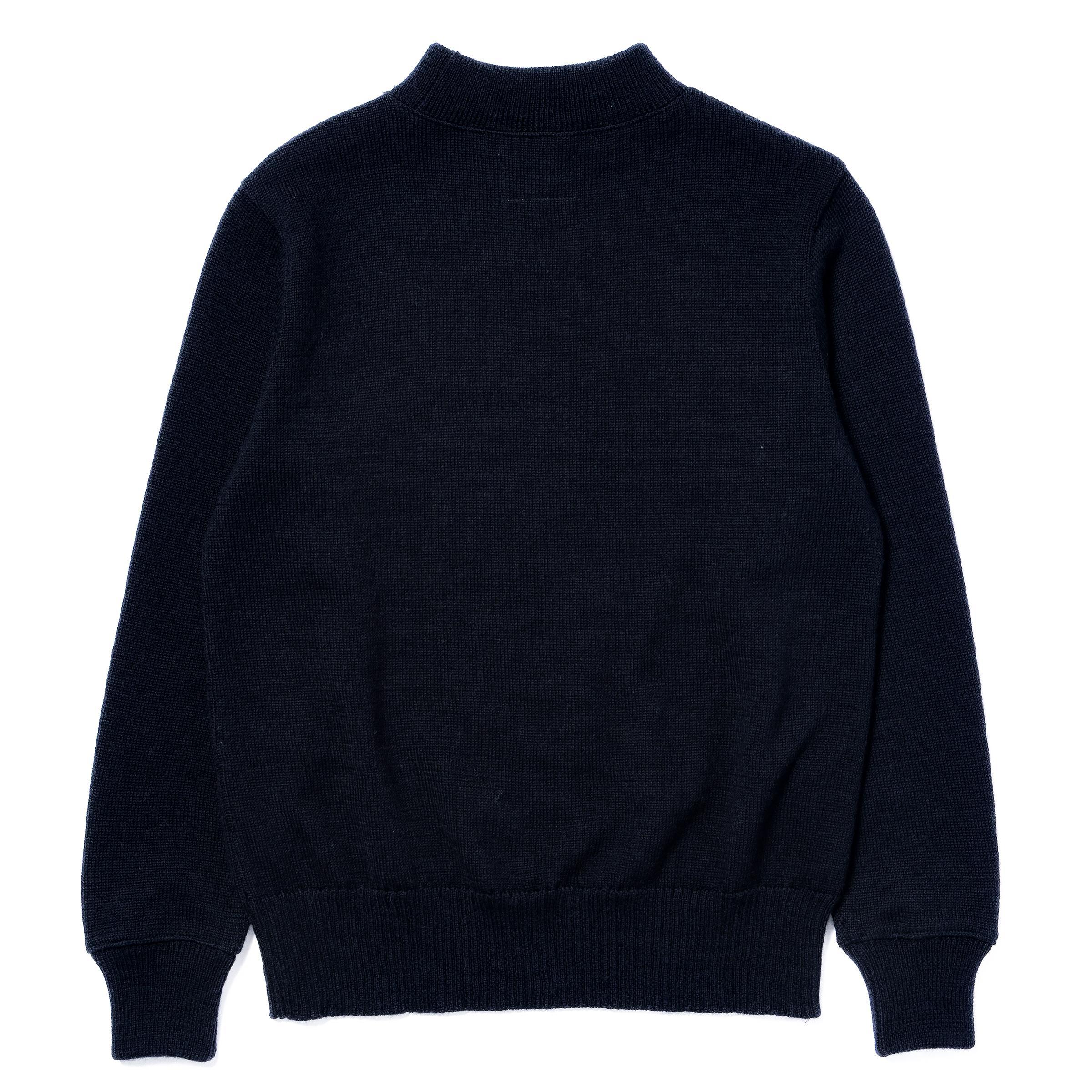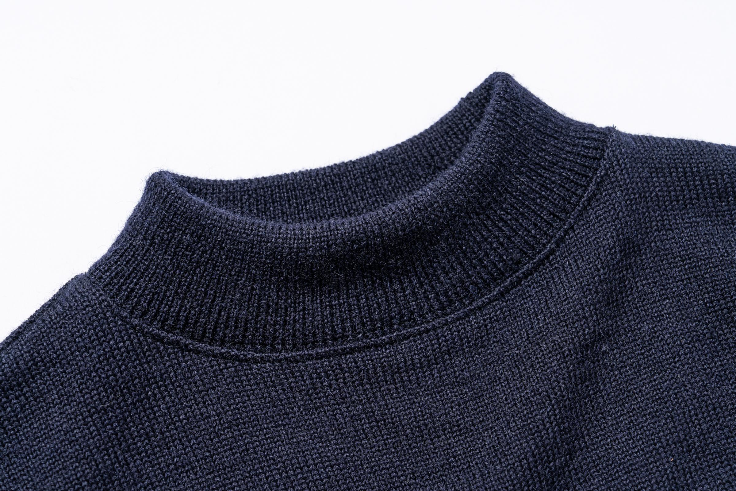 해군에 입대하면 지급되던 울 소재의 니트. 방한이 필요한 상황에서 제복 안에 착용하는 용도로 사용되기 때문에, 하이게이지로 촘촘하게 짜인 타이트한 피팅이 특징입니다.