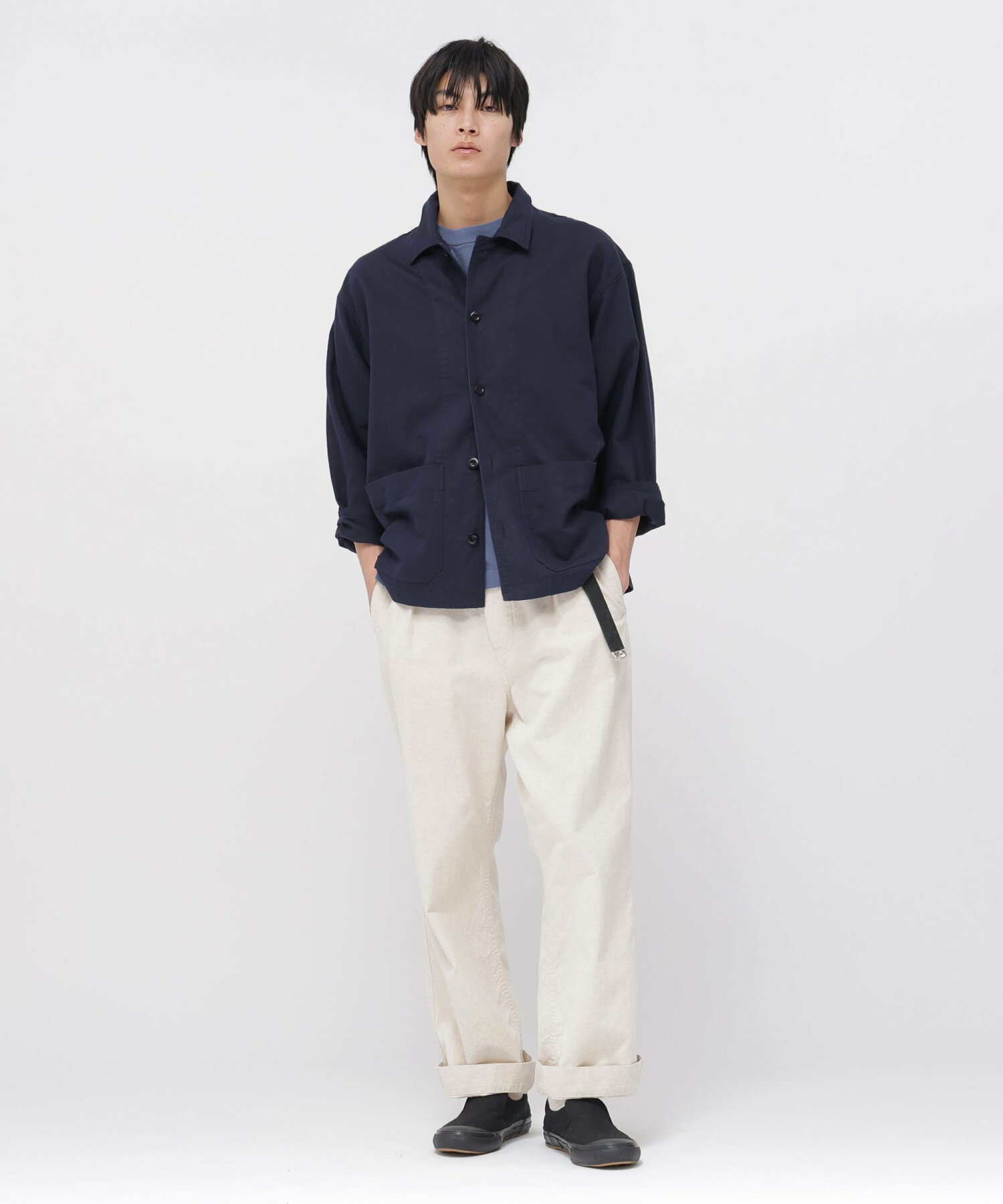 코튼과 헴프를 사용해 내추럴한 볼륨감이 느껴지는 옥스포드 원단 셔츠입니다.빈티지 커버올 재킷을 베이스로 한 디자인입니다.
