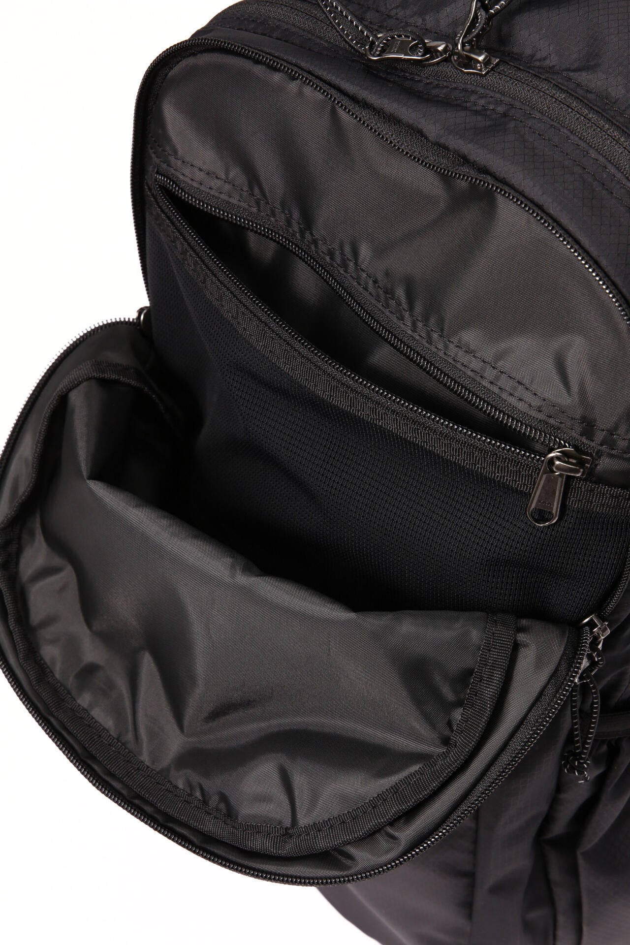 강력한 발수 마감 처리 된 다이아몬드 립스탑 소재의 백팩. 가볍고 내구성이 뚜이ㅓ납니다. 모서리를 줄인 부드러운 라인 디자인이며 가슴 벨트를 활용하면 액티브한 상황에서도 사용할 수 있습니다. 전면 포켓에 메쉬 이너 포켓이 있어 작은 물건 수납이 가능합니다. 본ㅁ체 내부에 포켓터블 사양으로 수납할 수 있습니다.