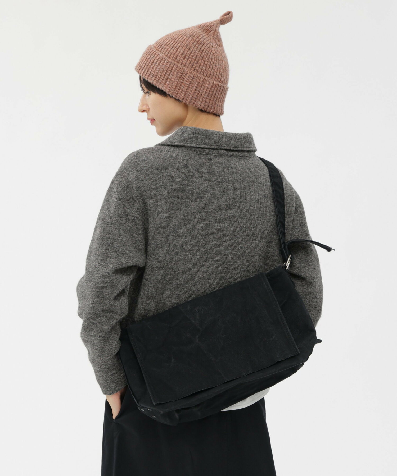 템베아를 대표하는 코튼 캔버스 파라핀 코팅 원단을 사용해 견고하면서도 자연스러운 생활 주름과 빈티지한 느낌의 숄더백입니다. 각 제품마다 서로 다른 질감과 에이징을 즐길 수 있도록 완성했습니다. TEMBEA의 시그니처 ‘와이어 백’을 기반으로 MHL.의 스타일에 잘 어울리는 사이즈·밸런스로 재구성했으며, 삼각형 가스켓 구조에 리벳을 더해 내구성을 강화했습니다.