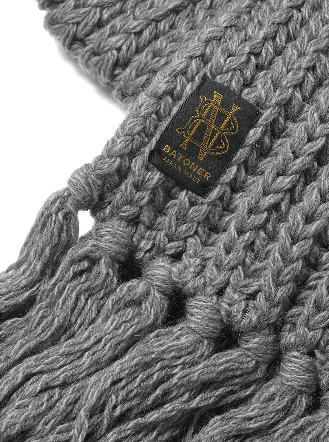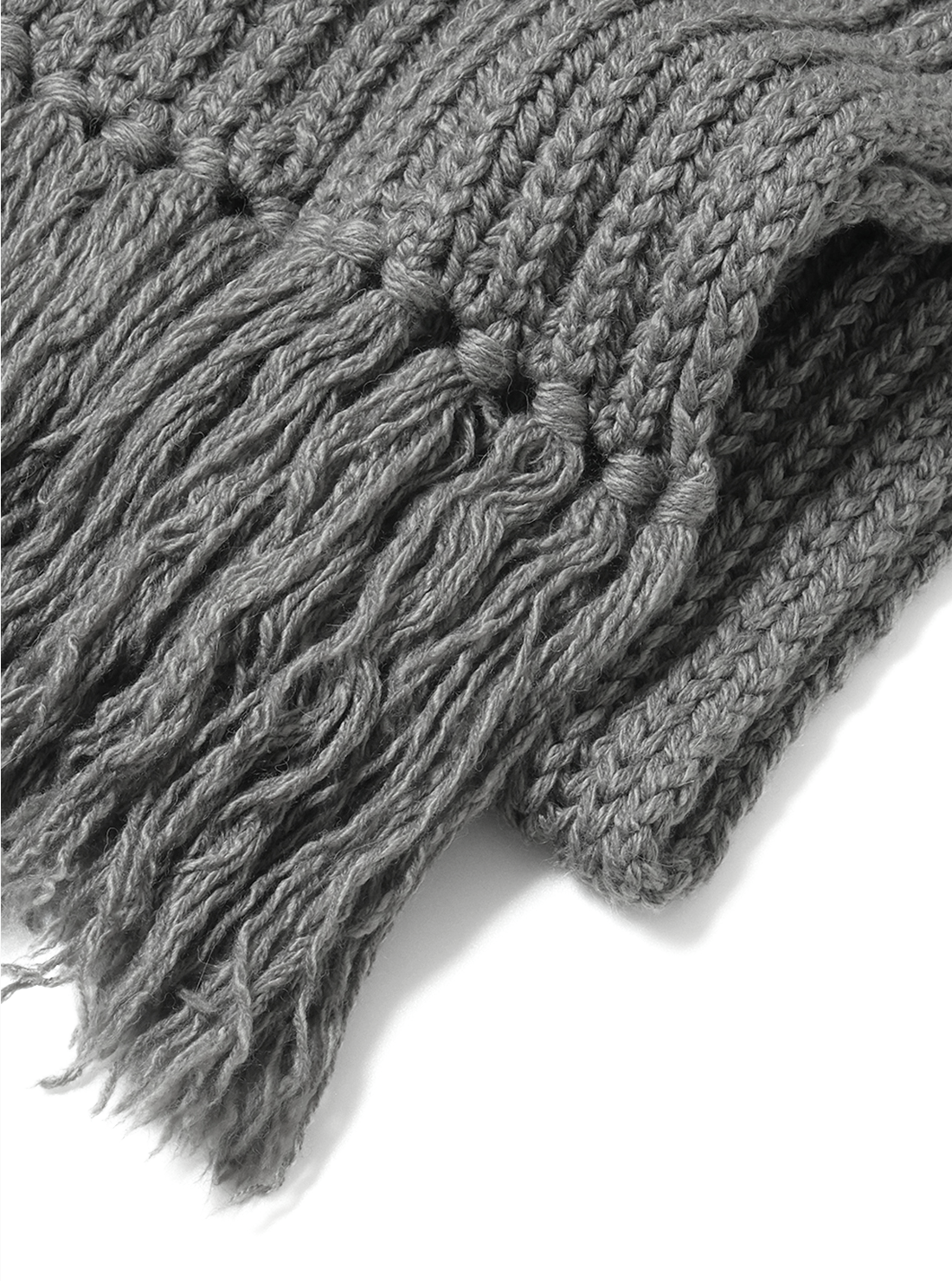 로우게이지 방식으로 포근하게 짜올린 BATONER 대표 프린지 머플러입니다. 탄력 있는 볼륨감을 가진 굵은 메리노울을 기반으로, 부드럽고 따뜻한 베이비 알파카, 은은한 광택의 실크를 혼합해 완성한 프리미엄 혼방사로 제작했습니다.
