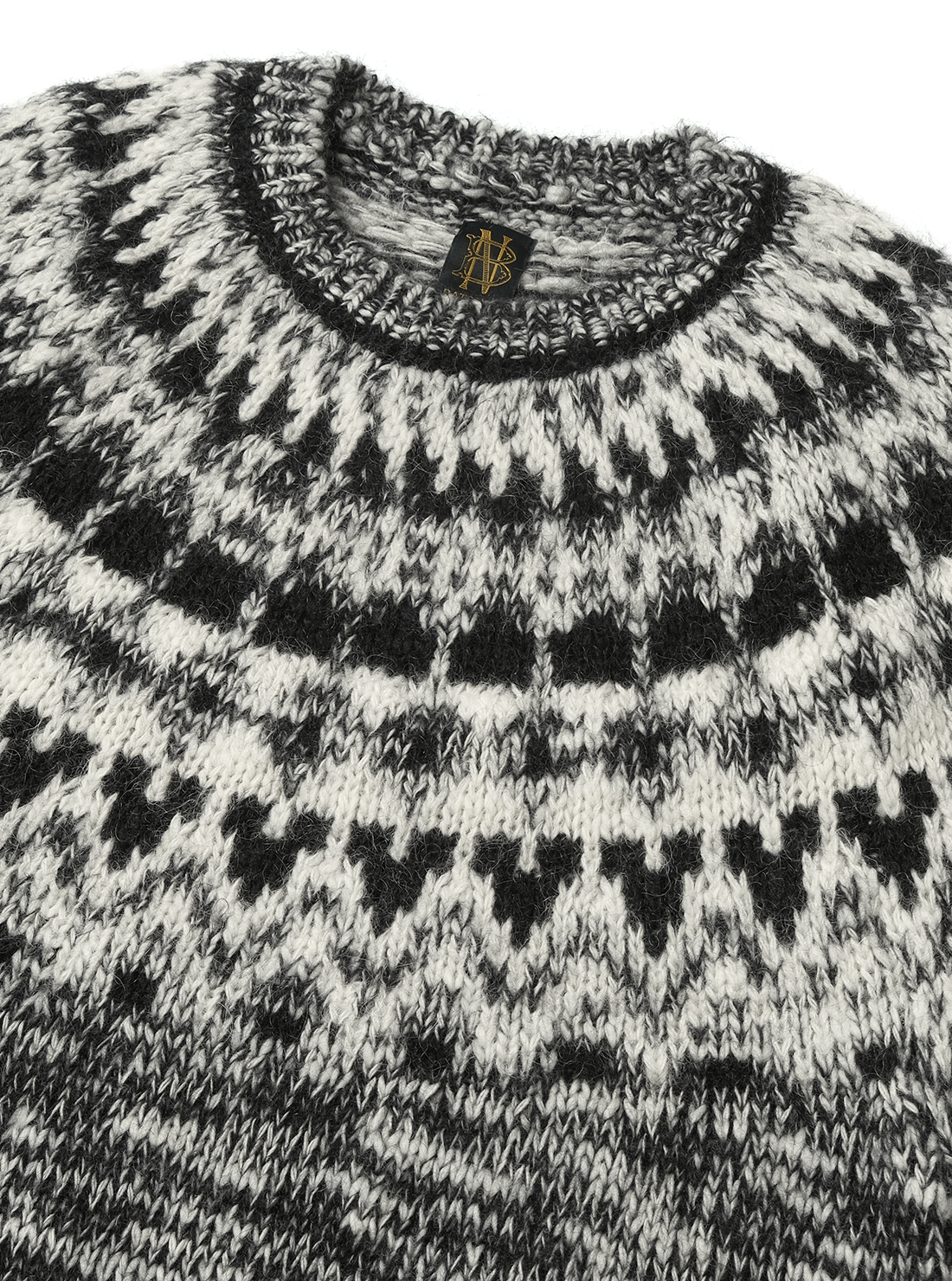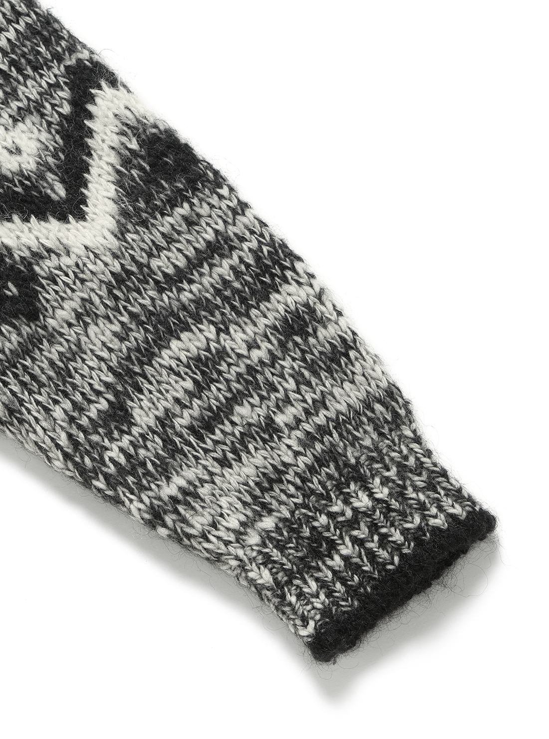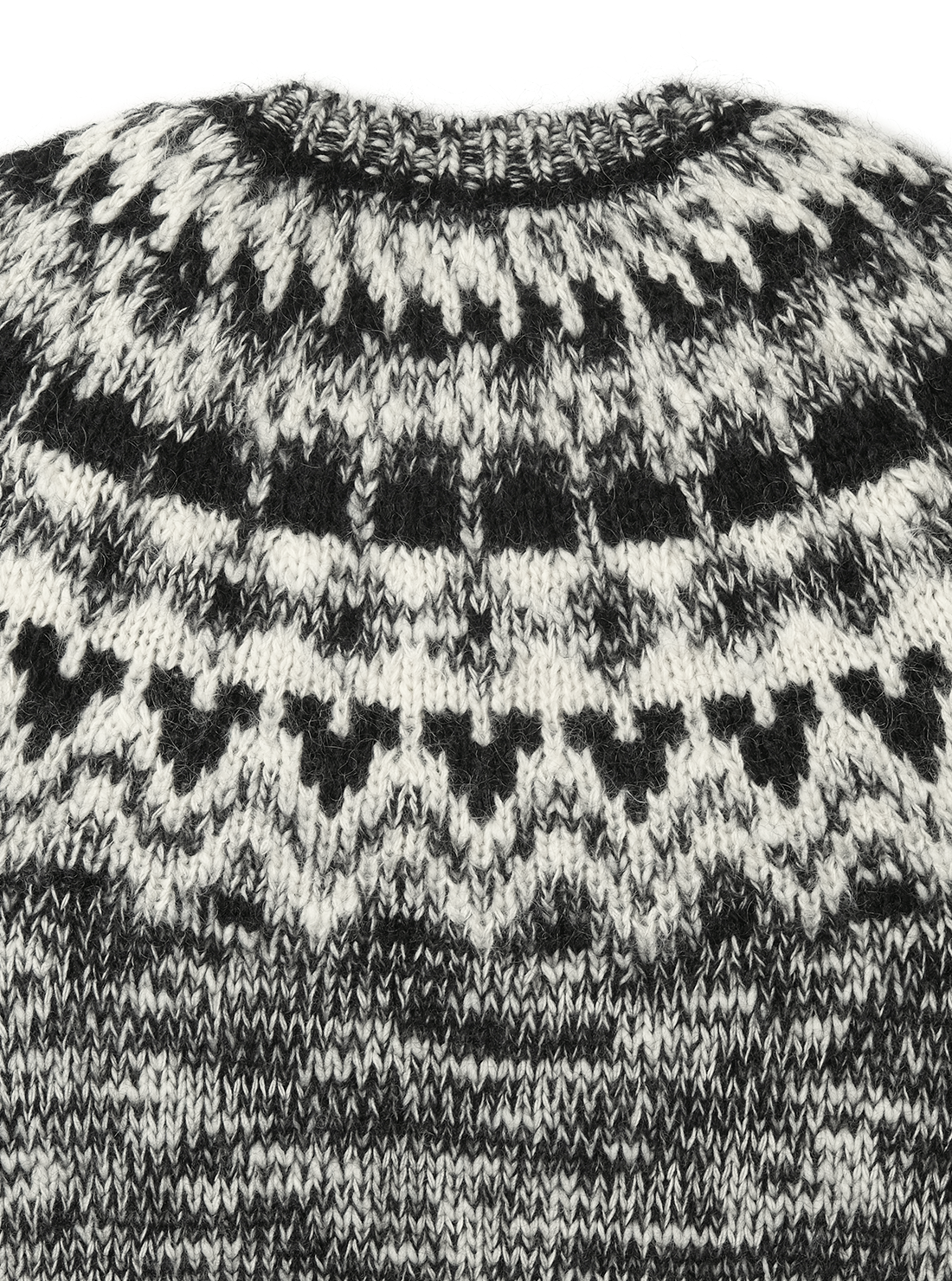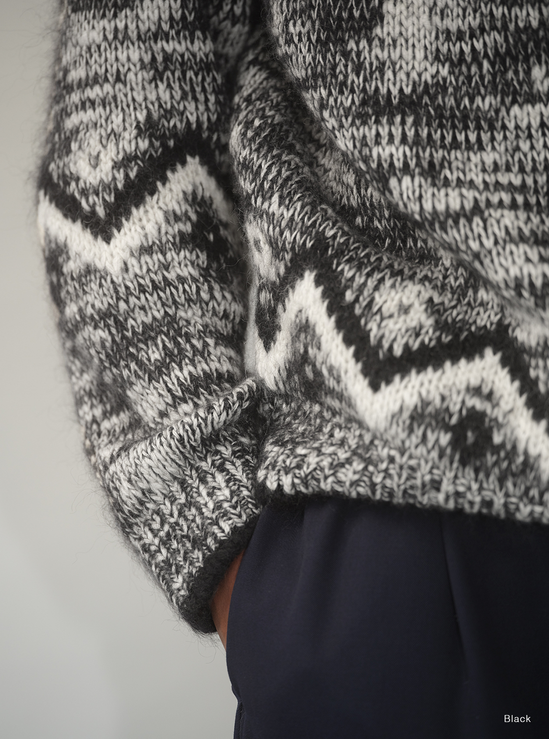 모헤어·알파카·울의 천연 섬유를 블렌드한 실에 굵은 슬럽얀 을 더해 편직한 니트입니다.