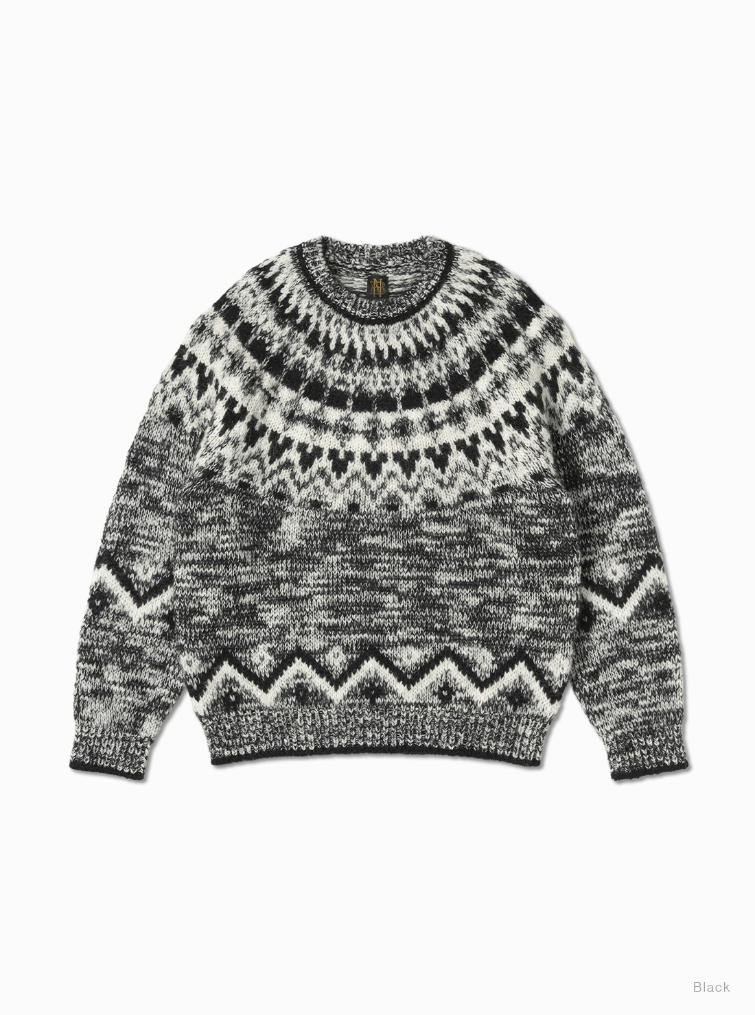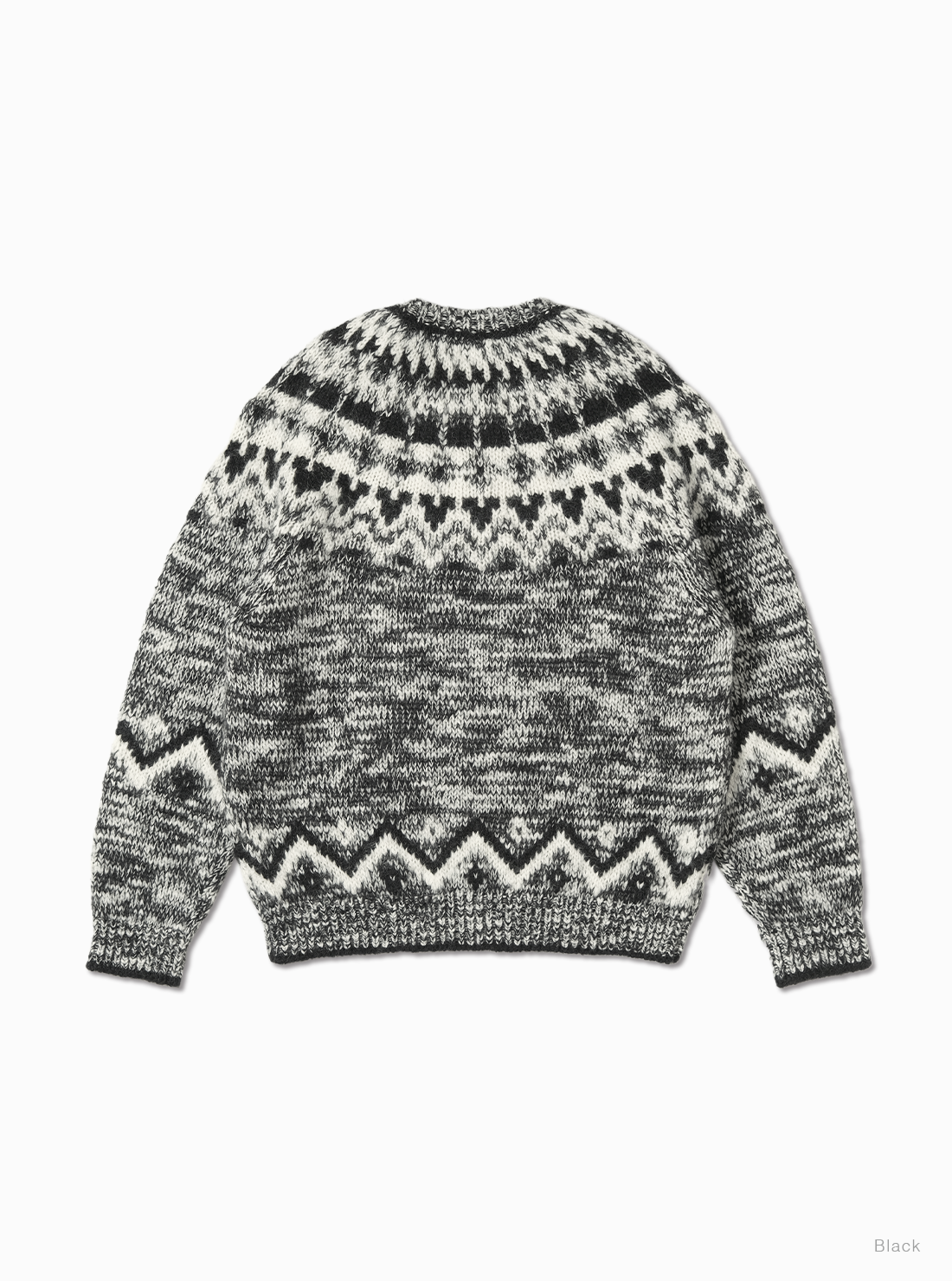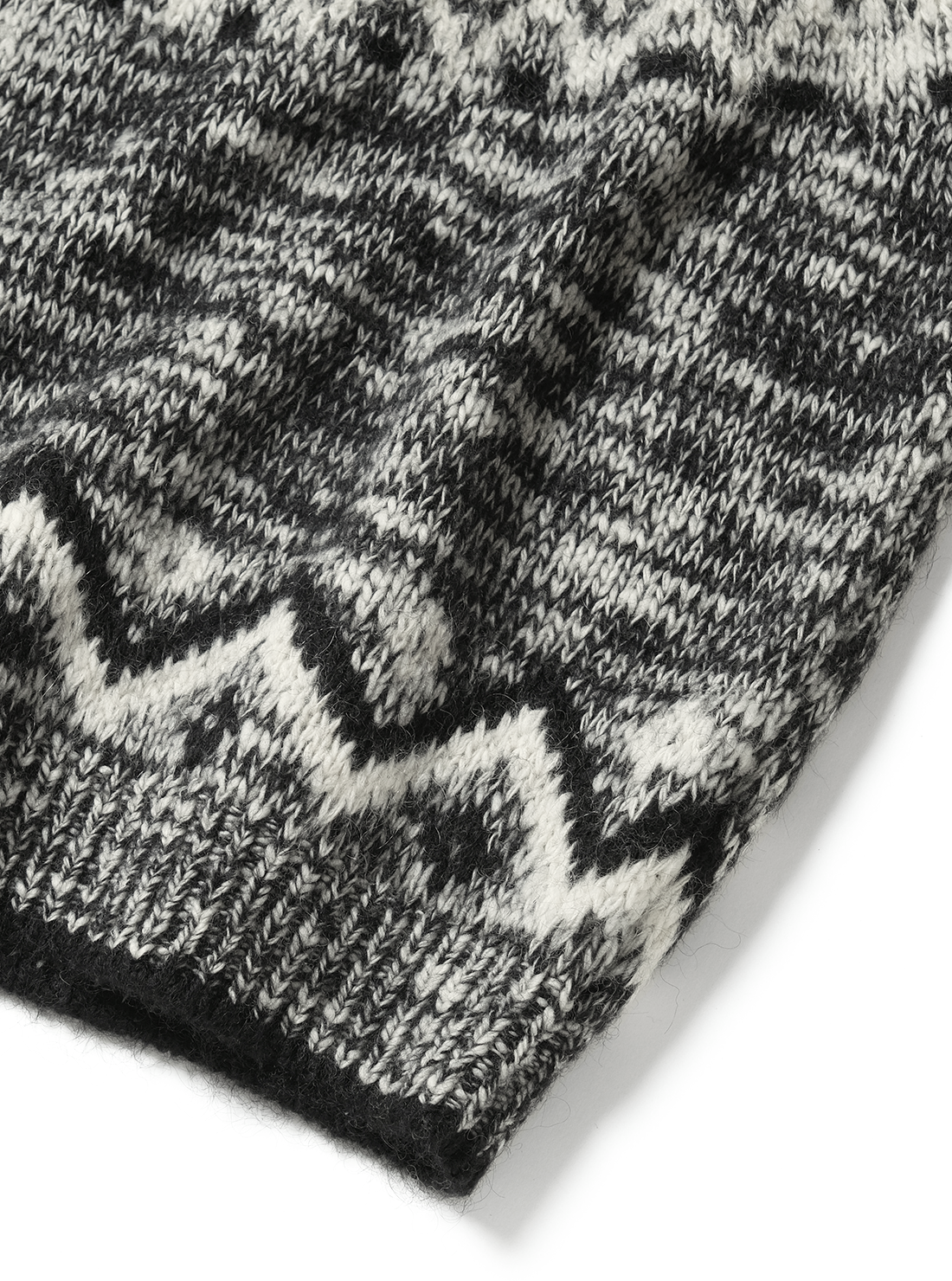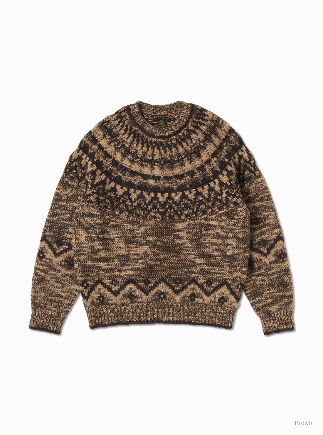 모헤어·알파카·울의 천연 섬유를 블렌드한 실에 굵은 슬럽얀 을 더해 편직한 니트입니다.