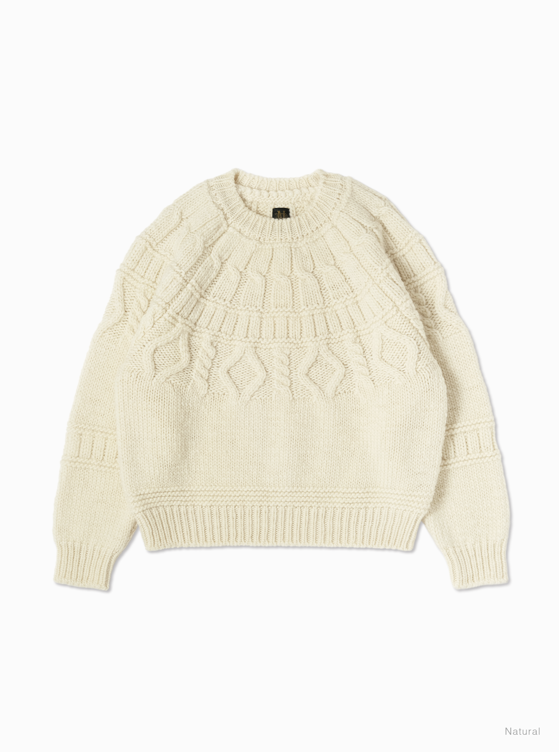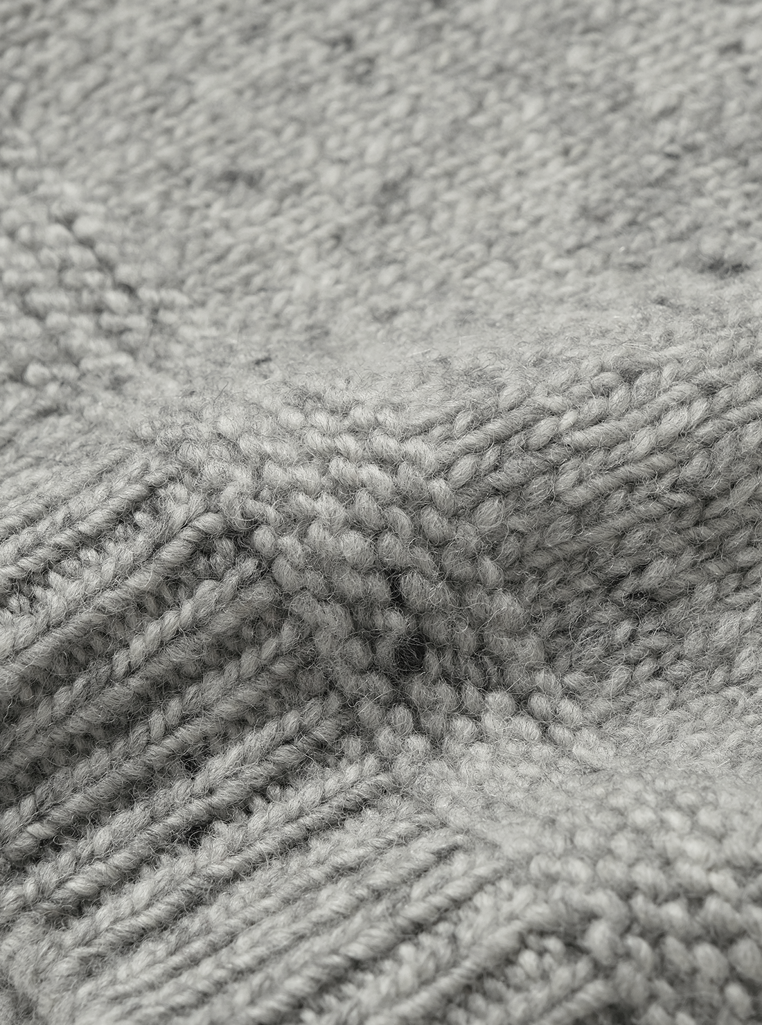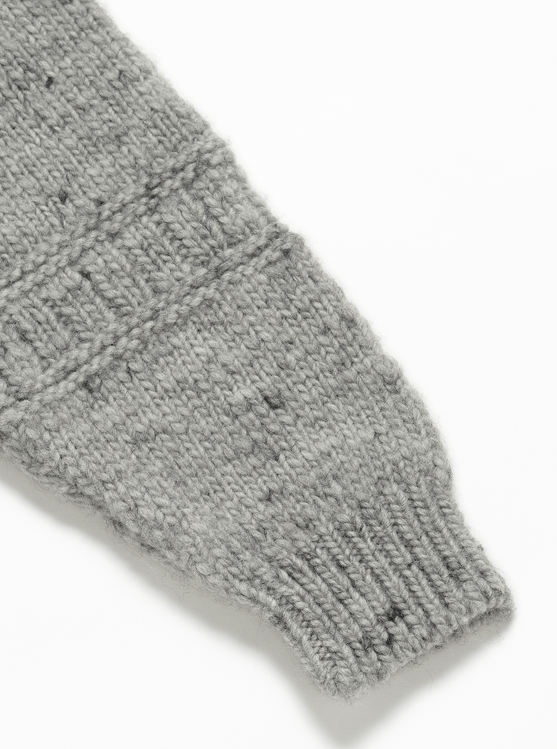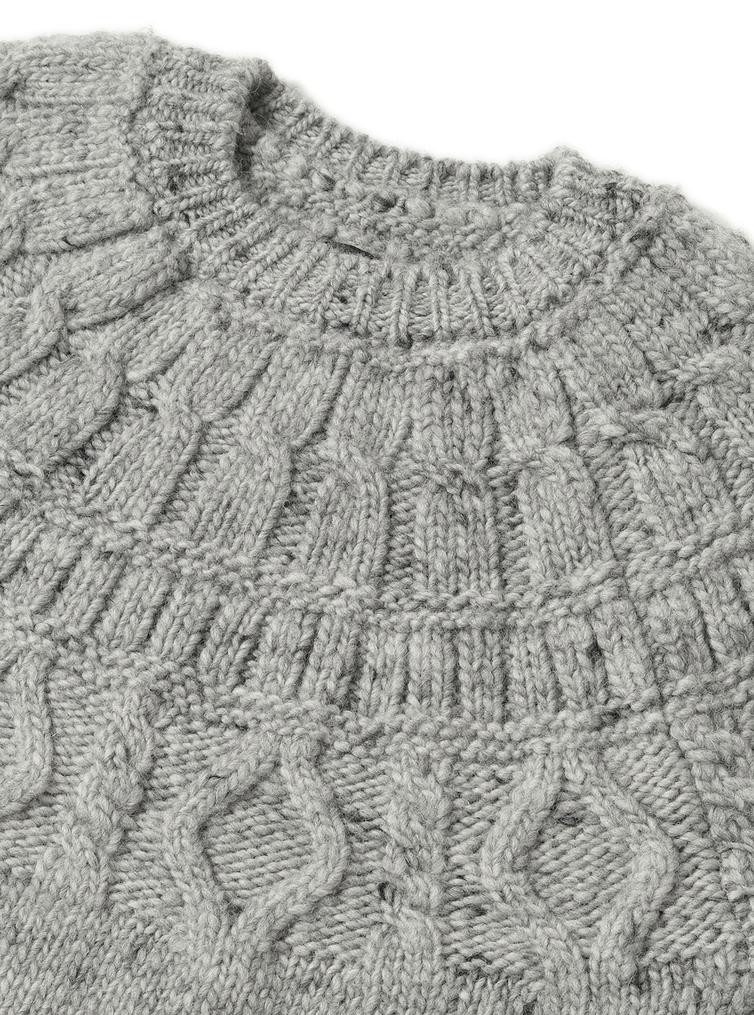 볼륨감이 풍부하면서도 셰틀랜드 울 특유의 거친 질감과 표면의 입체적인 요철감이 살아 있습니다.