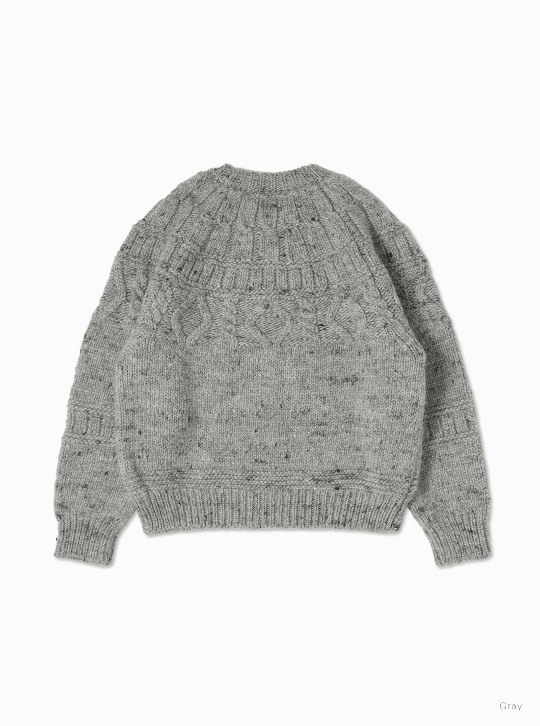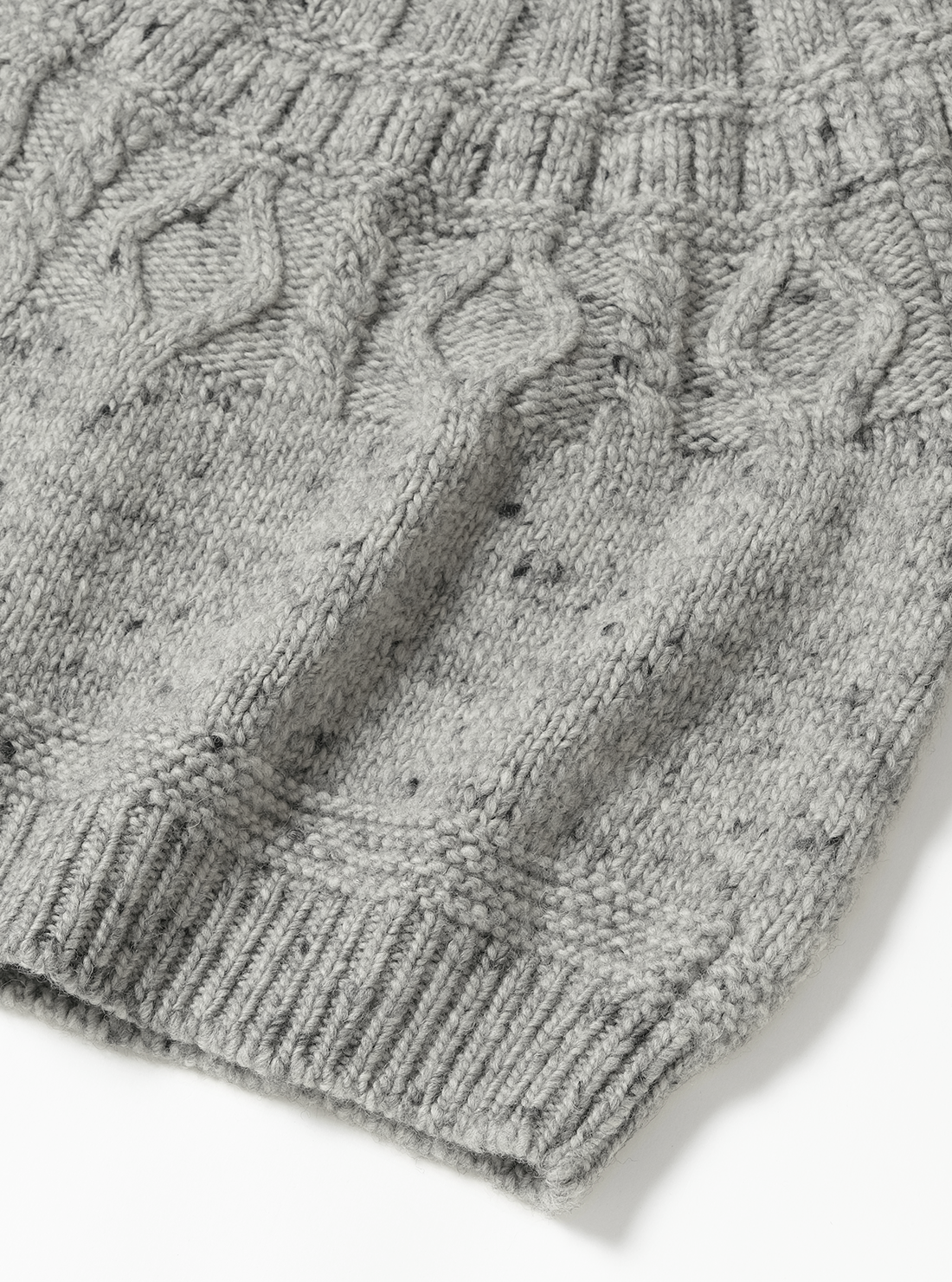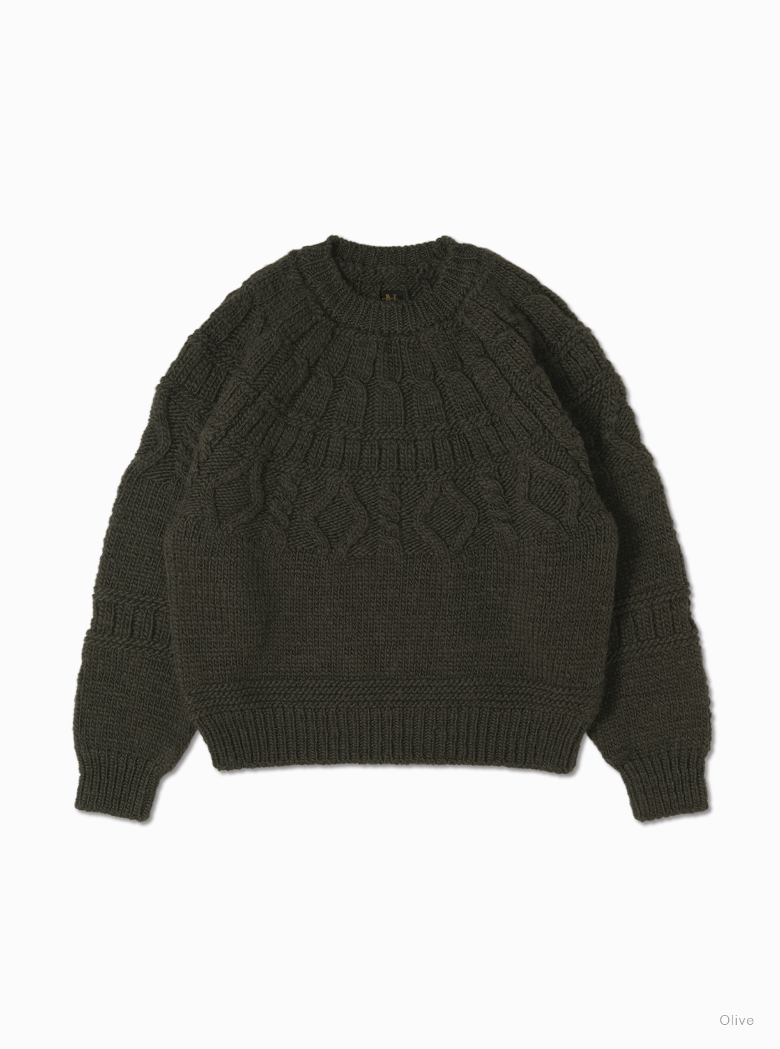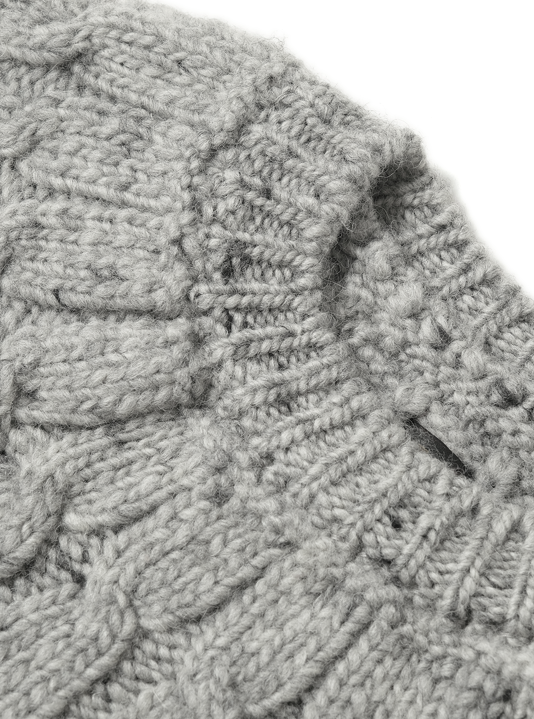 볼륨감이 풍부하면서도 셰틀랜드 울 특유의 거친 질감과 표면의 입체적인 요철감이 살아 있습니다.