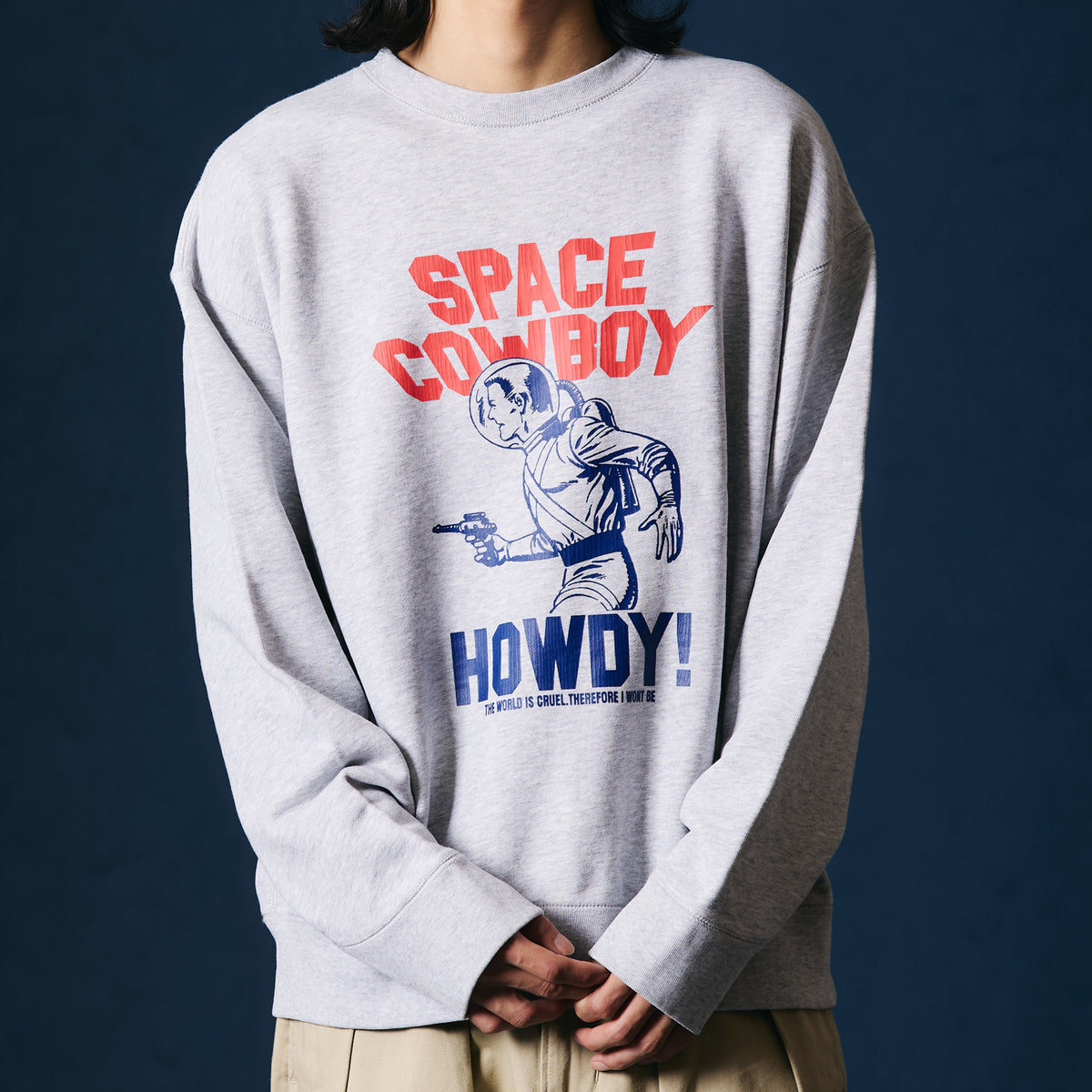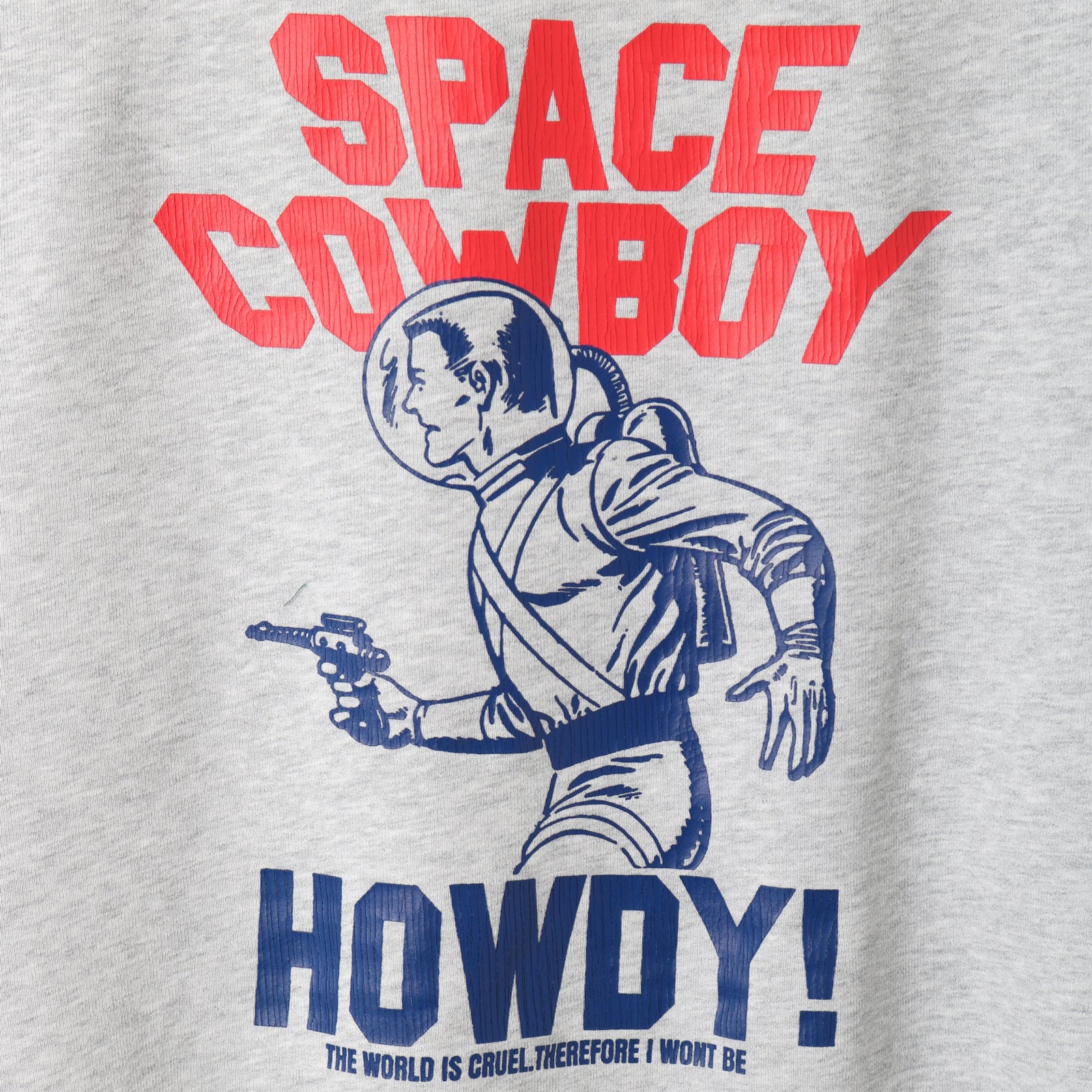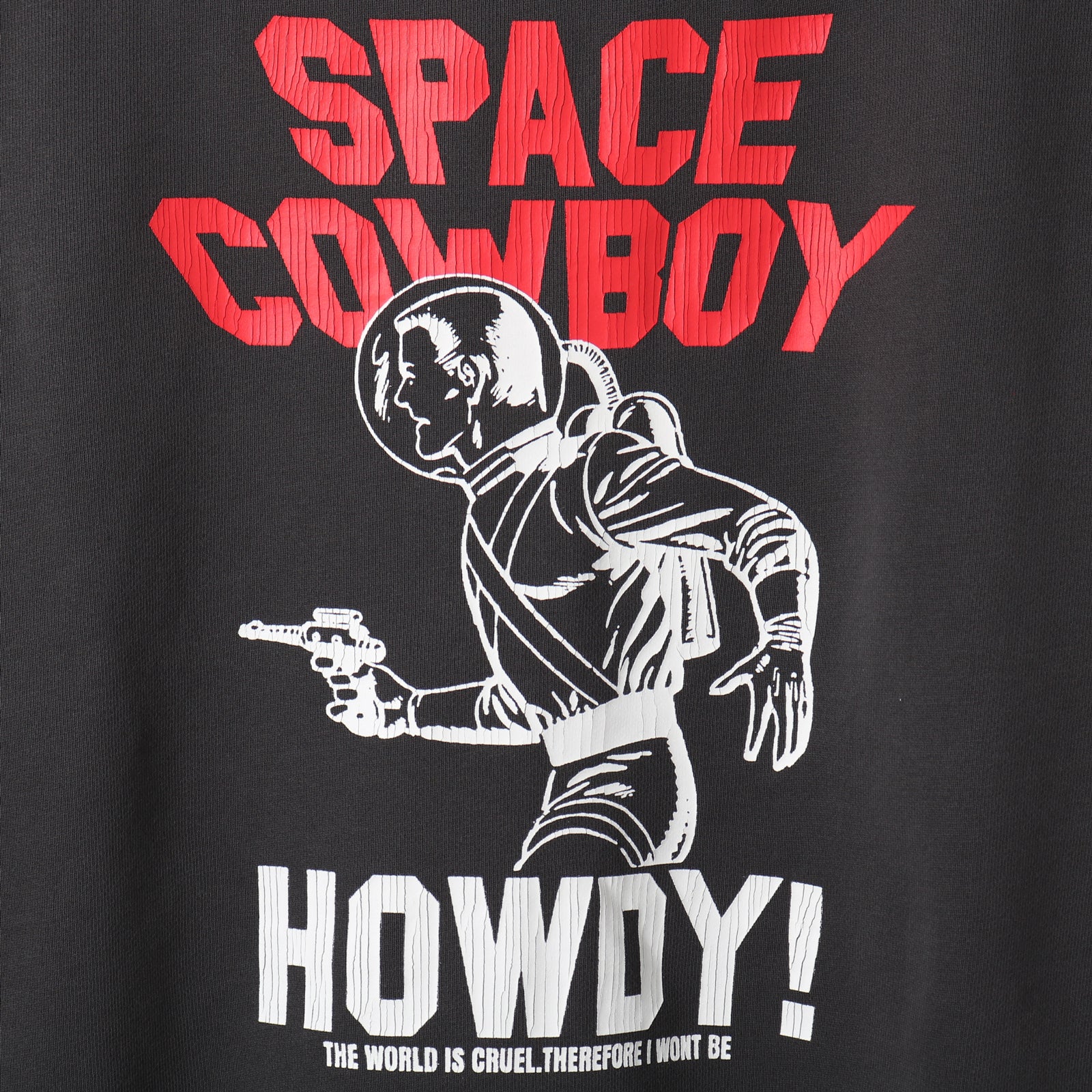 실루엣은 과하지 않게 여유를 준 릴랙스 핏으로 설계되어, 두꺼운 원단임에도 부담 없이 착용할 수 있도록 균형을 맞췄습니다. 프린트는 전면에만 배치되어 있으며, 1970~80년대 B급 SF 우주 영화를 연상시키는 그래픽을 크랙 프린트 기법으로 표현해 빈티지한 분위기를 강조했습니다.