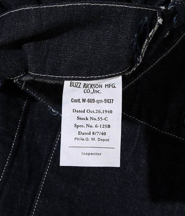 미 육군이 착용하던 블루 데님 원단의 워크코트.이전에 착용하던 것은 풀오버 스타일이었으나 탈착이 용이하도록 1940년 앞트임 스타일로 변경하였다.풀오버 타입과는 달리, 택인을 상정하지 않은 코트 스타일이 되었기 때문에, 가슴 포켓은 플랩이 달린 허리 포켓으로 이동하고 있다.