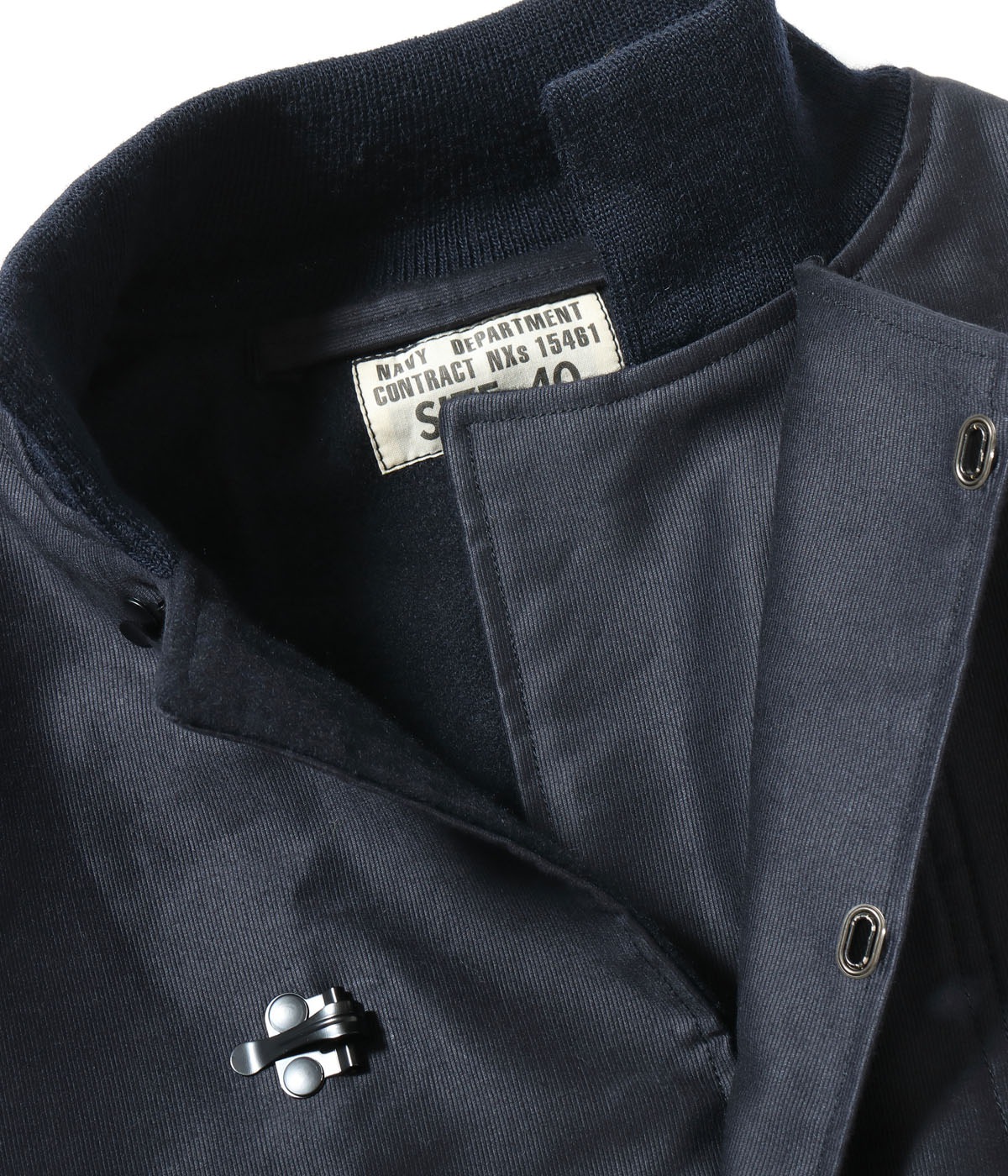 모선에 탑재 된 전투기의 출발을 지휘하는 장교와 병사들이 발사 간격을 조정하고 조종사에게 깃발로 지시를 내리는 것은 중요한 임무입니다. 모선의 갑판에서 강한 바람에 노출된 장교와 병사에게 갑판 재킷은 방풍, 방한 및 방풍 특성을 갖춘 신뢰할 수 있는 제품이었습니다. 후크 타입의 데크 재킷은 지퍼 타입의 뒤를 잇는 후기 모델입니다. 전면 윈드 플랩은 바람의 침입을 방지하는 이중 구조입니다.