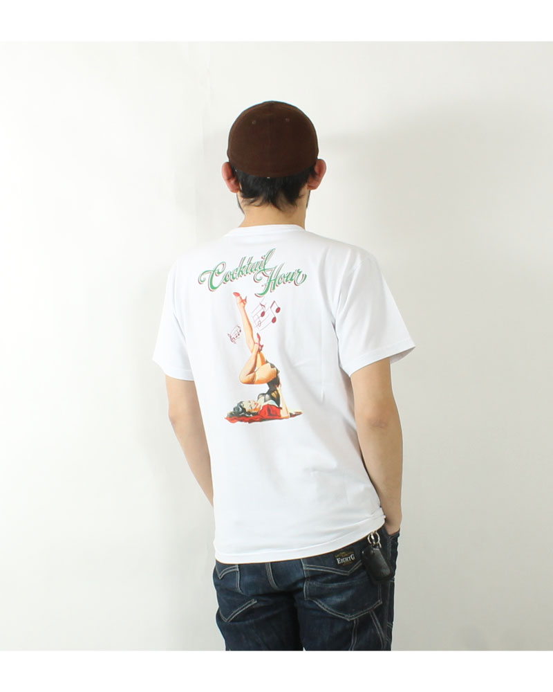 옆면에 이음새가 없는 라운드 바디의 프린트 티.