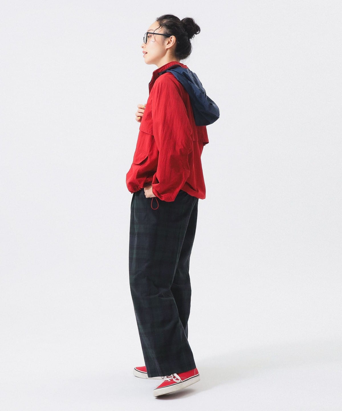 기장이 짧은 컴팩트한 길이감에 여유 있는 품이며 밑단에 스트링이 있어 핏 조절을 할 수 있습니다.