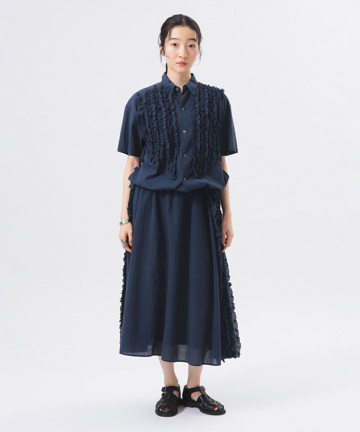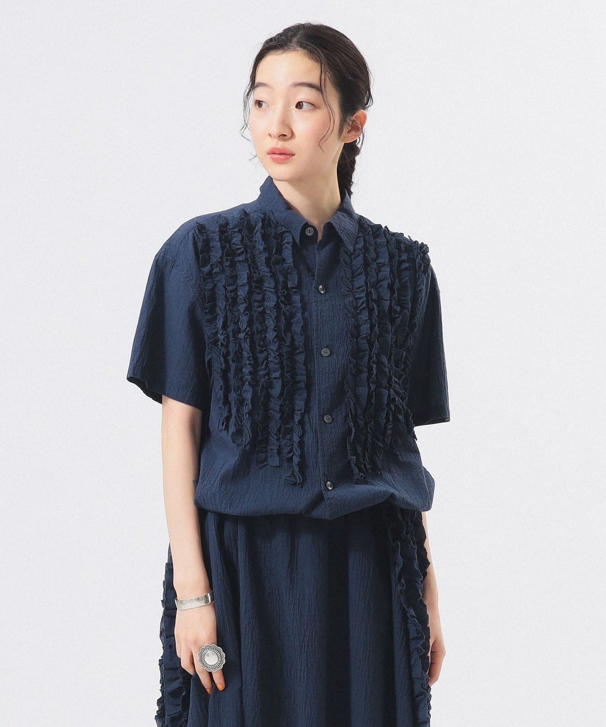 베이직한 레귤러 카라 셔츠 디자인을 바탕으로, 여성스러움을 살려주는 프릴 디테일을 아낌없이 더한 디자인이 특징입니다. 베이직한 레귤러 카라 셔츠 디자인을 바탕으로, 여성스러움을 살려주는 프릴 디테일을 아낌없이 더한 디자인이 특징입니다.