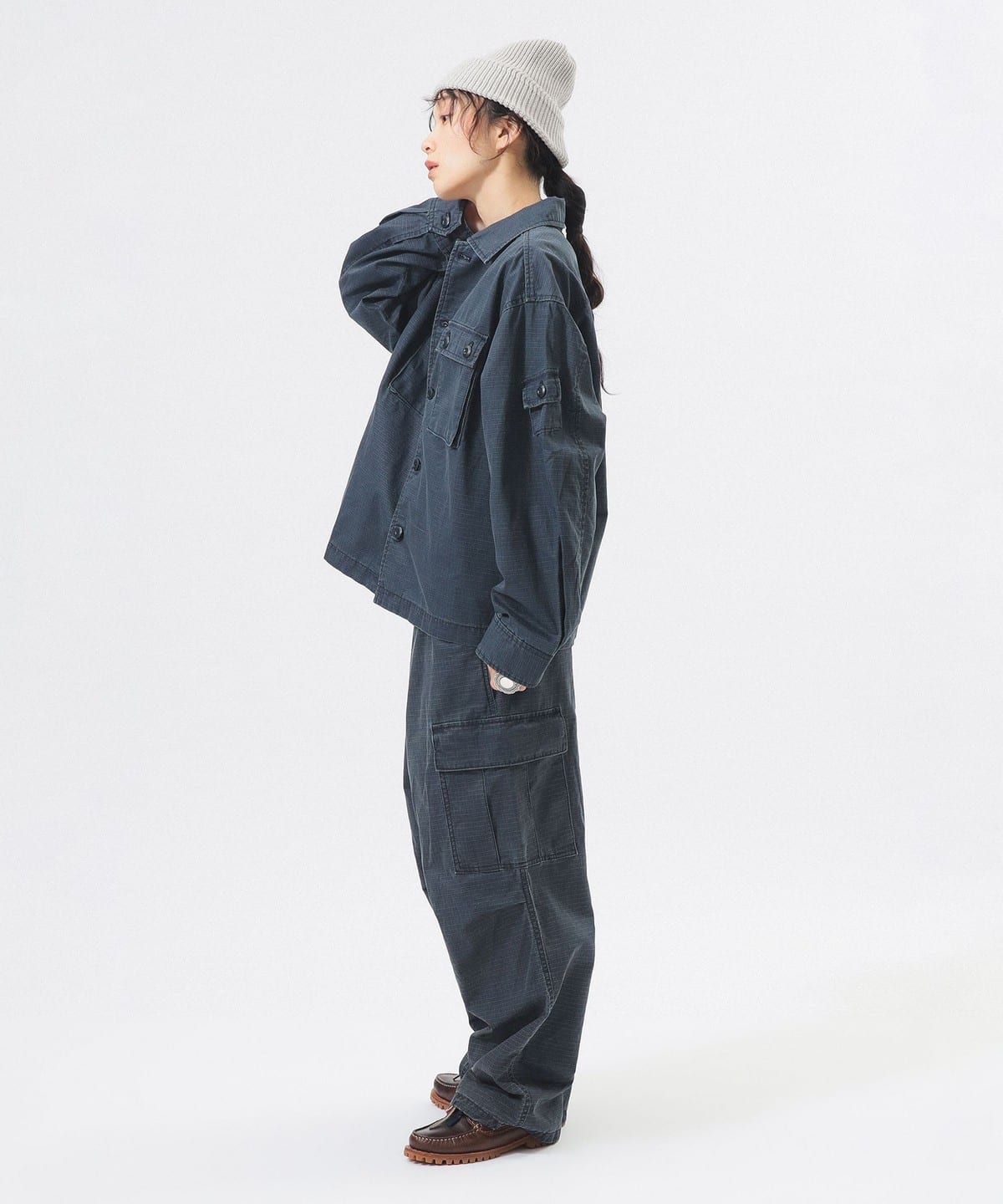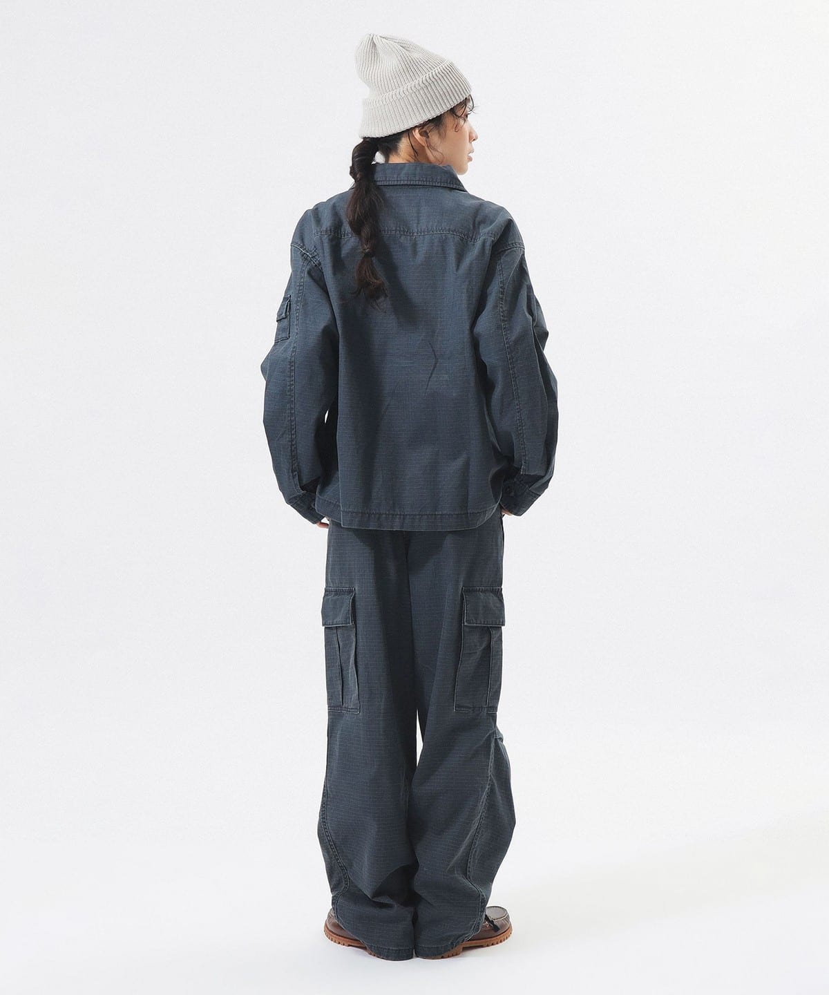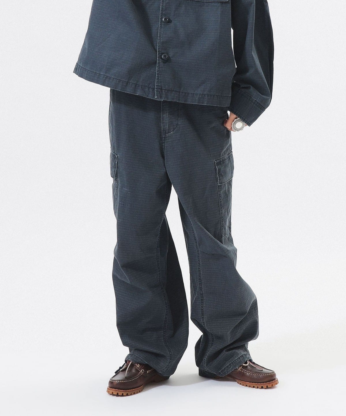 미군 카고팬츠를 기반으로 제작된 모델로, 기본 디테일은 유지하면서 전체적으로 여유 있는 와이드 실루엣으로 재구성된 제품입니다. 빈티지 카고 특유의 색 바램과 사용감은 실제 가공을 통해 자연스럽게 표현했습니다. 전체적으로 넉넉한 와이드 핏으로 편안한 착용감을 제공합니다.