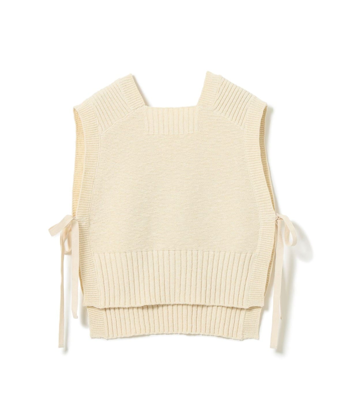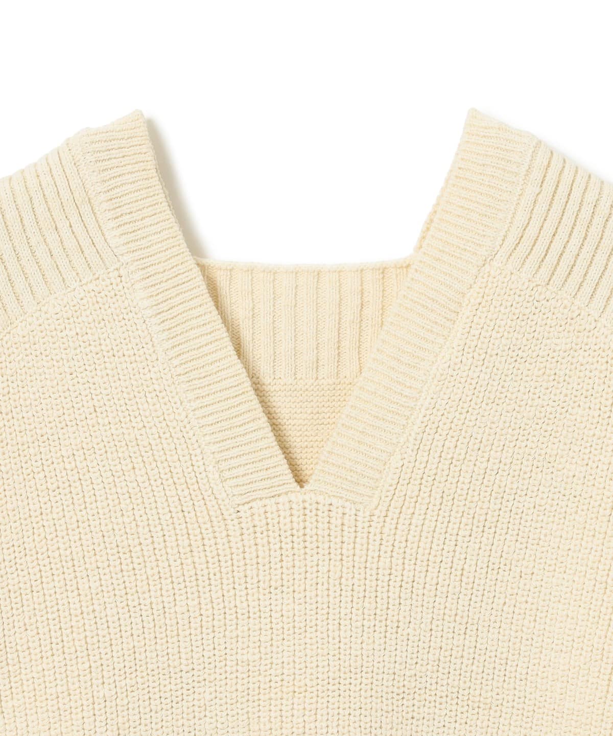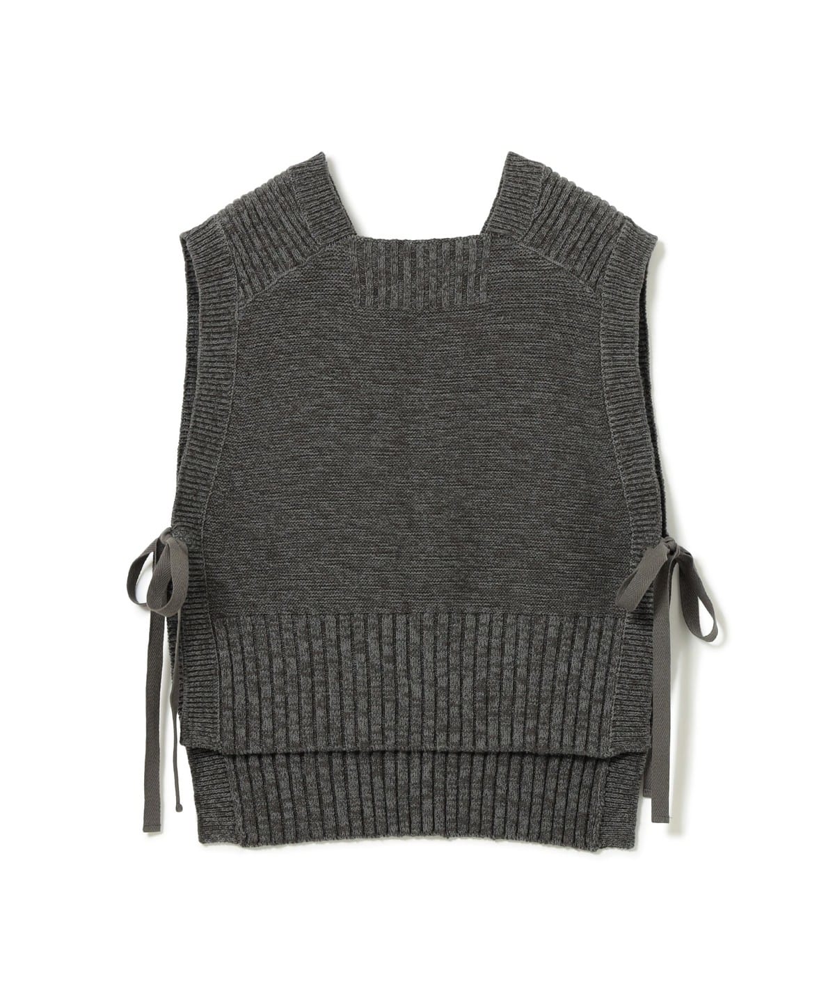 앞뒤에 따라 분위기가 달라지는 리버서블 디자인의 니트 조끼입니다. 한쪽 면은 스퀘어 넥, 다른 한쪽 면은 깊은 V넥으로 구성된 2WAY 사양입니다.