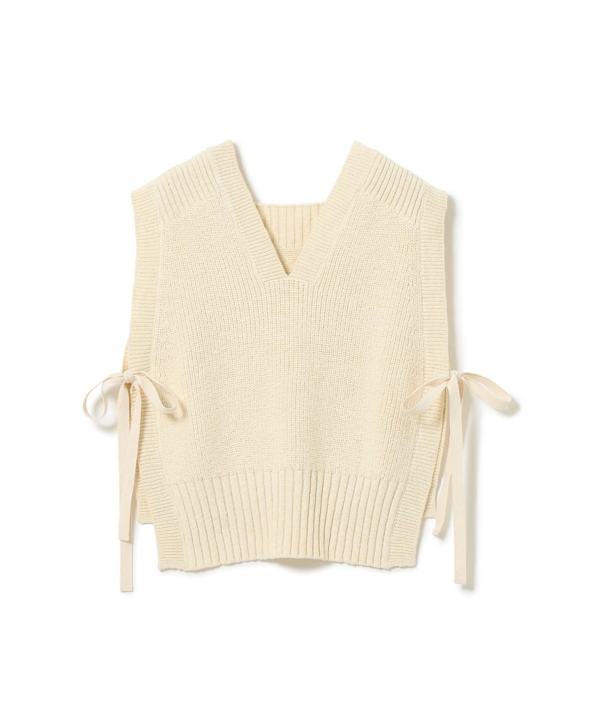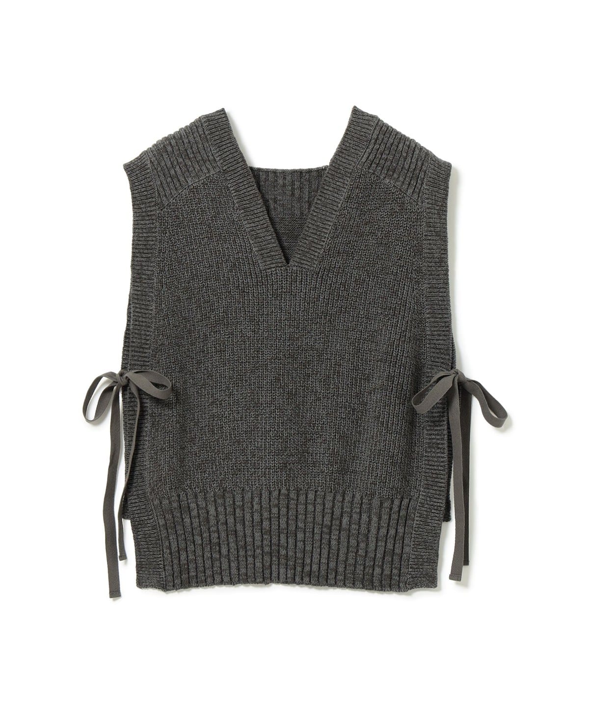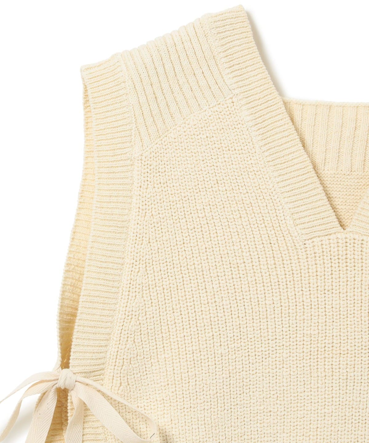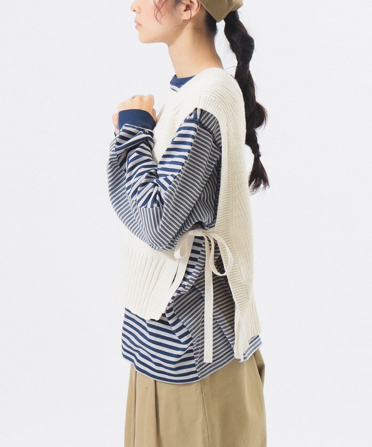 앞뒤에 따라 분위기가 달라지는 리버서블 디자인의 니트 조끼입니다. 한쪽 면은 스퀘어 넥, 다른 한쪽 면은 깊은 V넥으로 구성된 2WAY 사양입니다.