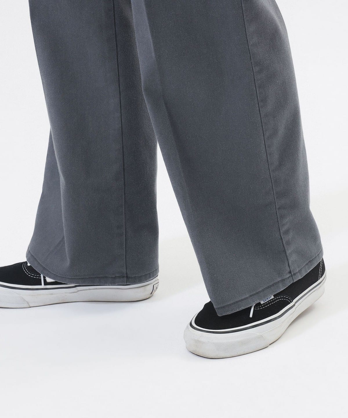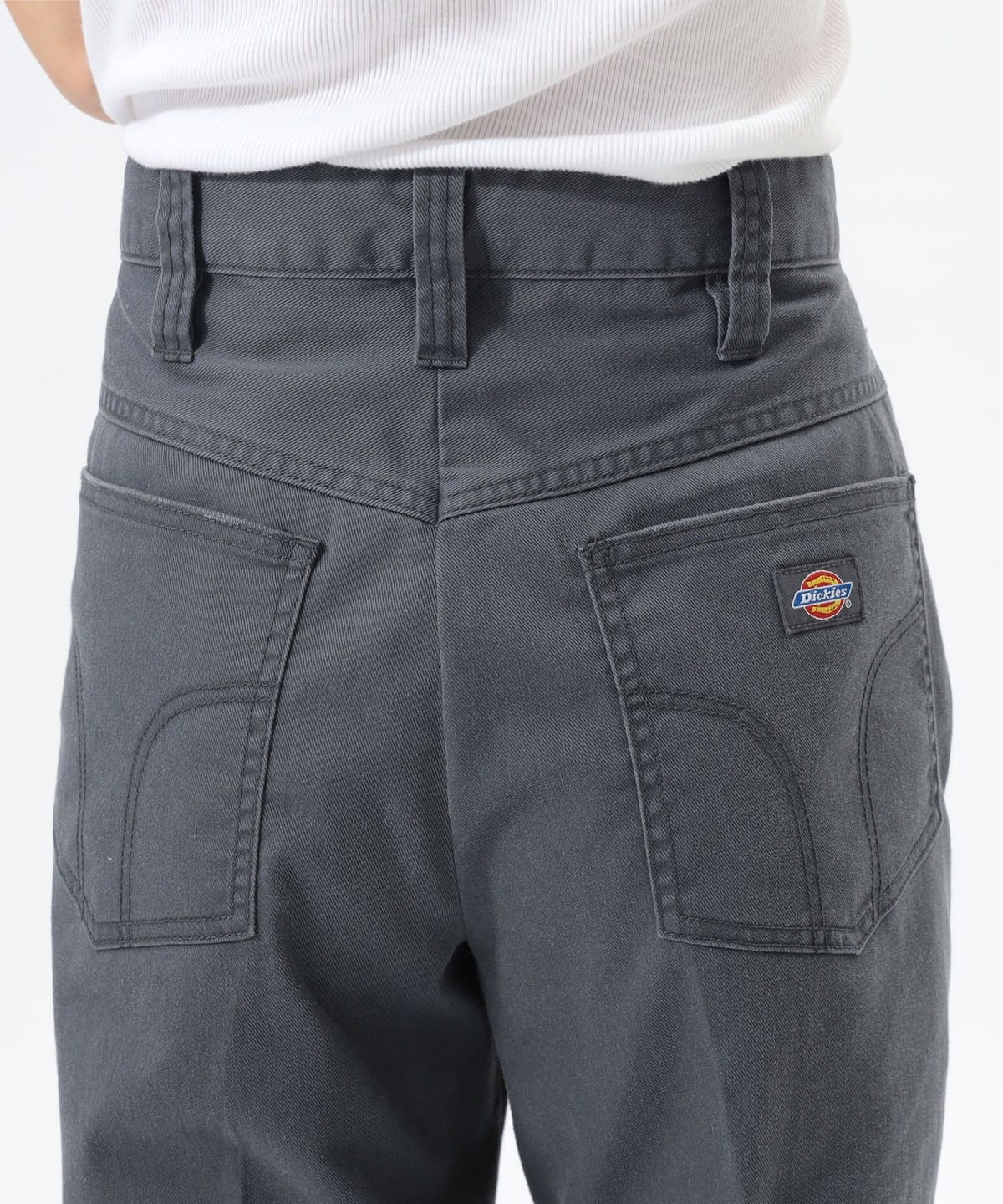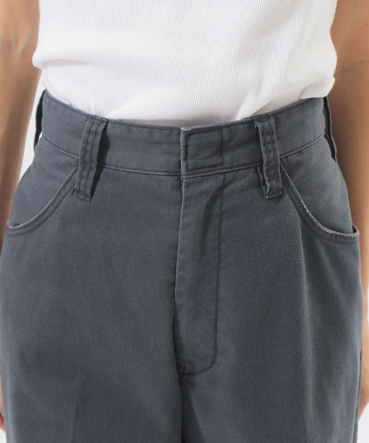 밑단으로 갈수록 부드럽게 퍼지는 실루엣으로 다리가 길어 보이는 팬츠. 디키즈 874 모델에서 볼 수 있는 프론트 훅을 적용했으며, 80년대 감성의 실버 지퍼가 포인트입니다. 원단 전체에 강한 워싱과 USED 가공을 적용해, 새 제품이지만 실제 빈티지처럼 보이는 풍부한 텍스처가 특징입니다.