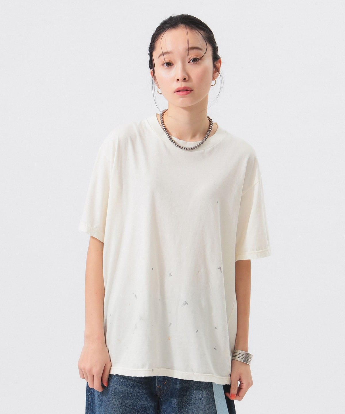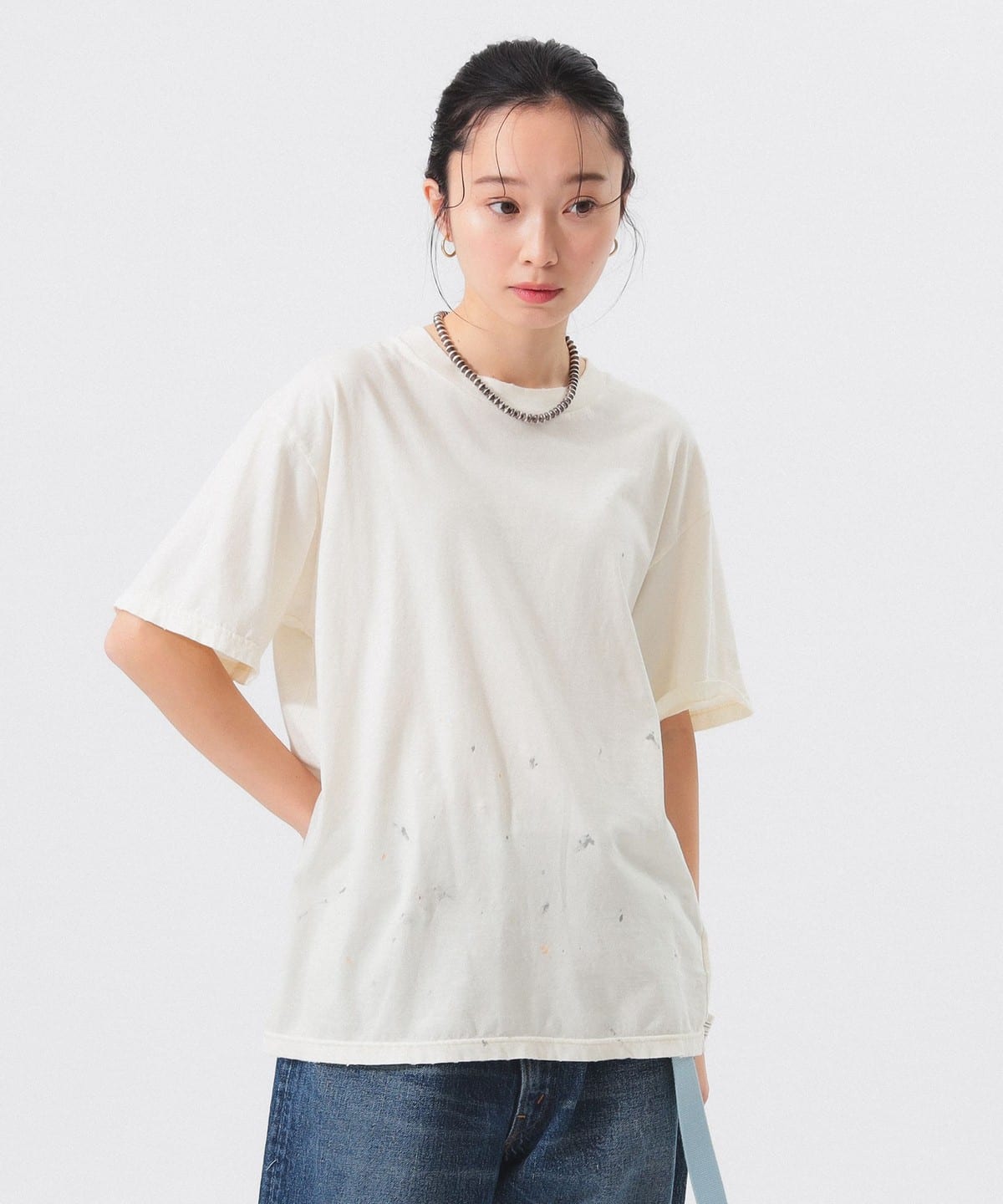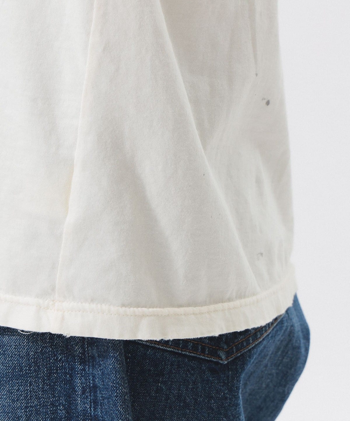 자연스러운 빈티지 워싱 가공이 특징이며, 소매와 넥라인의 데미지 디테일, 몸판의 페인트 자국 등은 모두 수작업으로 더해져 있어, 한 장 한 장 개성이 살아 있습니다. 품과 어깨 너비 모두 여유로운 실루엣입니다.