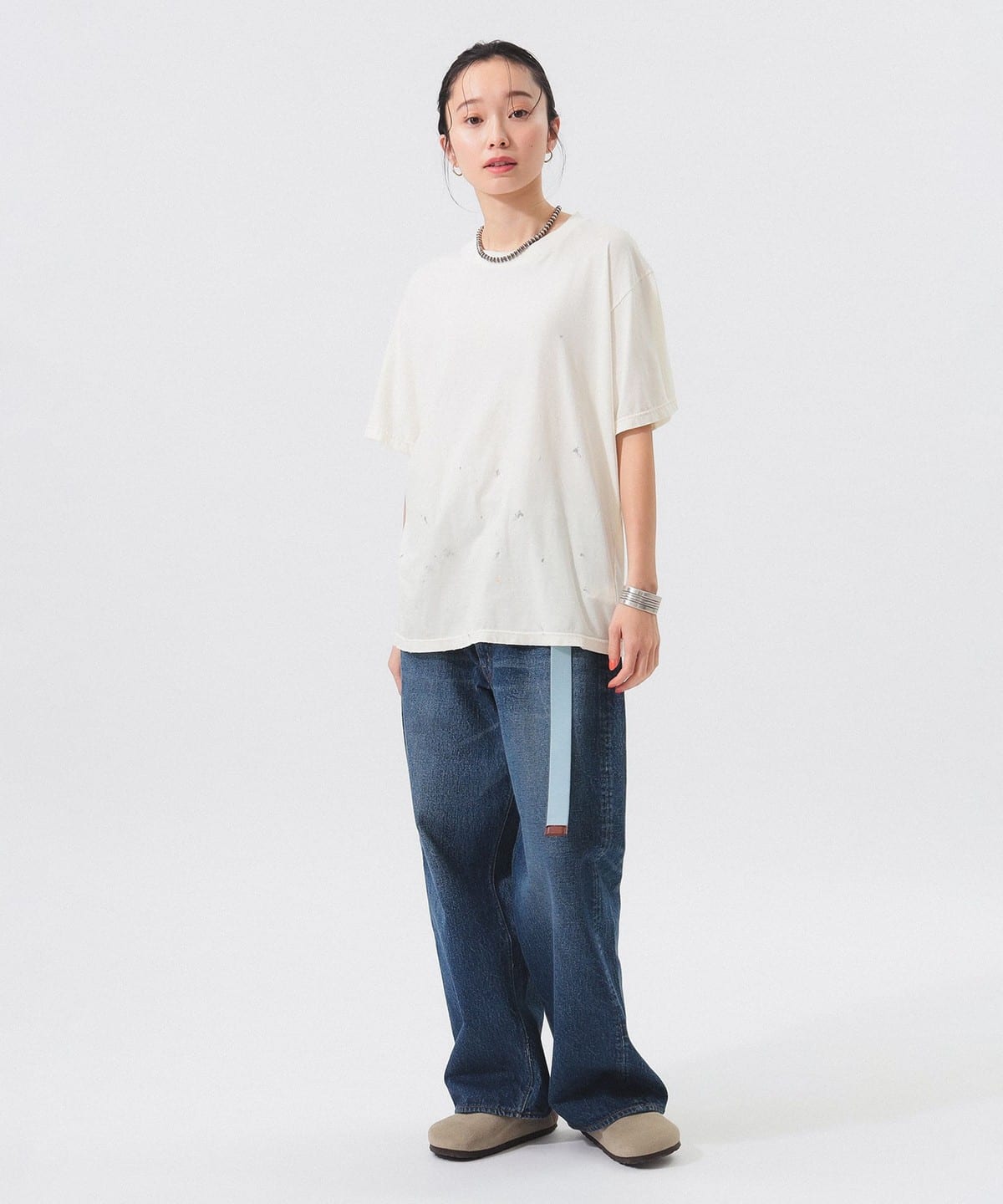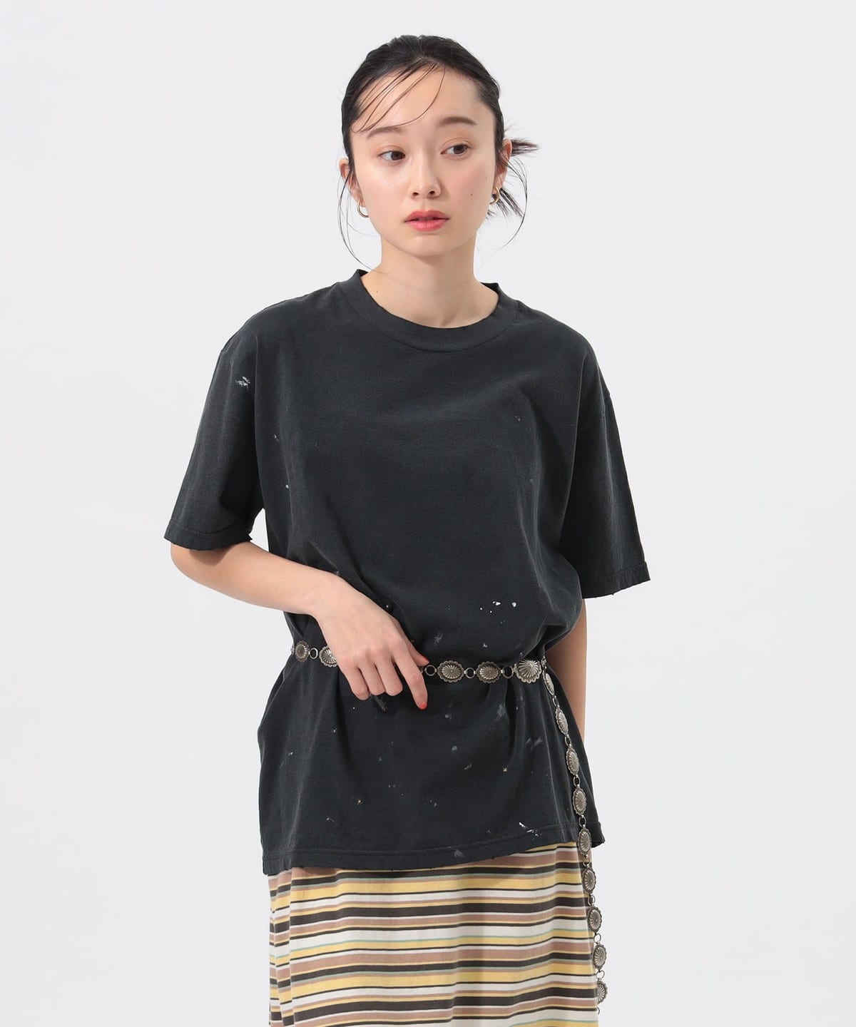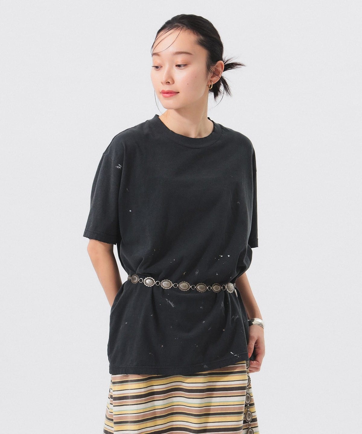 자연스러운 빈티지 워싱 가공이 특징이며, 소매와 넥라인의 데미지 디테일, 몸판의 페인트 자국 등은 모두 수작업으로 더해져 있어, 한 장 한 장 개성이 살아 있습니다. 품과 어깨 너비 모두 여유로운 실루엣입니다.
