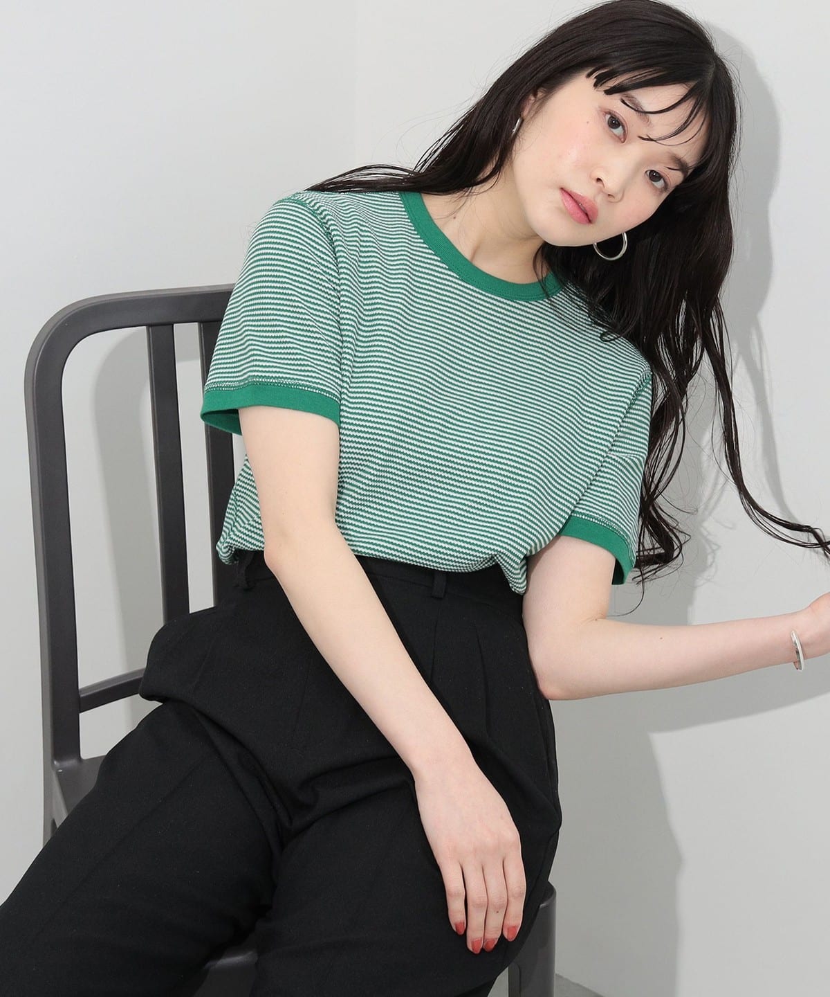 빔즈 하트 와플 보더 반팔 티 여성 스트라이프 43-04-0007-138 일본 빈티지 패션 SPA 편집샵 직구