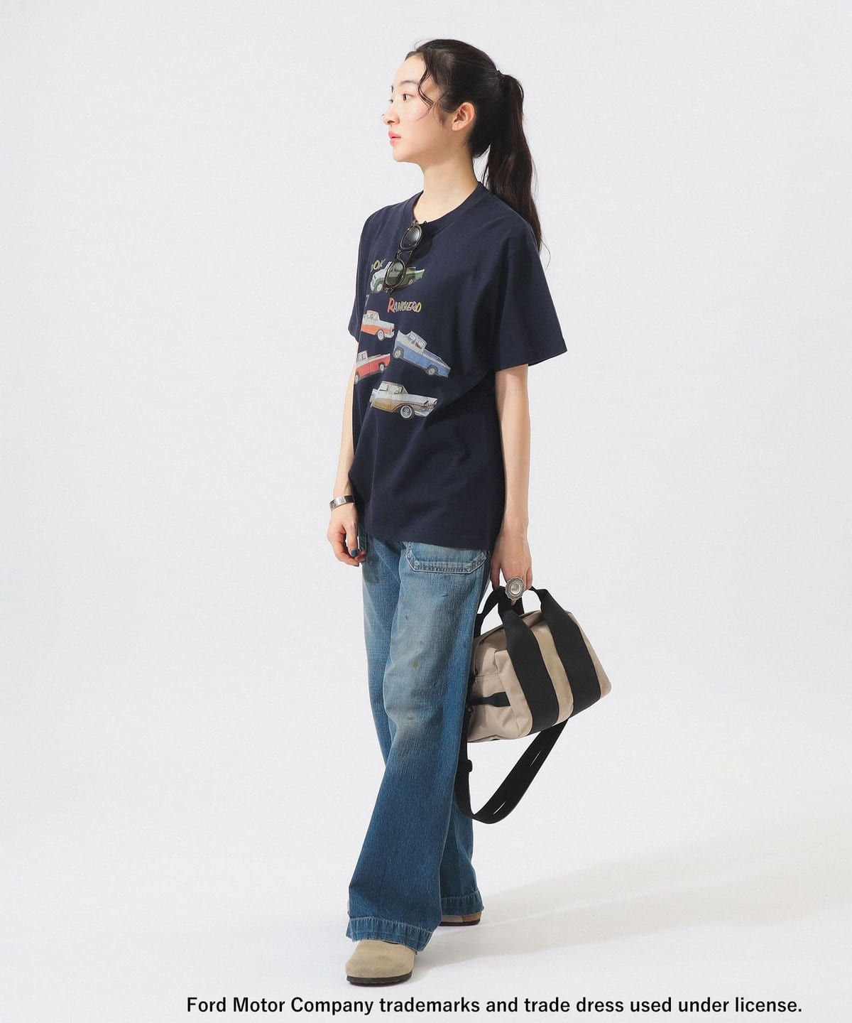 미국을 대표하는 브랜드 포드의 다양한 차량을 나란히 배치한 그래픽 디자인의 반팔 티 입니다. 컬러에 따라 서로 다른 가공을 적용해 빈티지한 표정을 살렸습니다.