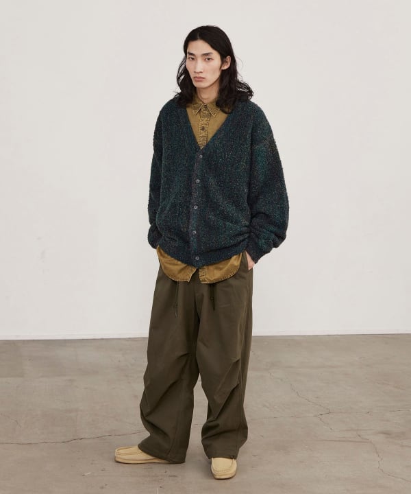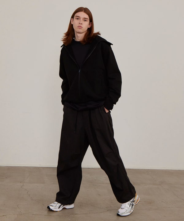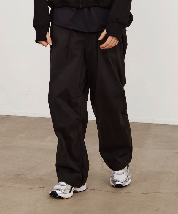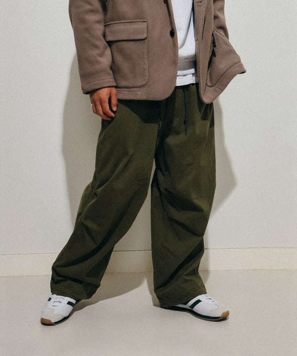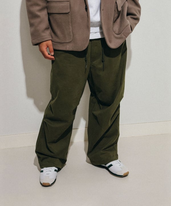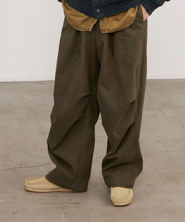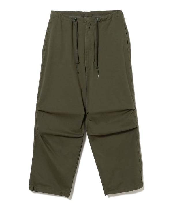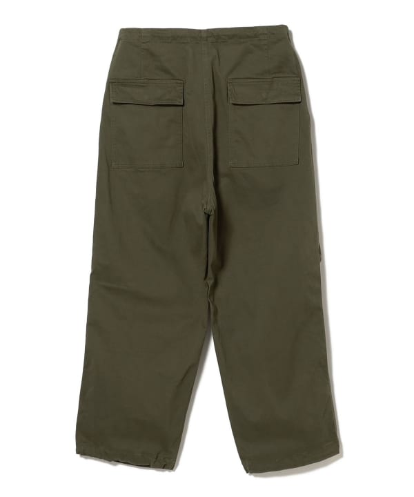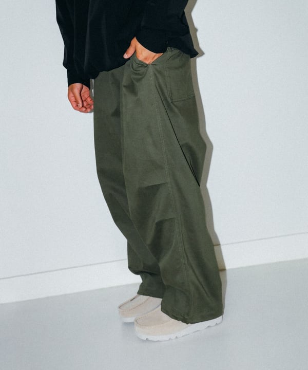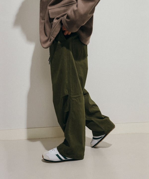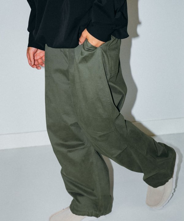 빈티지 밀리터리 오버 팬츠를 베이스로 백 포켓 2개, 밑단 러버 스핀들로 실루엣을 변경할 수 있습니다.