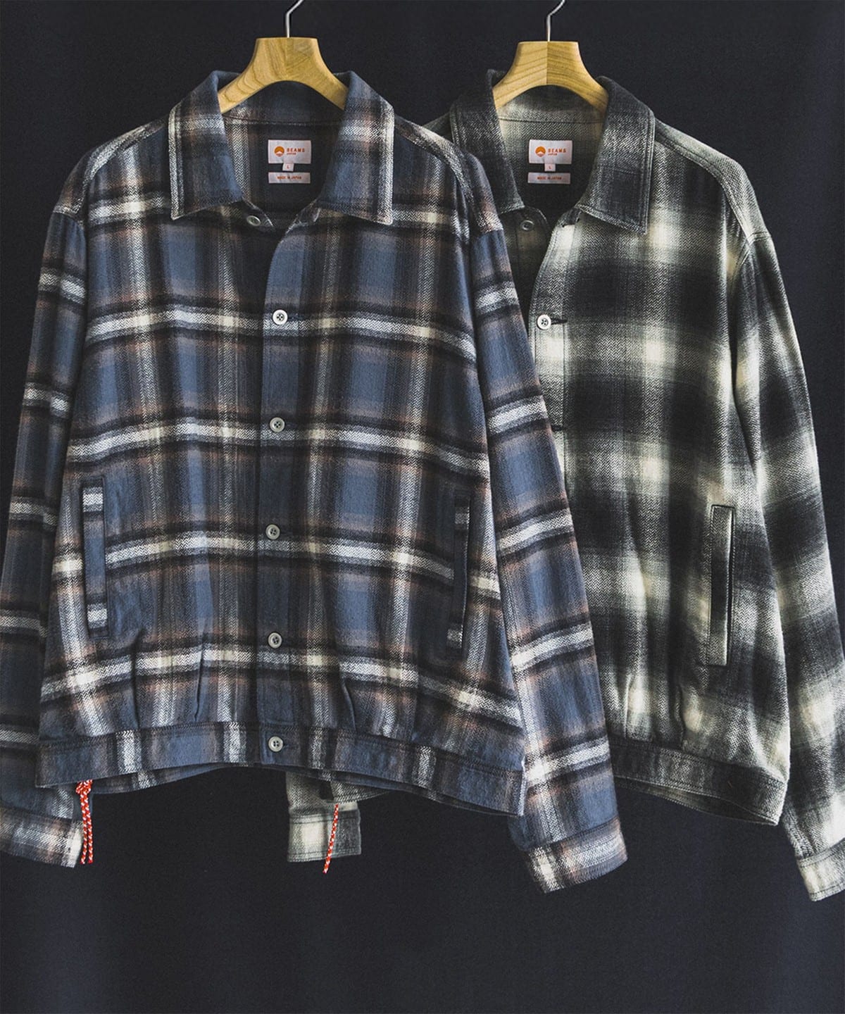 G-JACKET을 기반으로, 옴브레 체크 패턴을 적용한 블루종입니다. 짧은 기장감과 박시한 실루엣이 특징인 아이템입니다.