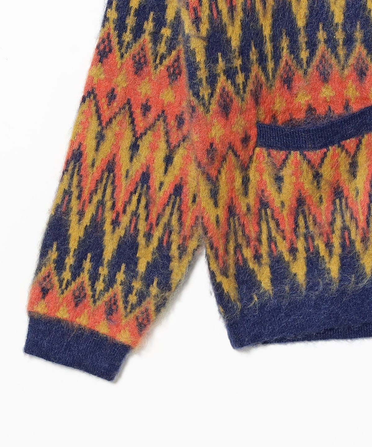 에스닉 무드가 살아있는 셰브론 패턴이 특징적인 카디건입니다. 지난 시즌 인기를 이어가며, 이번 시즌에는 더 선명하고 대비감 있는 비비드 컬러 조합으로 업그레이드된 디자인입니다.
