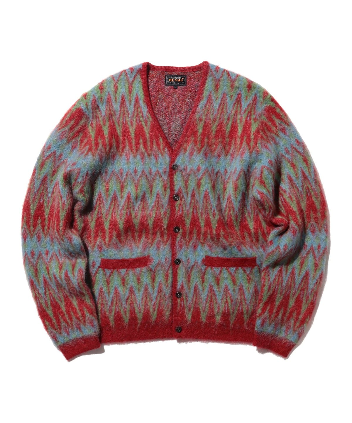 빔즈 플러스 더블 자카드 셰브론 패턴 니트 가디건