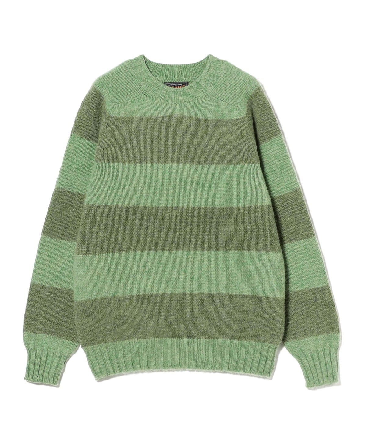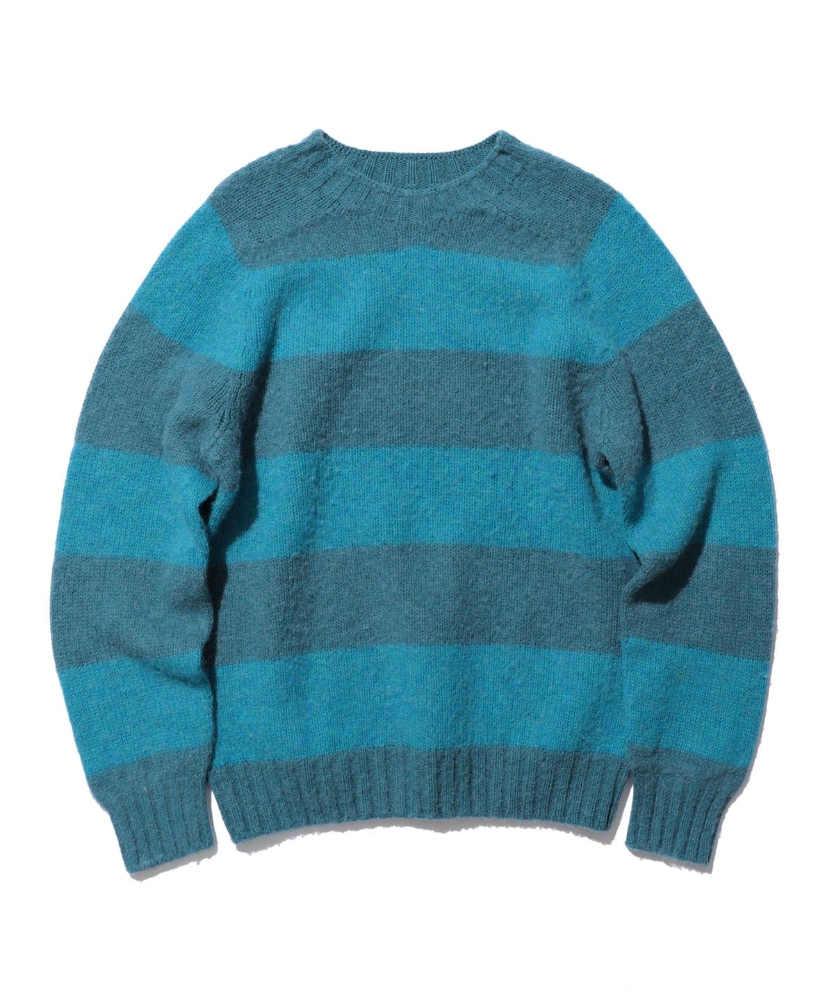 폭 4인치의 넓은 가로 스트라이프를 사용한 크루넥 니트입니다. 붉은 벽돌, 하늘, 나무 등 자연에서 착안한 컬러 조합이 특징입니다. 모든 니트 제작 공정을 한 공장에서 처리하는 스코틀랜드 생산 방식으로 제작되었습니다. 셰틀랜드 울을 사용하여 4겹으로 짠 원사 구조로, 도톰한 밀도감과 부드러운 터치감이 특징입니다. 몸폭과 어깨가 살짝 여유 있는 패턴으로 레이어드 하기 좋습니다.