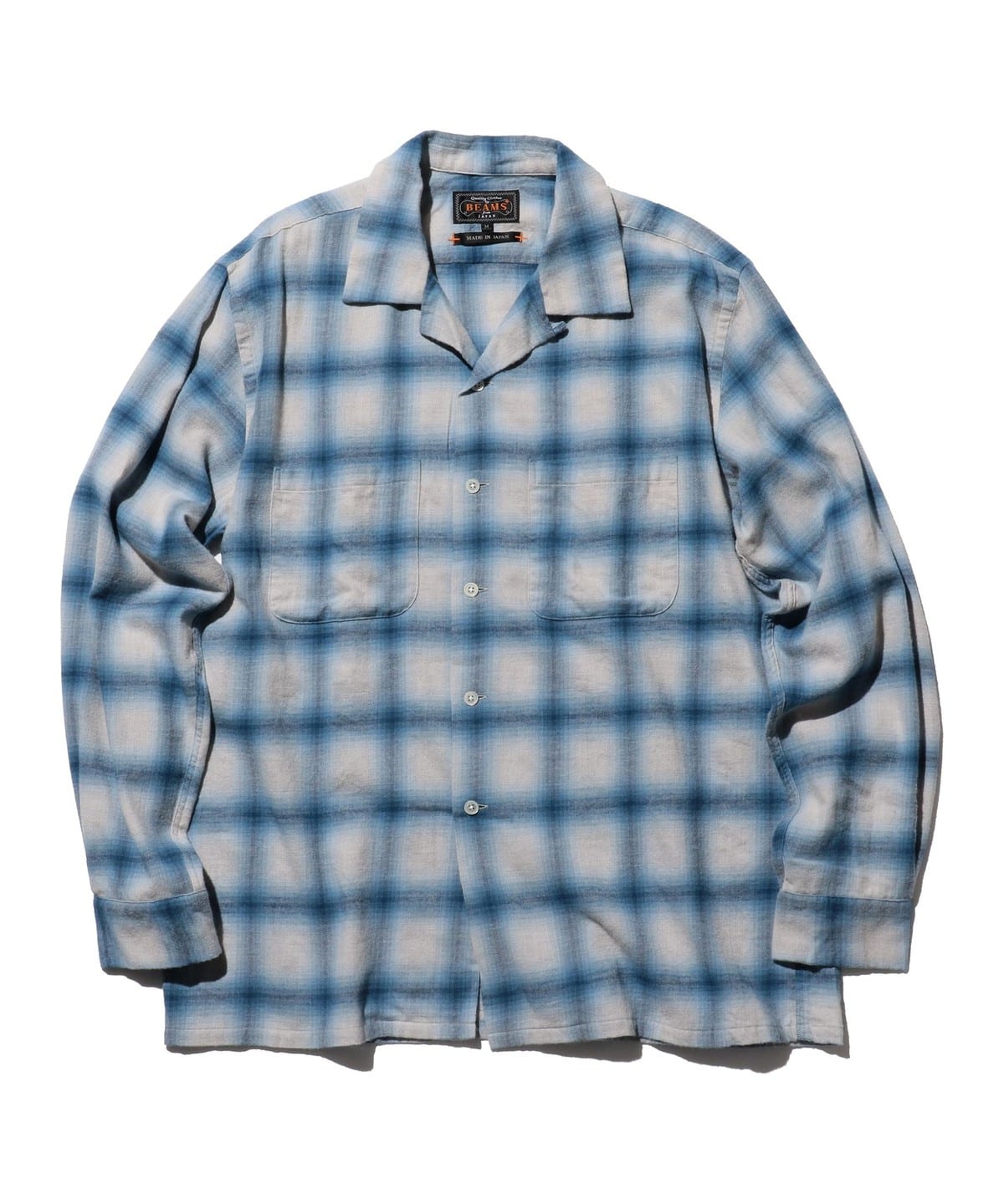 빔즈 플러스 오픈 칼라 옴브레 체크 셔츠