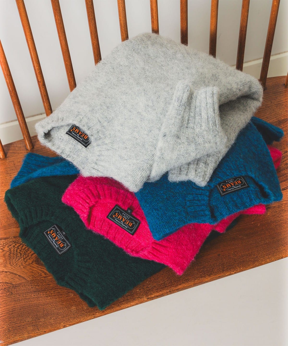 스코틀랜드 셰틀랜드 섬의 노포 니트 공장에서 생산되는 클래식 셰틀랜드 니트입니다. 독특한 질감과 풍부한 컬러 바리에이션이 특징입니다.