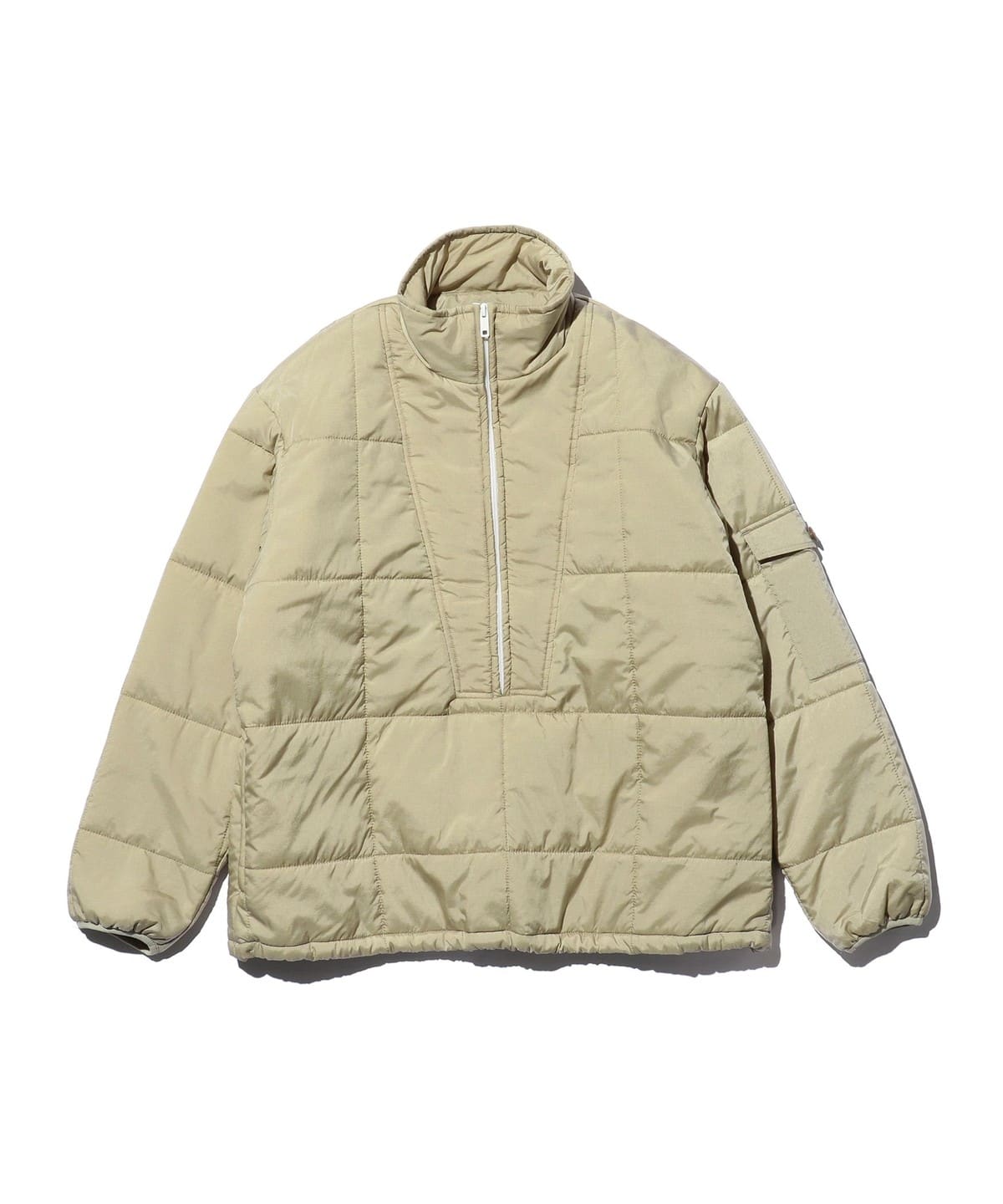 1970년대 빈티지 모델을 기반으로 한 BEAMS PLUS 퍼피 재킷 입니다. 전체적으로 들어간 퀼팅 스티치와 몸판 중앙까지 내려오는 하프 지퍼 디자인이 핵심 포인트입니다. 오리지널 모델보다 지퍼 길이를 더 길게 설정해 착탈이 훨씬 편해졌고, 오른쪽 소매에는 작은 소지품을 넣을 수 있는 툴 포켓이 있습니다.