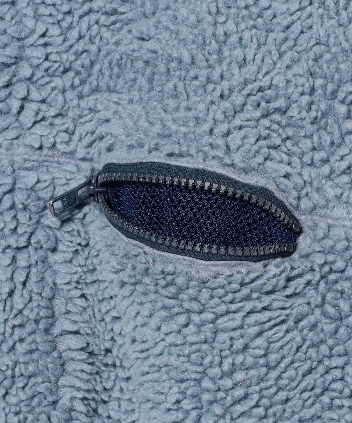 합성섬유 플리스 소재에 자연스럽게 오래 입은 듯한 페이드감을 표현한 〈REMI RELIEF〉의 보아 플리스 재킷입니다. 안감에는 클래식한 플리스를 연상시키는 부드러운 전체 메쉬 원단을 사용했습니다.