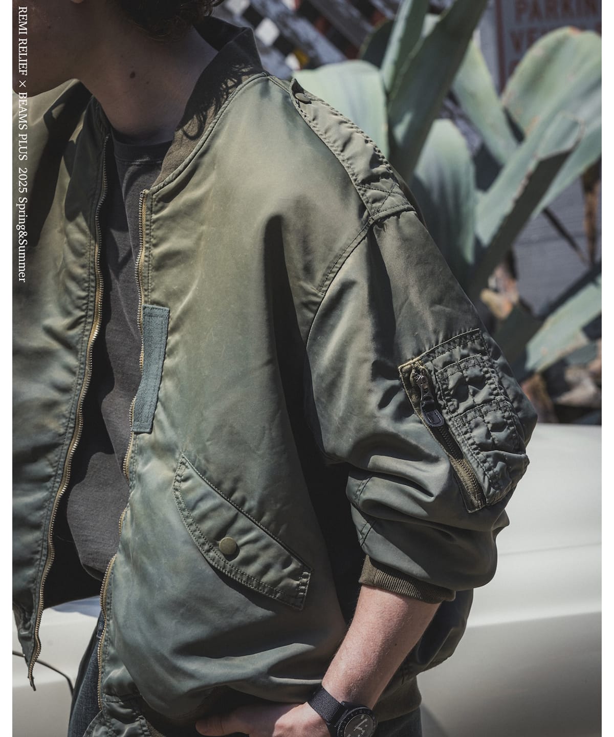대표적인 밀리터리 블루종 모델인 L-2B 타입을 REMI RELIEF 특유의 감성으로 재해석한 플라이트 재킷입니다. 짧은 기장과 넉넉한 품이며 골지 쇄와 광택가 밍ㅆ는 새틴 안감으로 밀리터리 분위기를 완성했습니다.