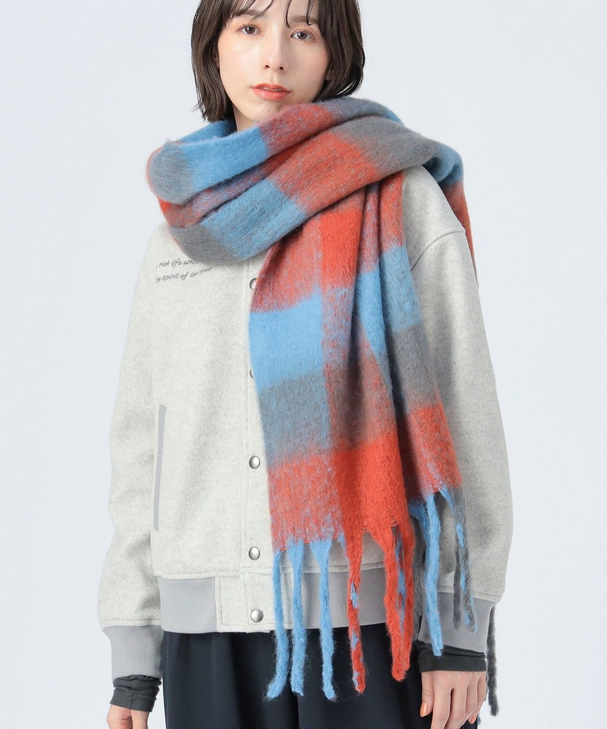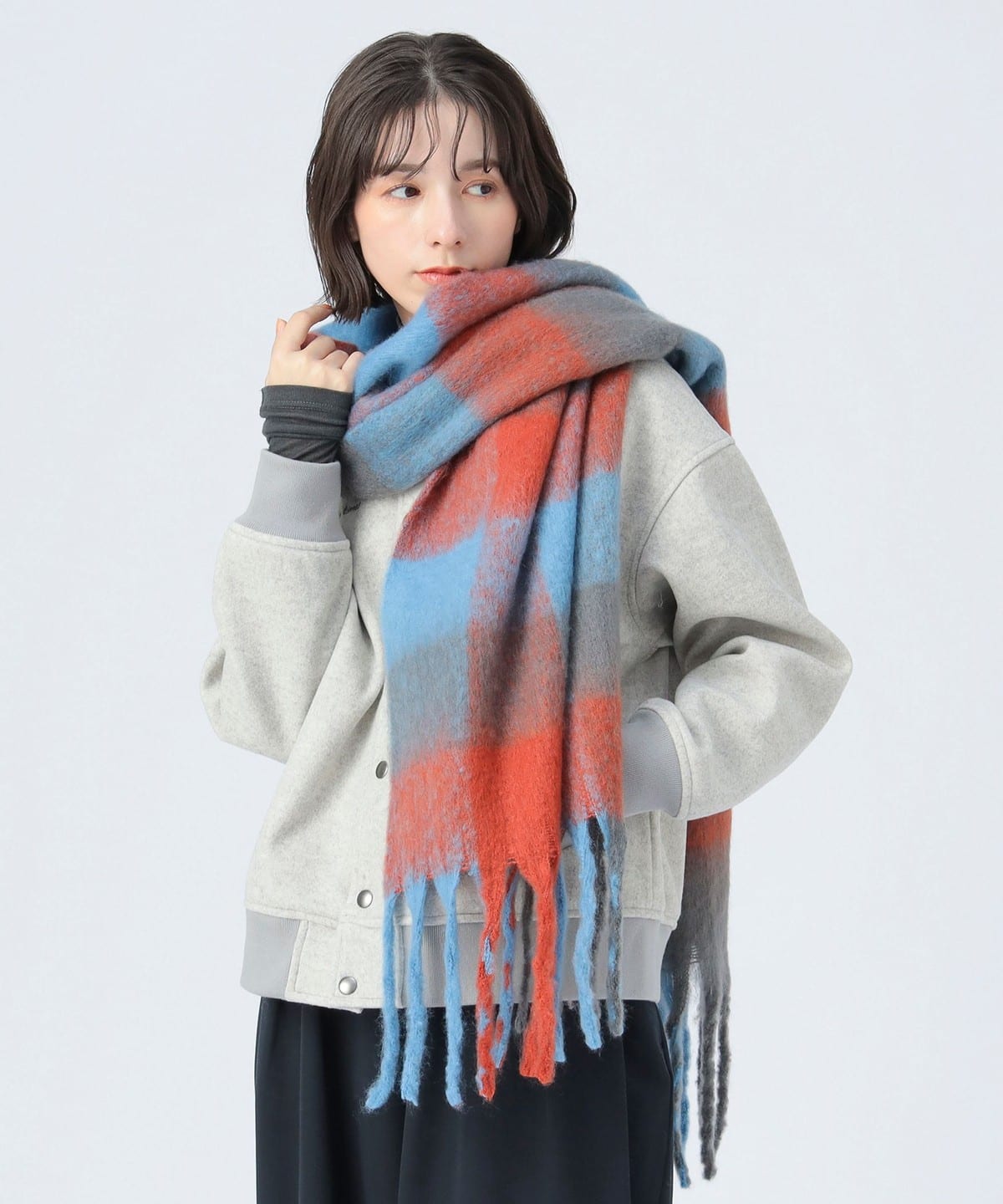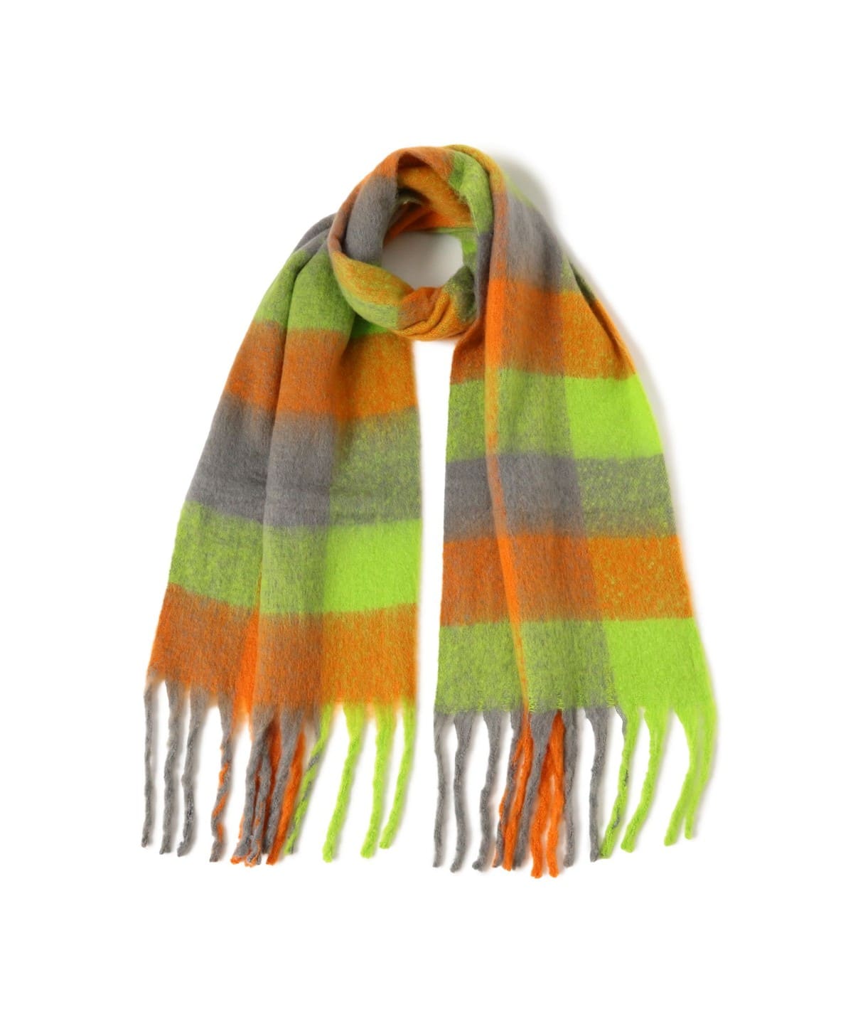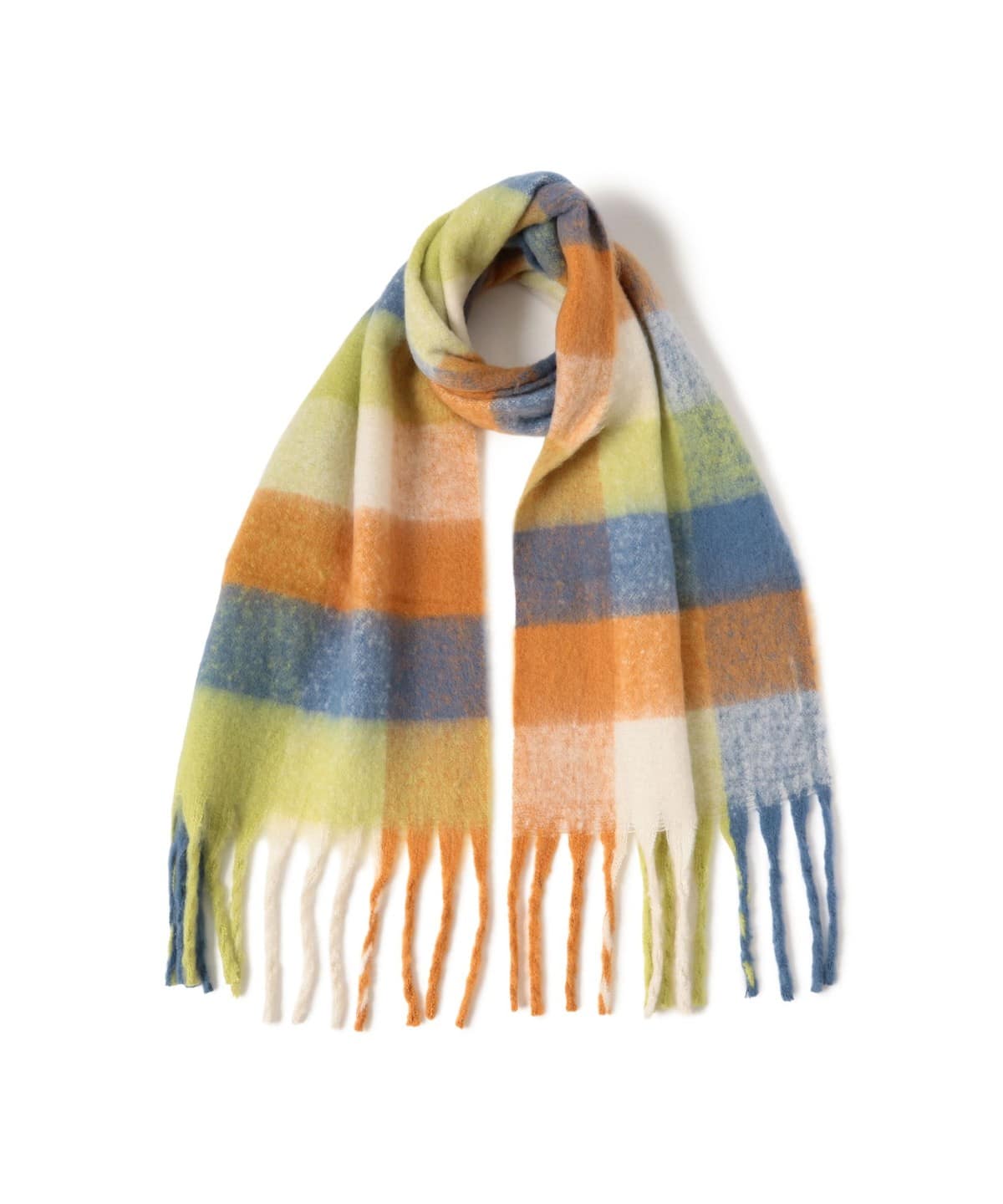 풍성한 볼륨감의 멀티 체크 머플러로, 포근한 소재감이 목元에 존재감과 따뜻함을 더해줍니다. 트렌디한 대형 체크 패턴과 기분을 밝게 만들어주는 컬러풀한 조합이 특징이며, 스타일의 메인 포인트가 되는 아이템입니다.