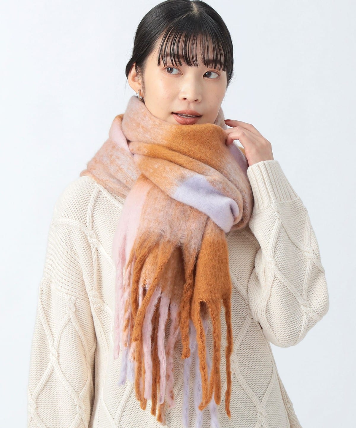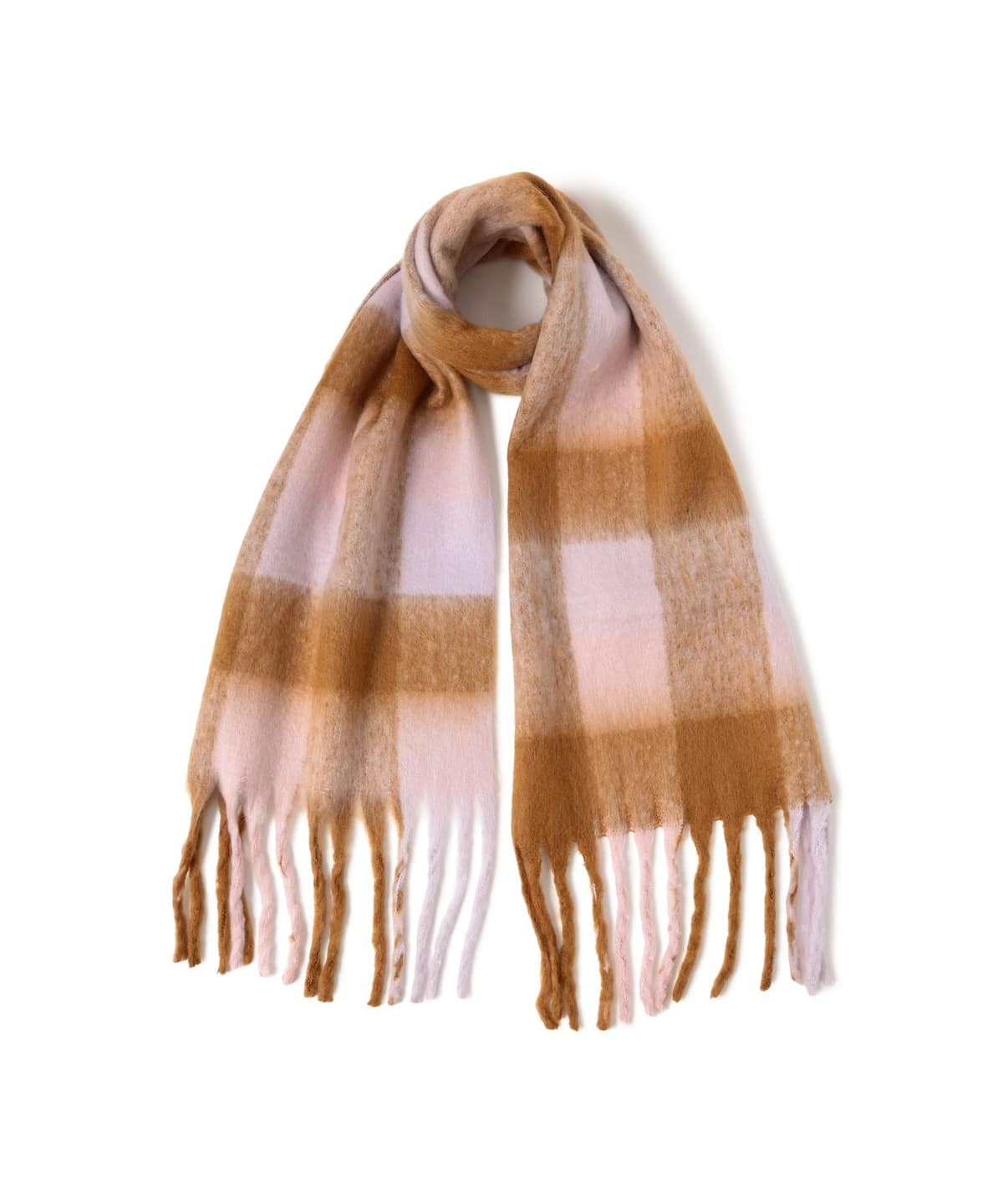 빔즈 하트 부클 멀티 체크 머플러